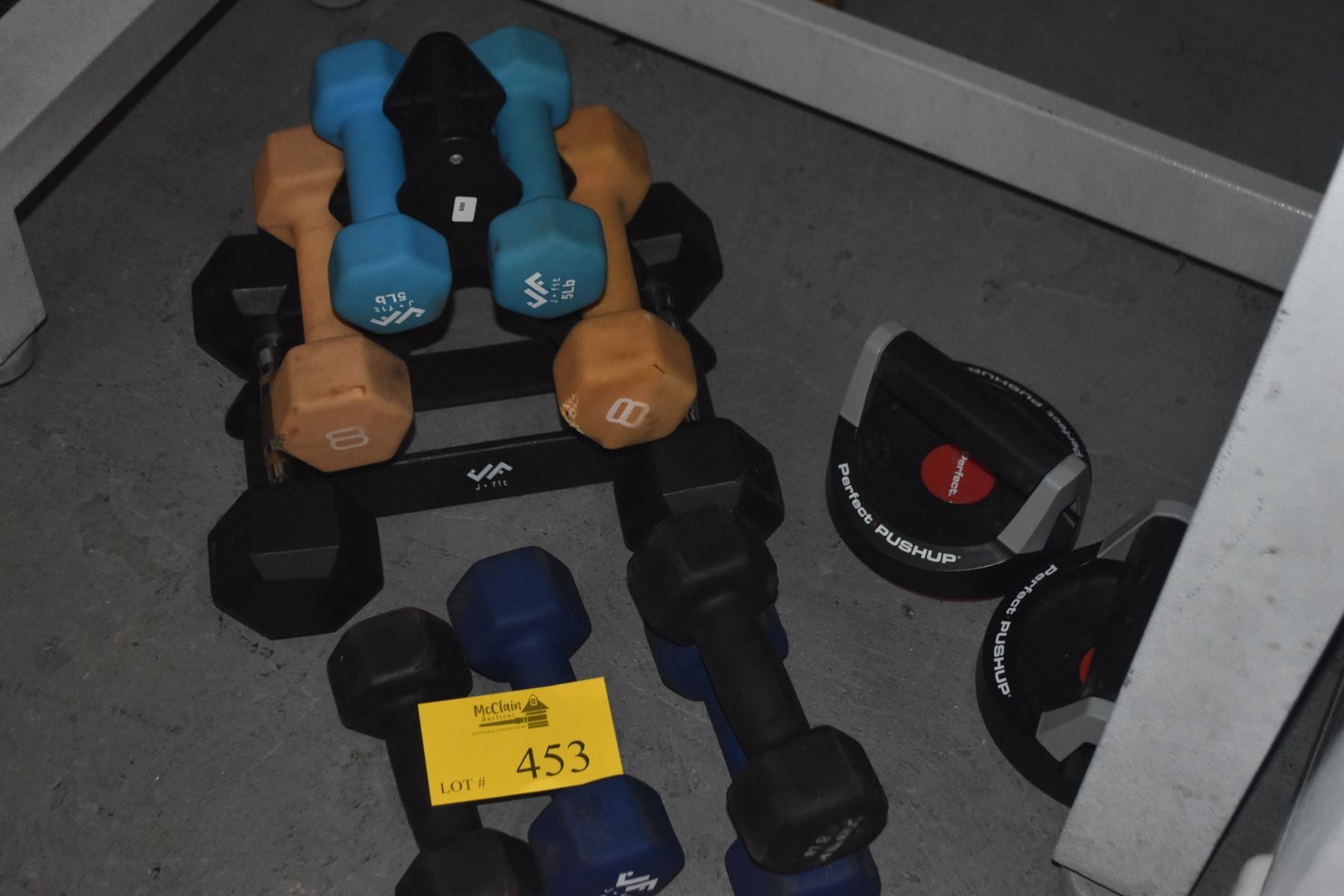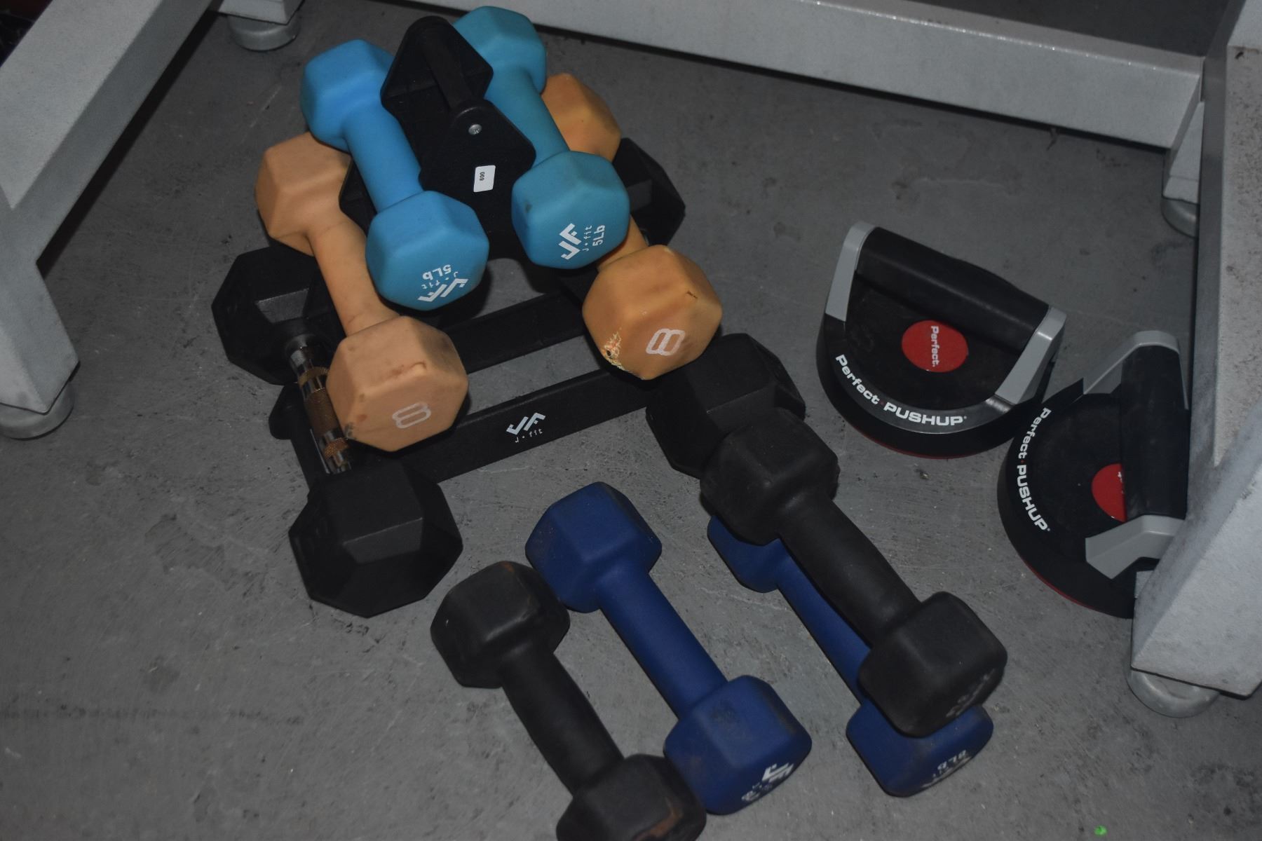 COLLECTION OF FREE WEIGHTS & PERFECT PUSHUP ROTATING HANDLES