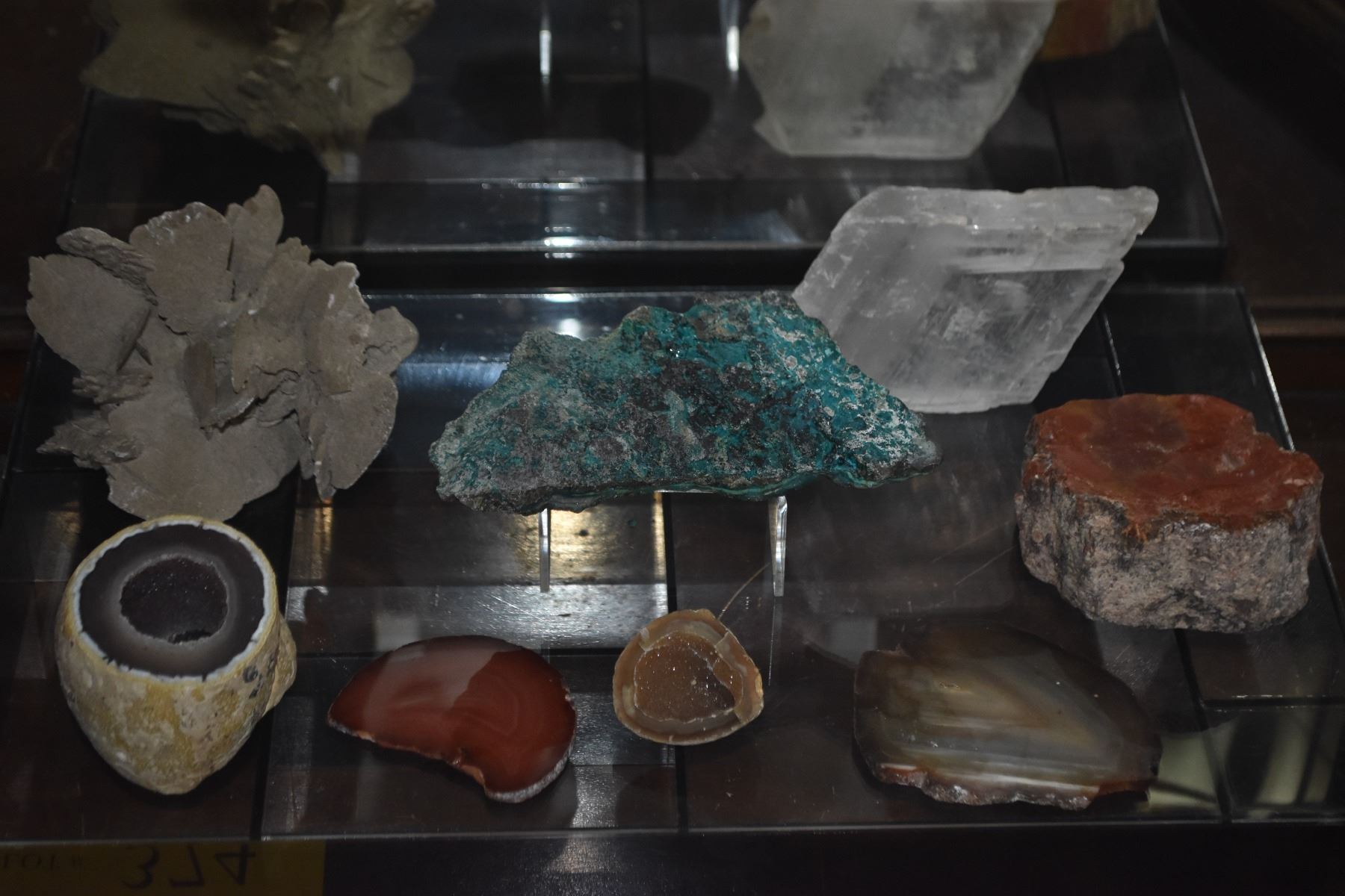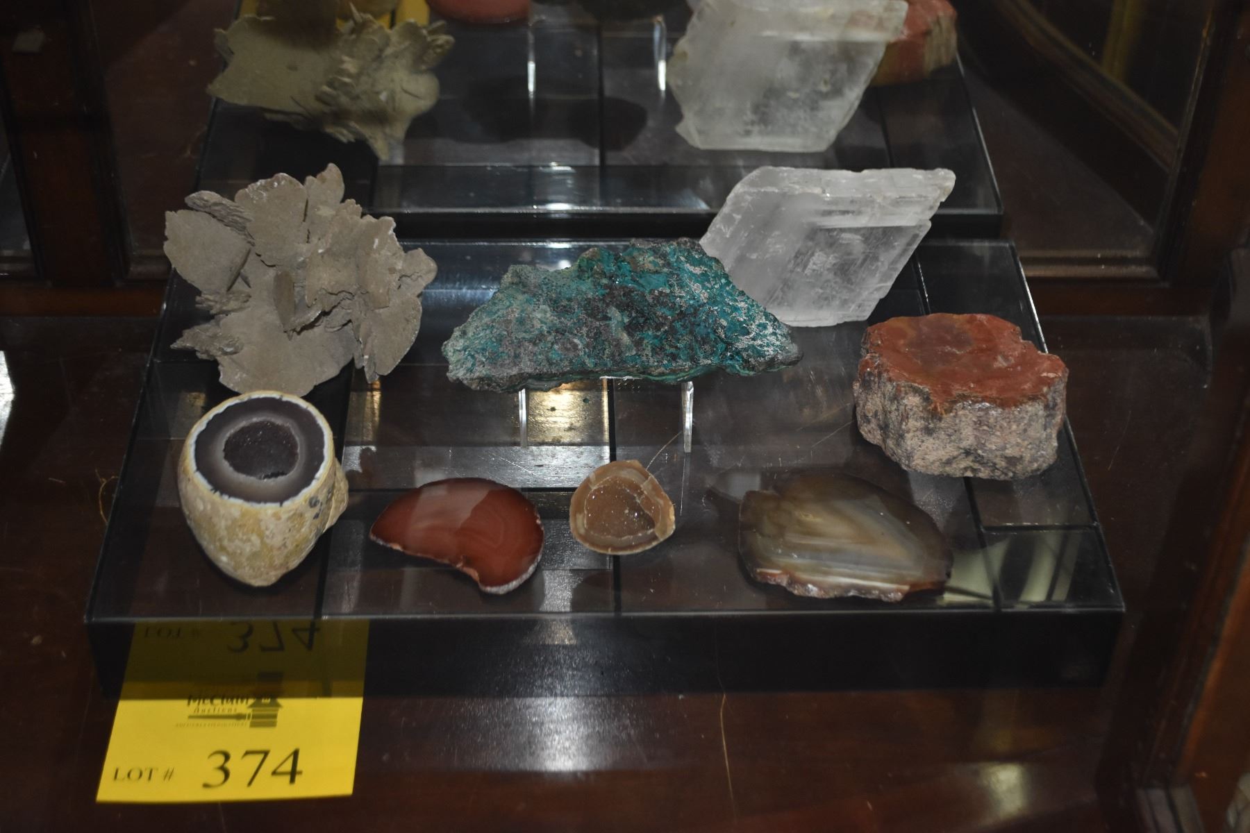 COLLECTION OF GEODE, SLABS & MINERAL SPECIMENS (9 PCS) (DOES NOT INCLUDE STAND)