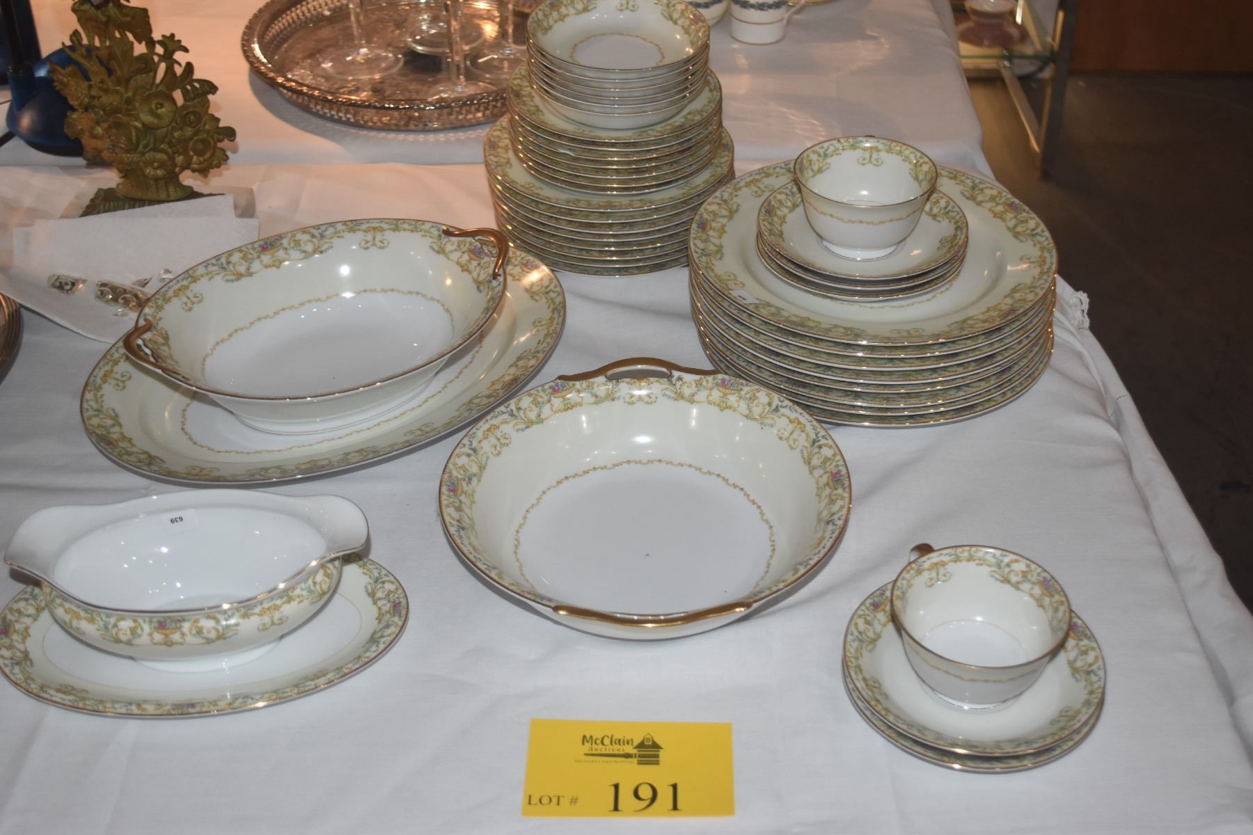 COLLECTION OF NORITAKE "ELVIRA" CHINA PLATES, BOWLS & SERVING PIECES (40 PCS)