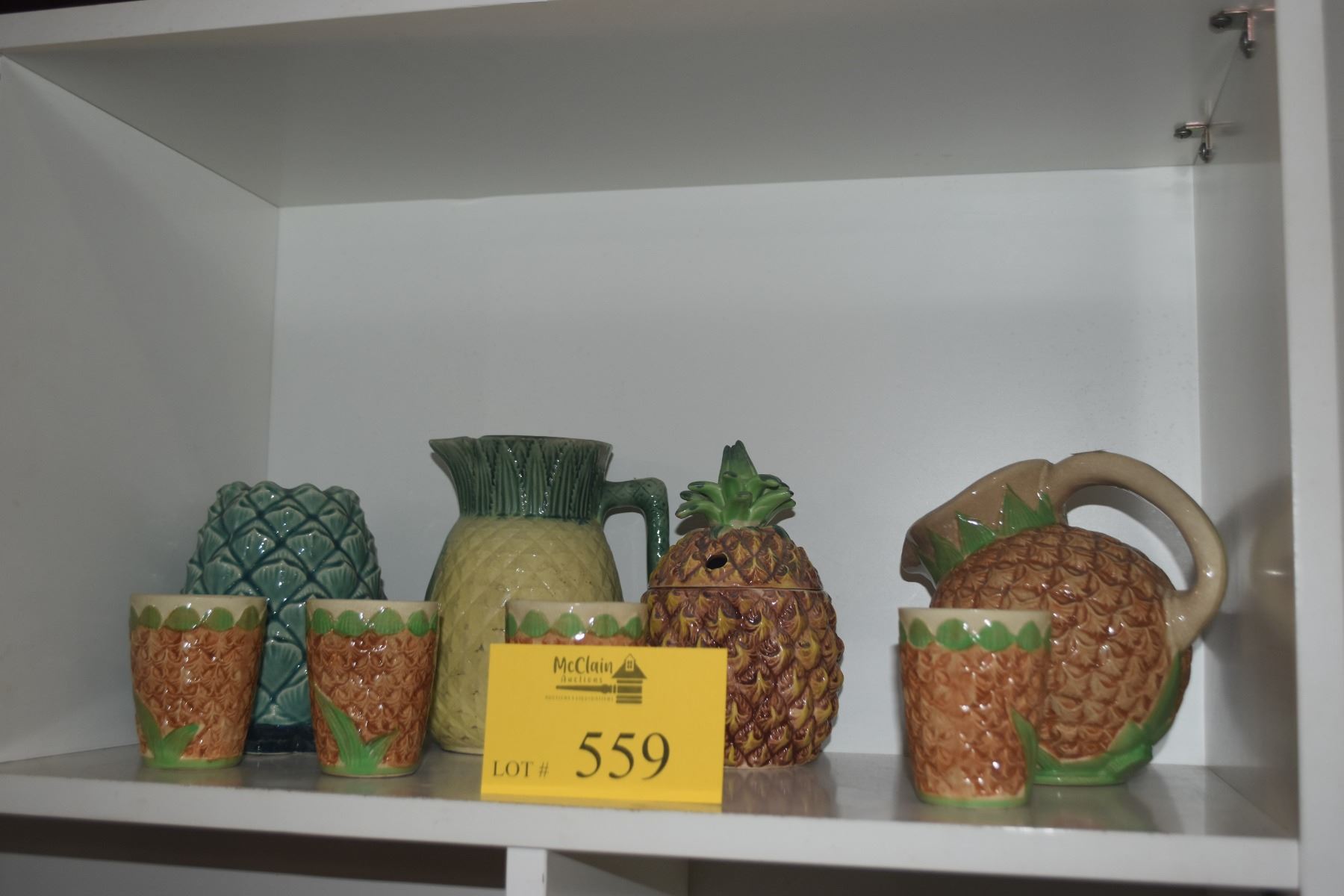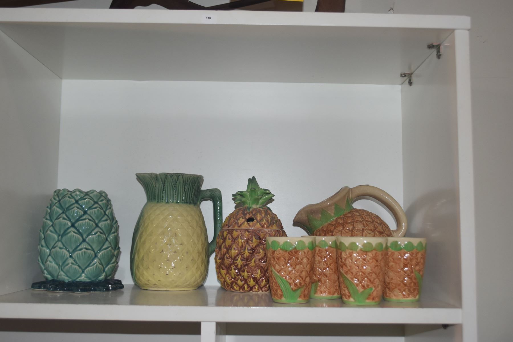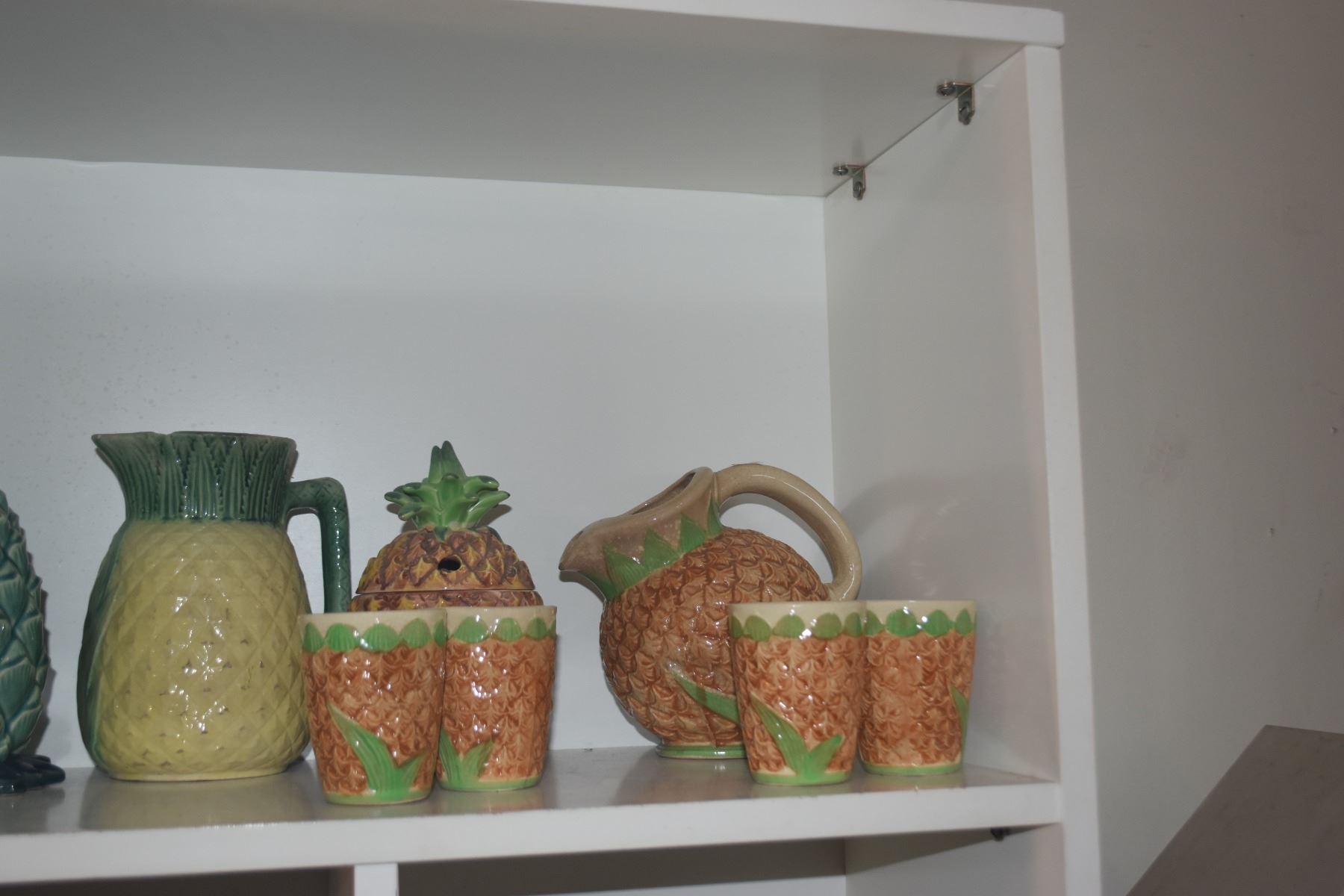 COLLECTION OF PINEAPPLE THEMED PITCHERS, CUPS & VASE (8 PCS)