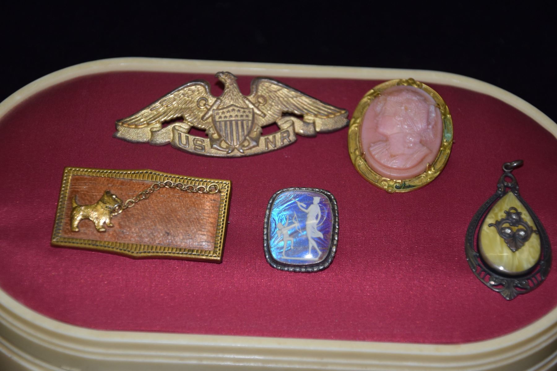 COLLECTION OF PINS & STERLING SILVER PENDANT (5 PCS)