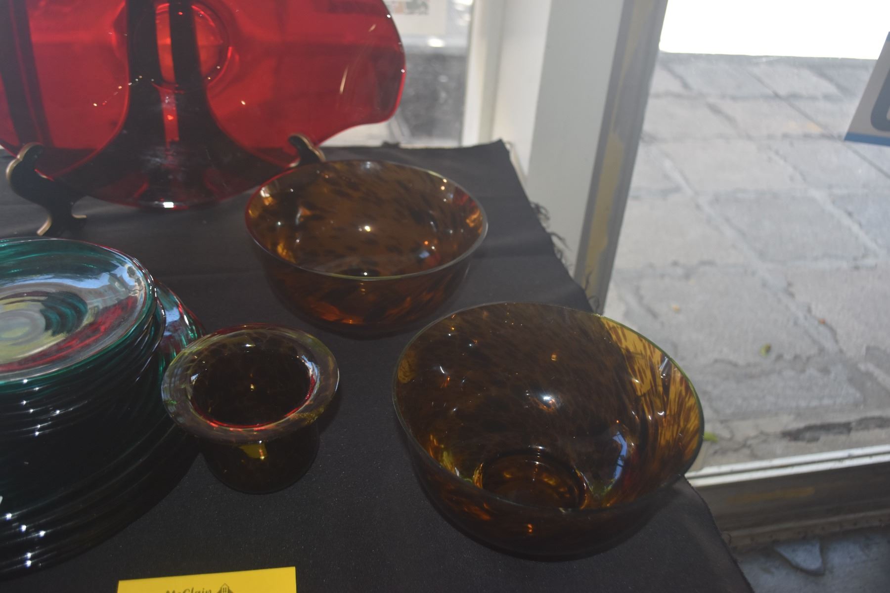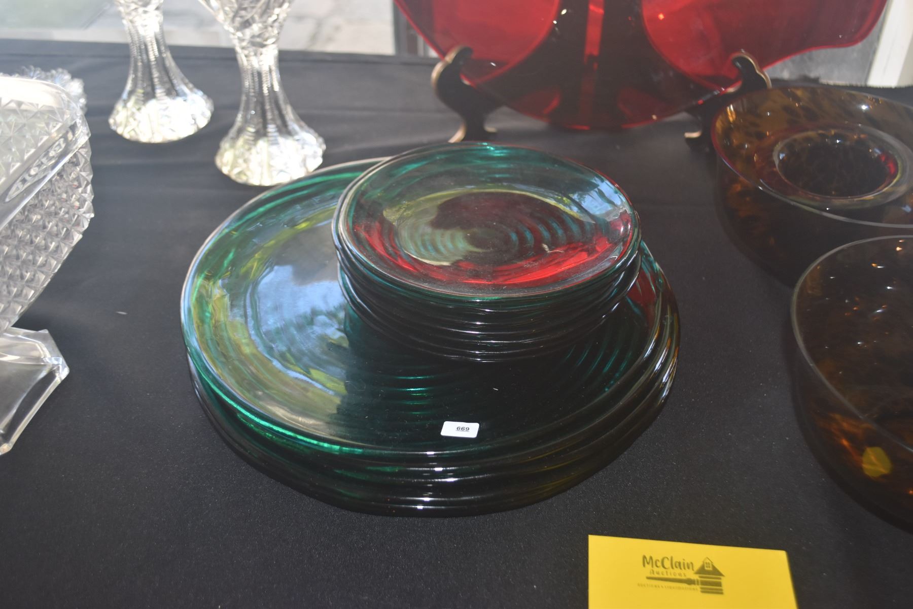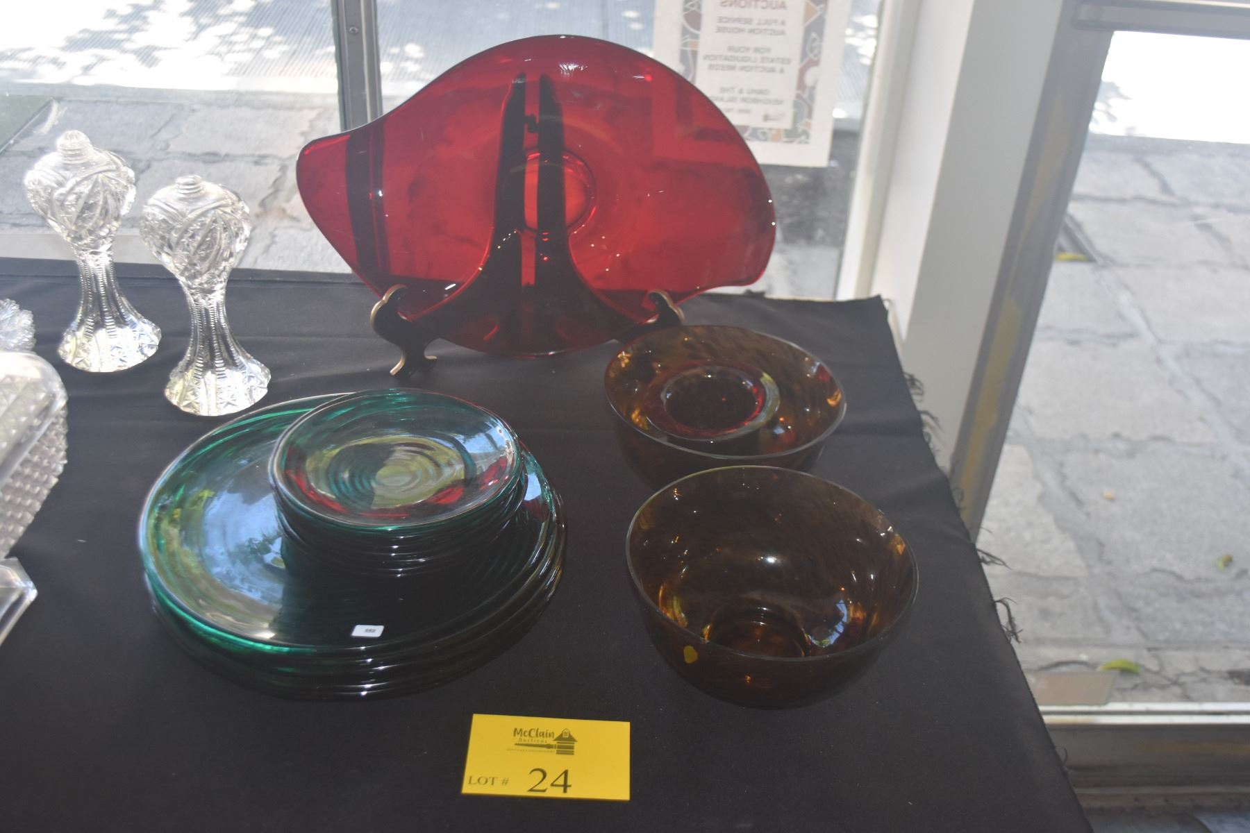 COLLECTION OF PLATES & BOWLS (RED, GREEN & BROWN (15 PCS)