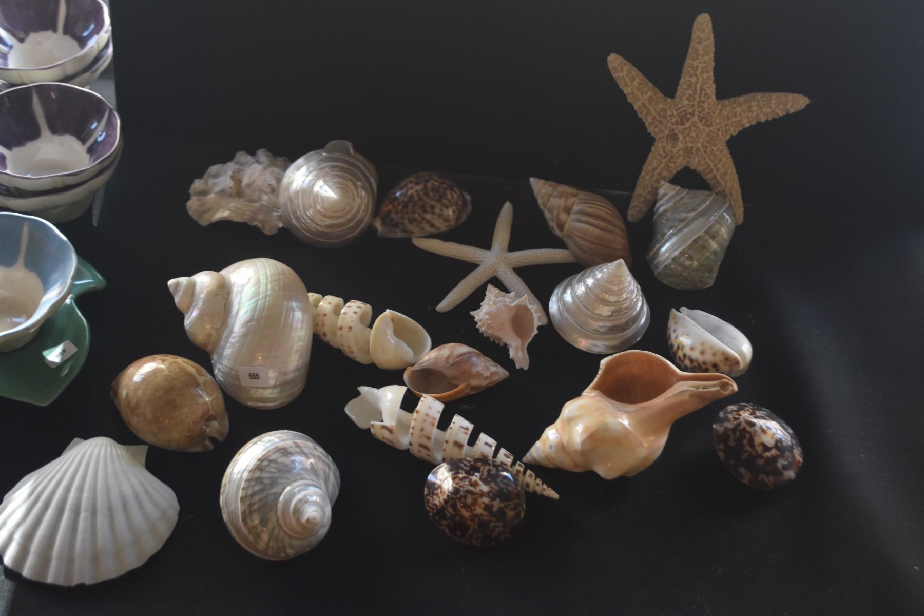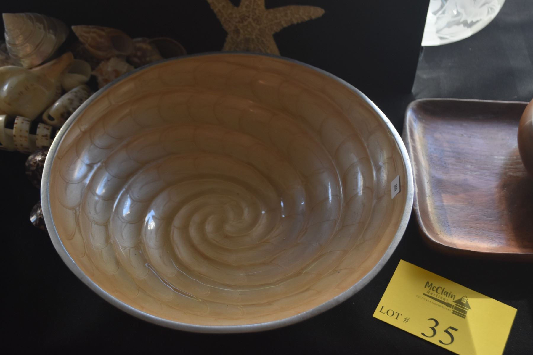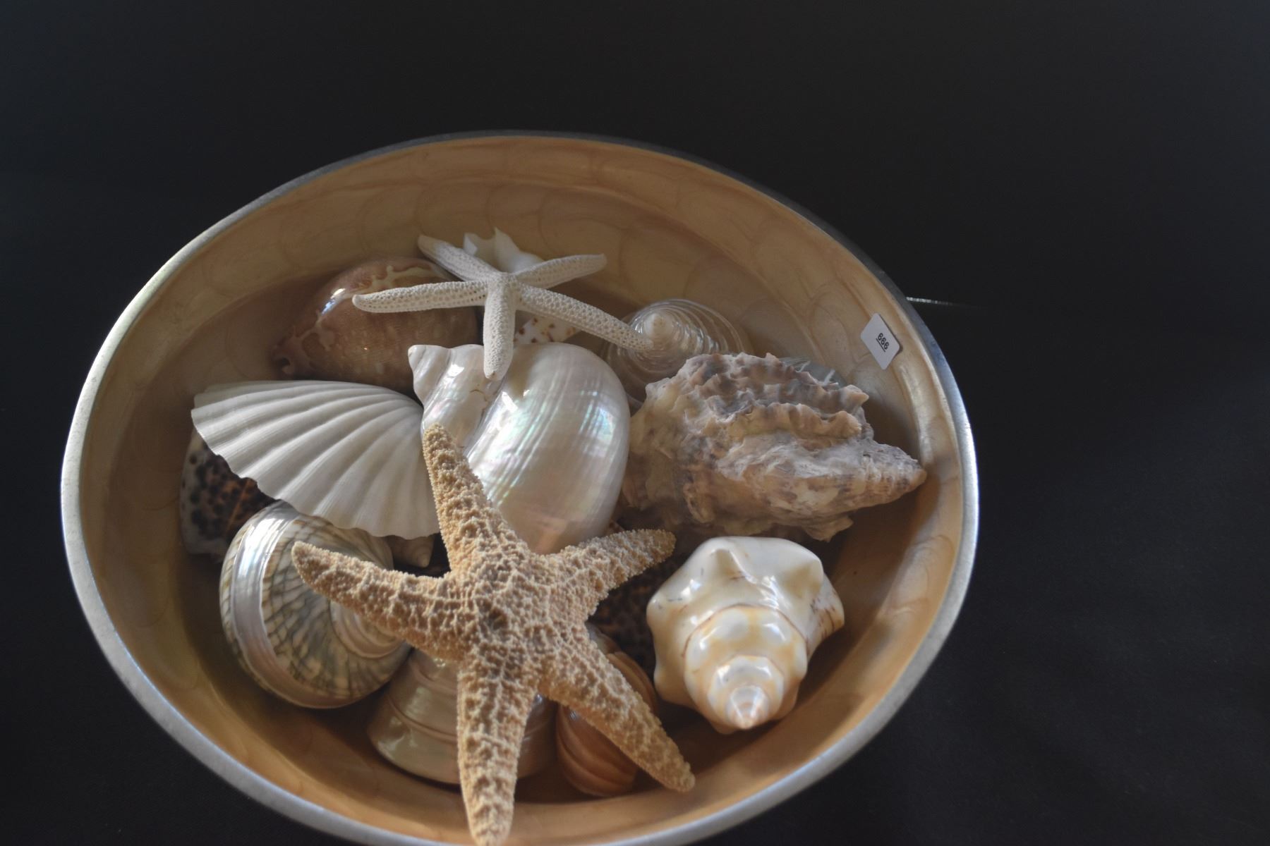 COLLECTION OF SEASHELLS IN NAUTILUS STYLE BOWL