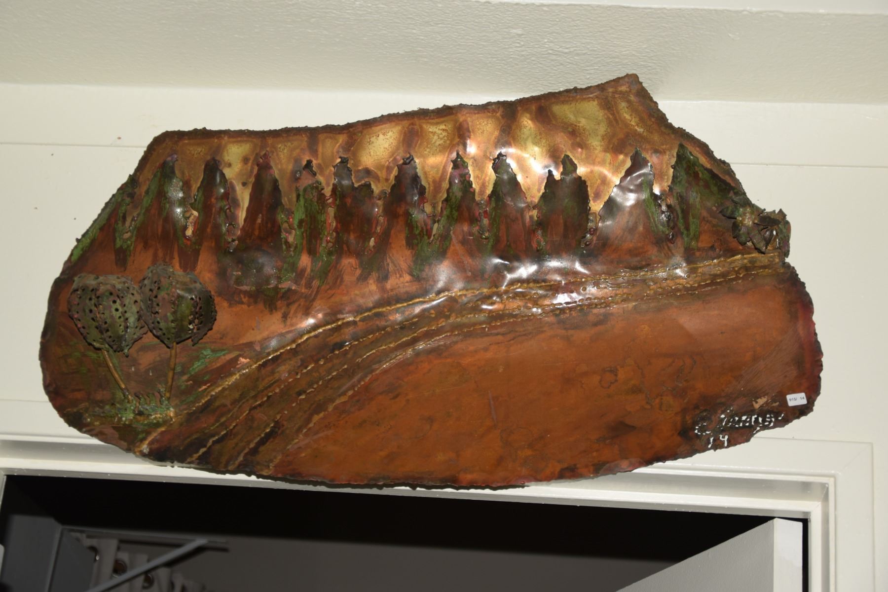 COPPER WALL ART SCULPTURE, "DIAMOND HEAD"; SIGNED (17" X 33")