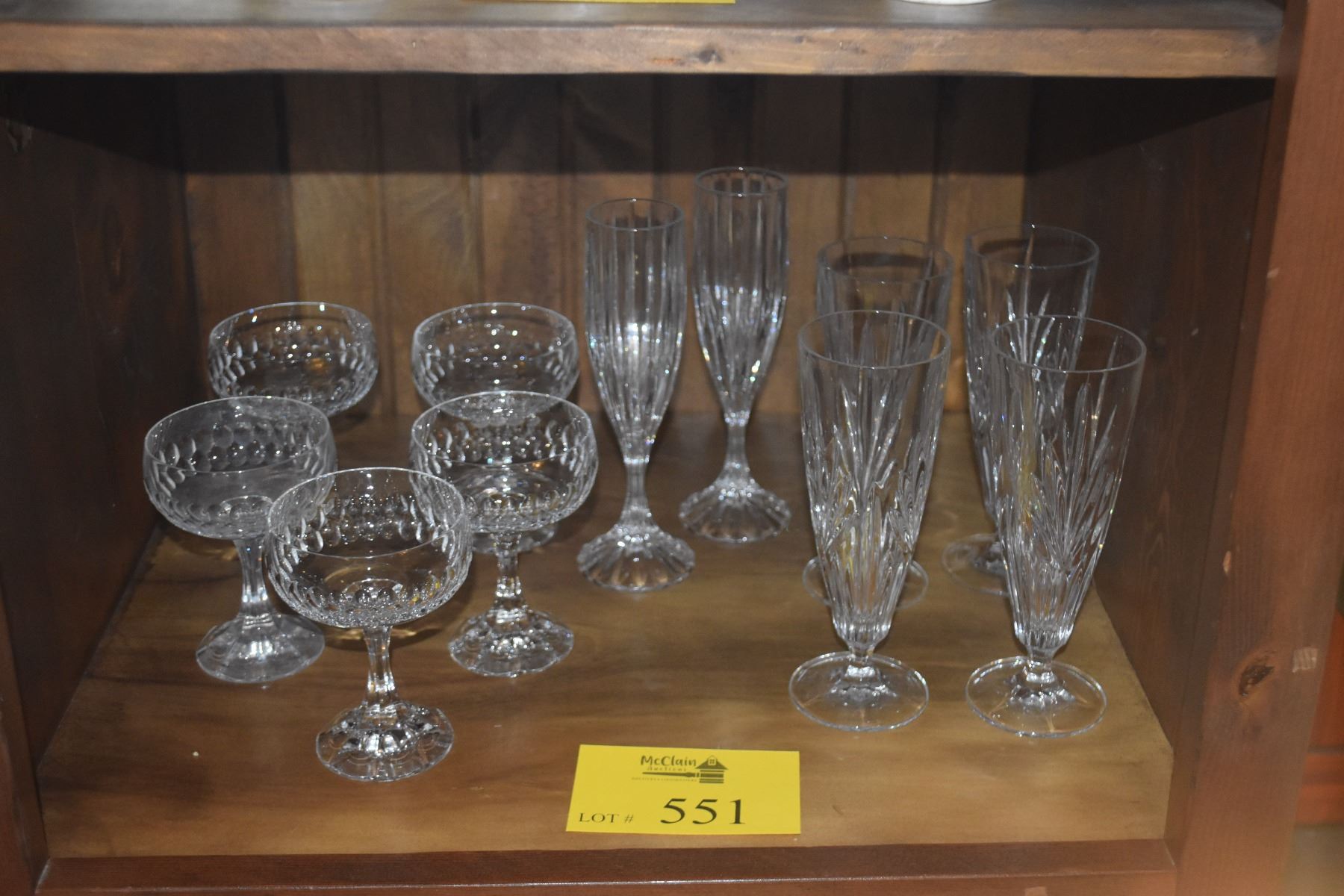 CRYSTAL CHAMPAGNE COUPES, LEAD CRYSTAL PILSNER GLASSES & MIKASA CHAMPAGNE FLUTES (11 PCS)