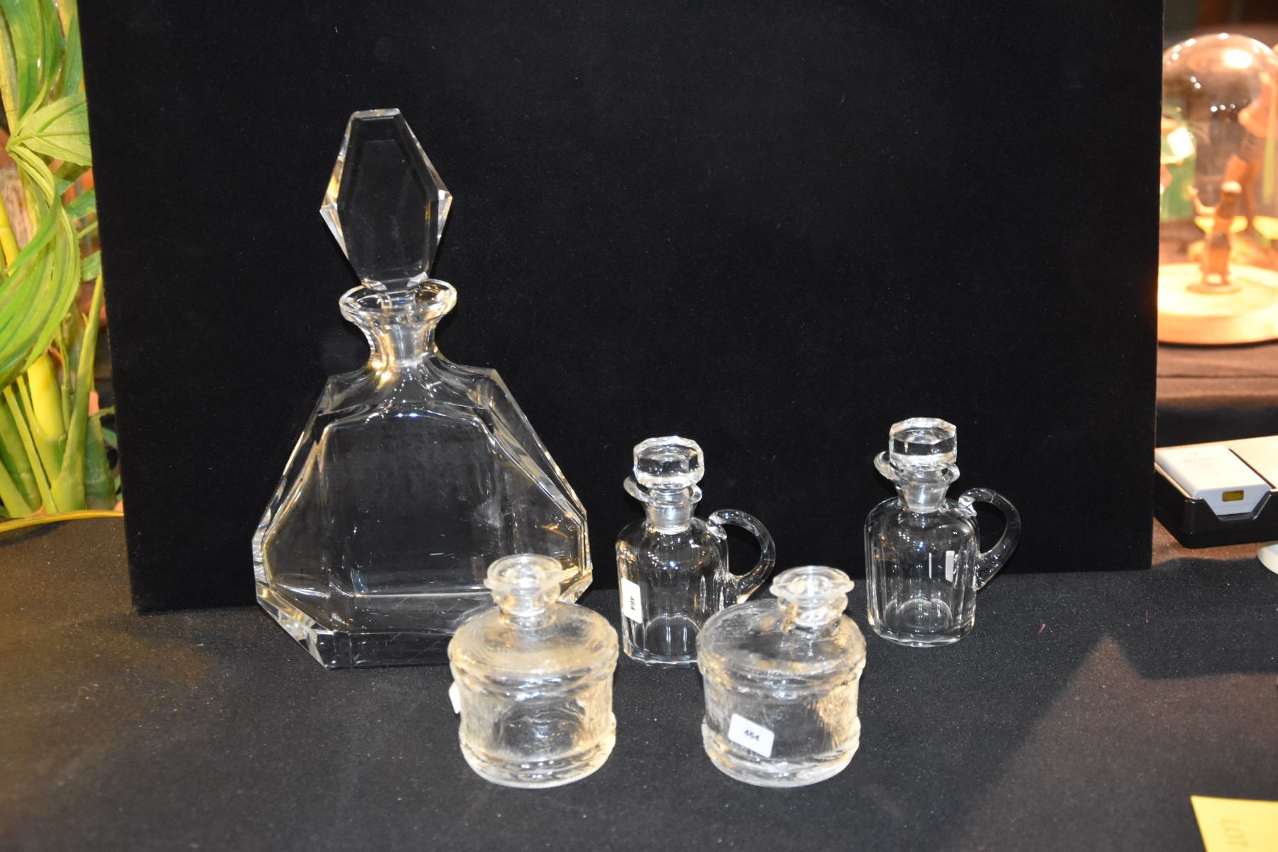 CRYSTAL DECANTER & CRUETS (5 PCS)