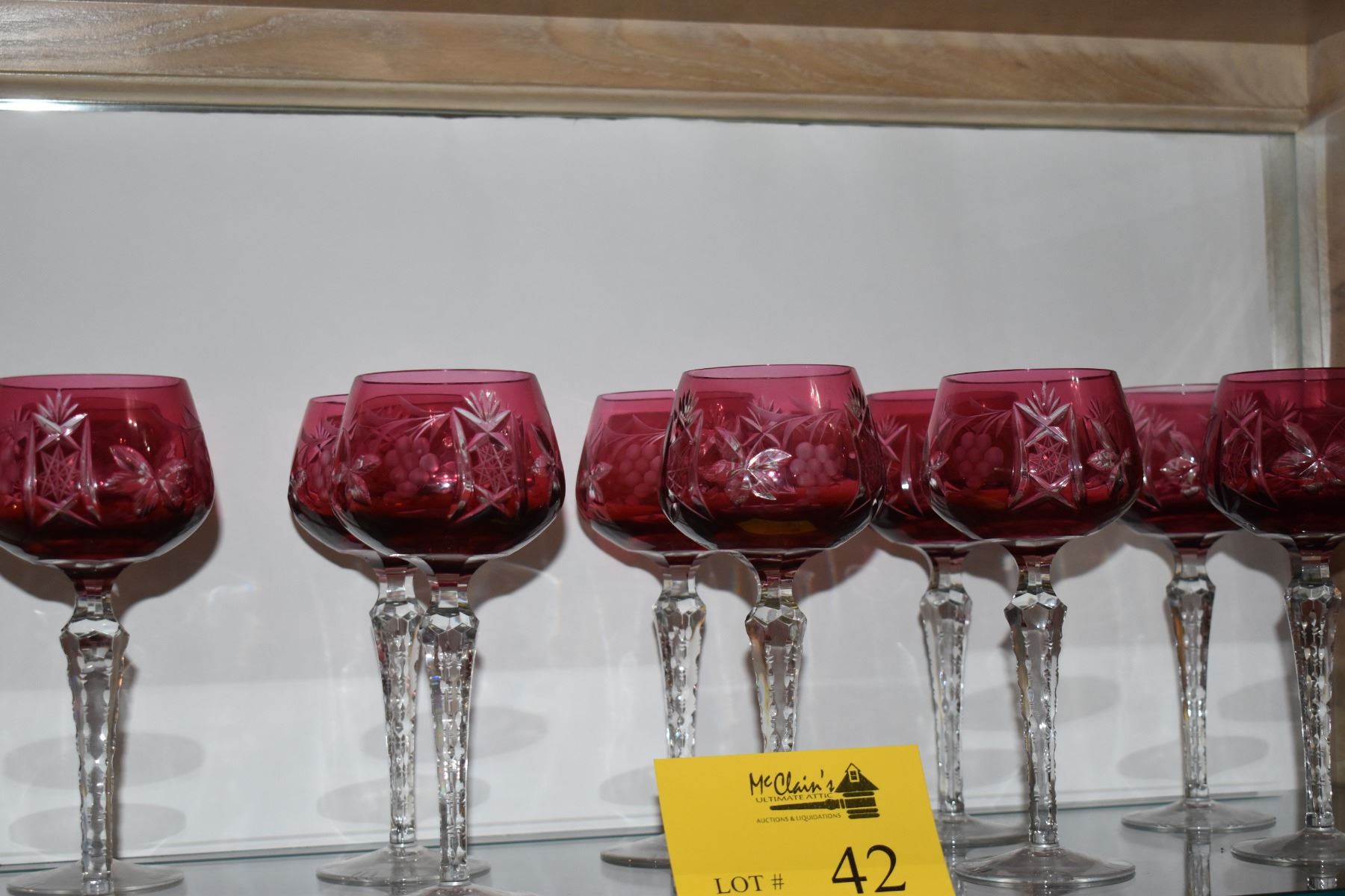 CRYSTAL STEMWARE, CRANBERRY CUT TO CLEAR (10 PCS)