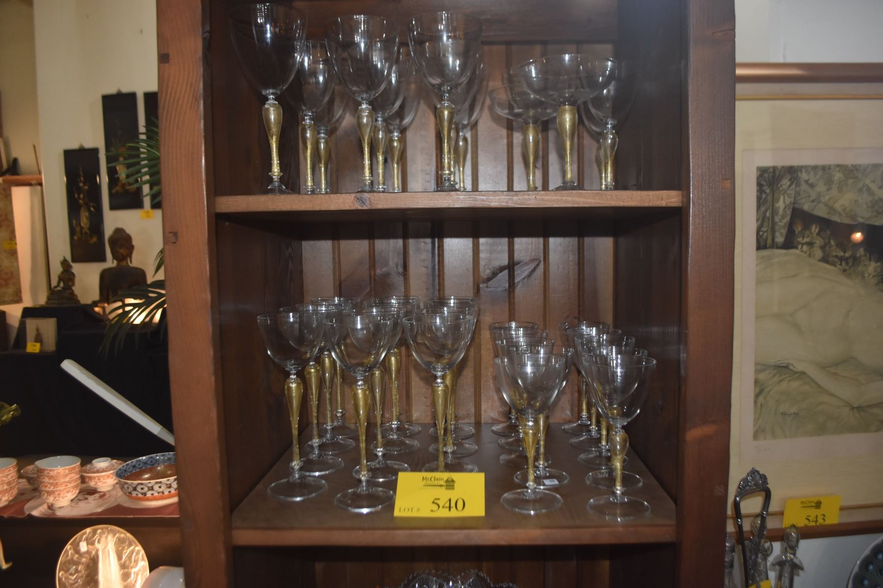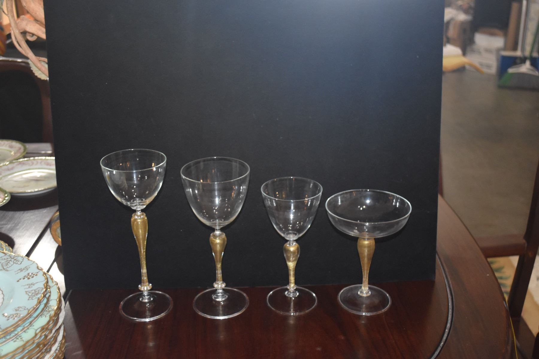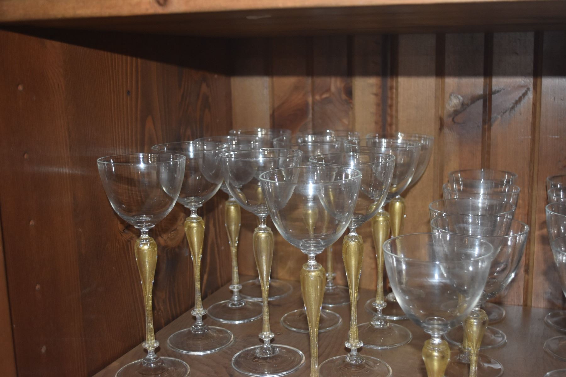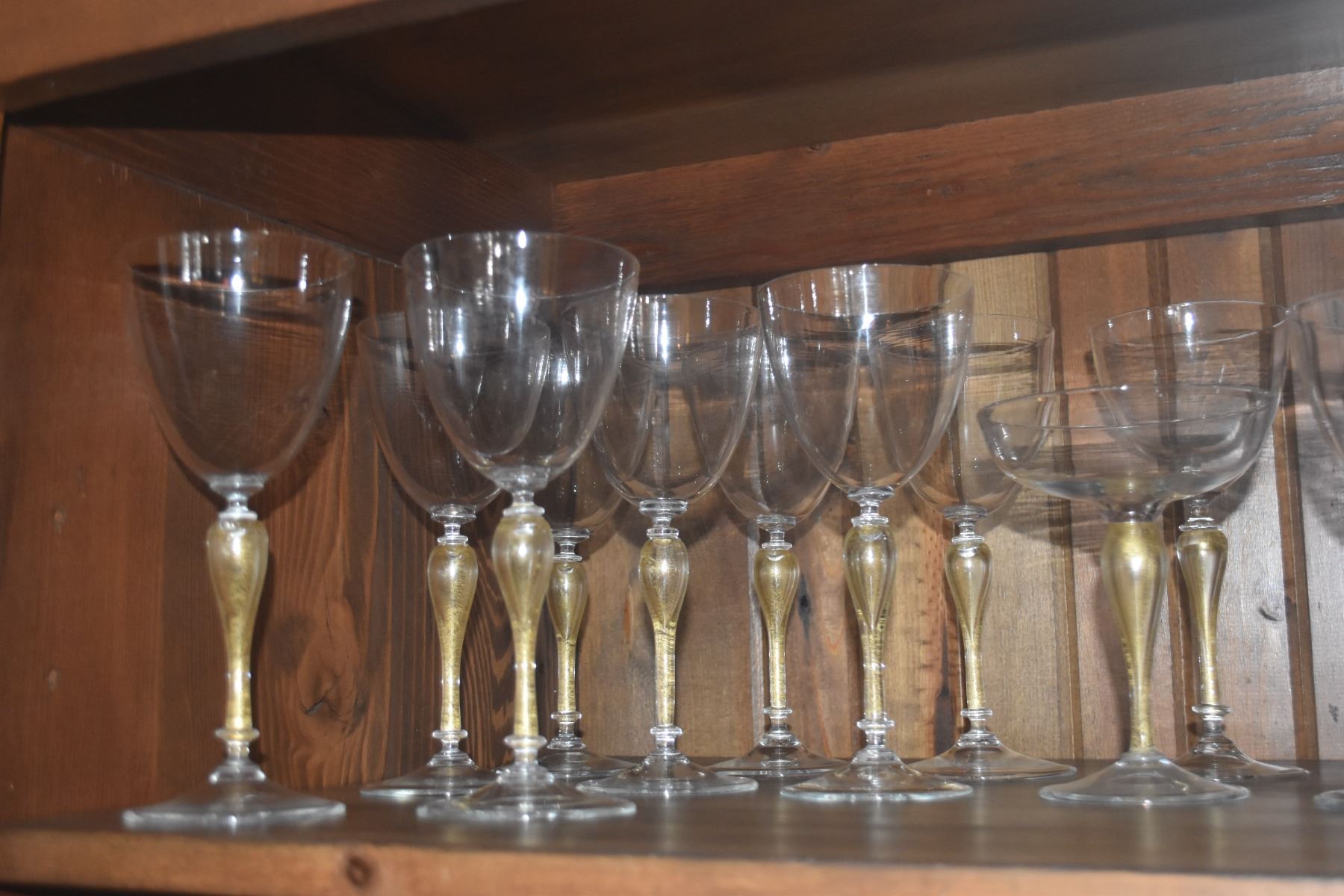 CRYSTAL STEMWARE W/GOLD STEMS (36 PCS)