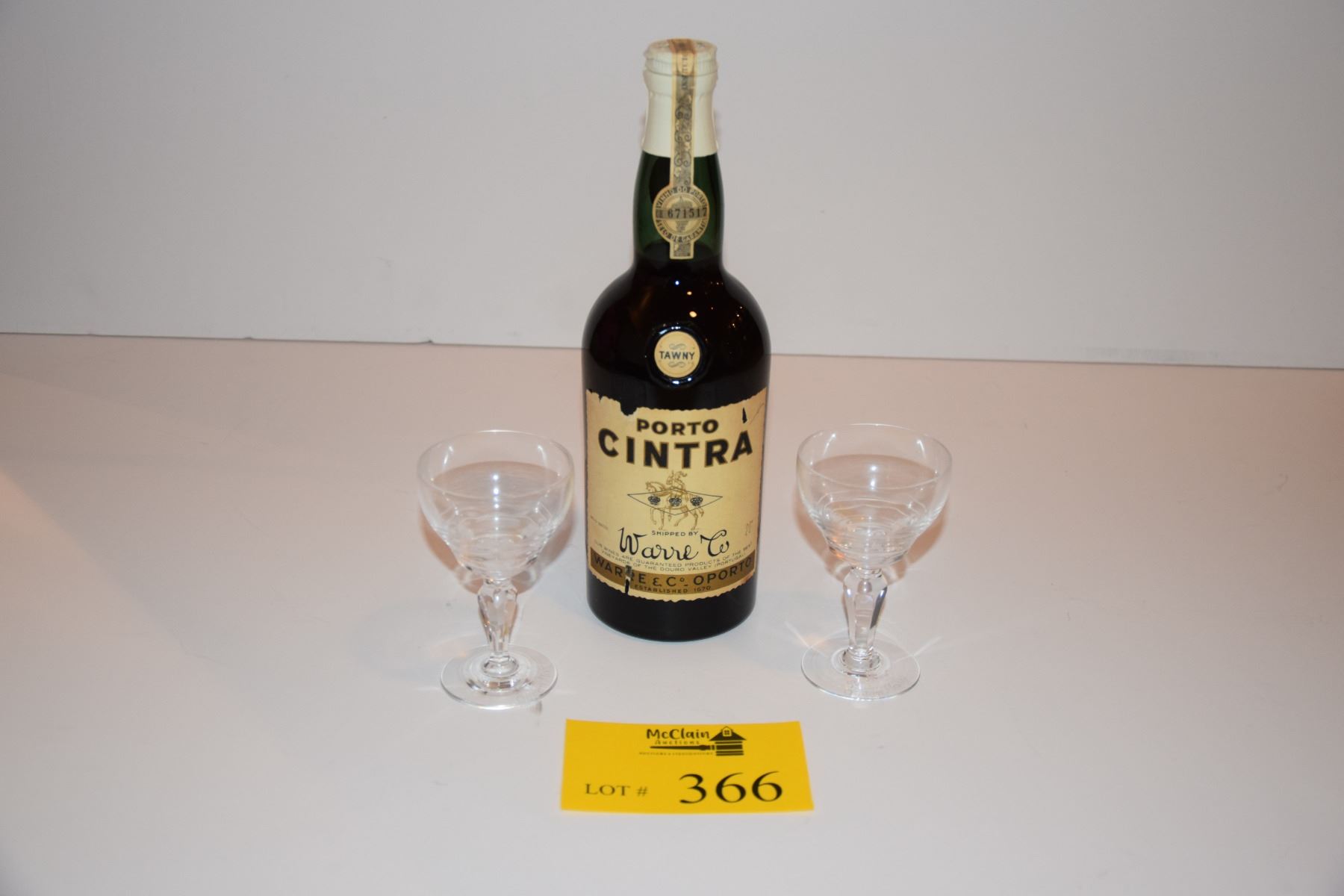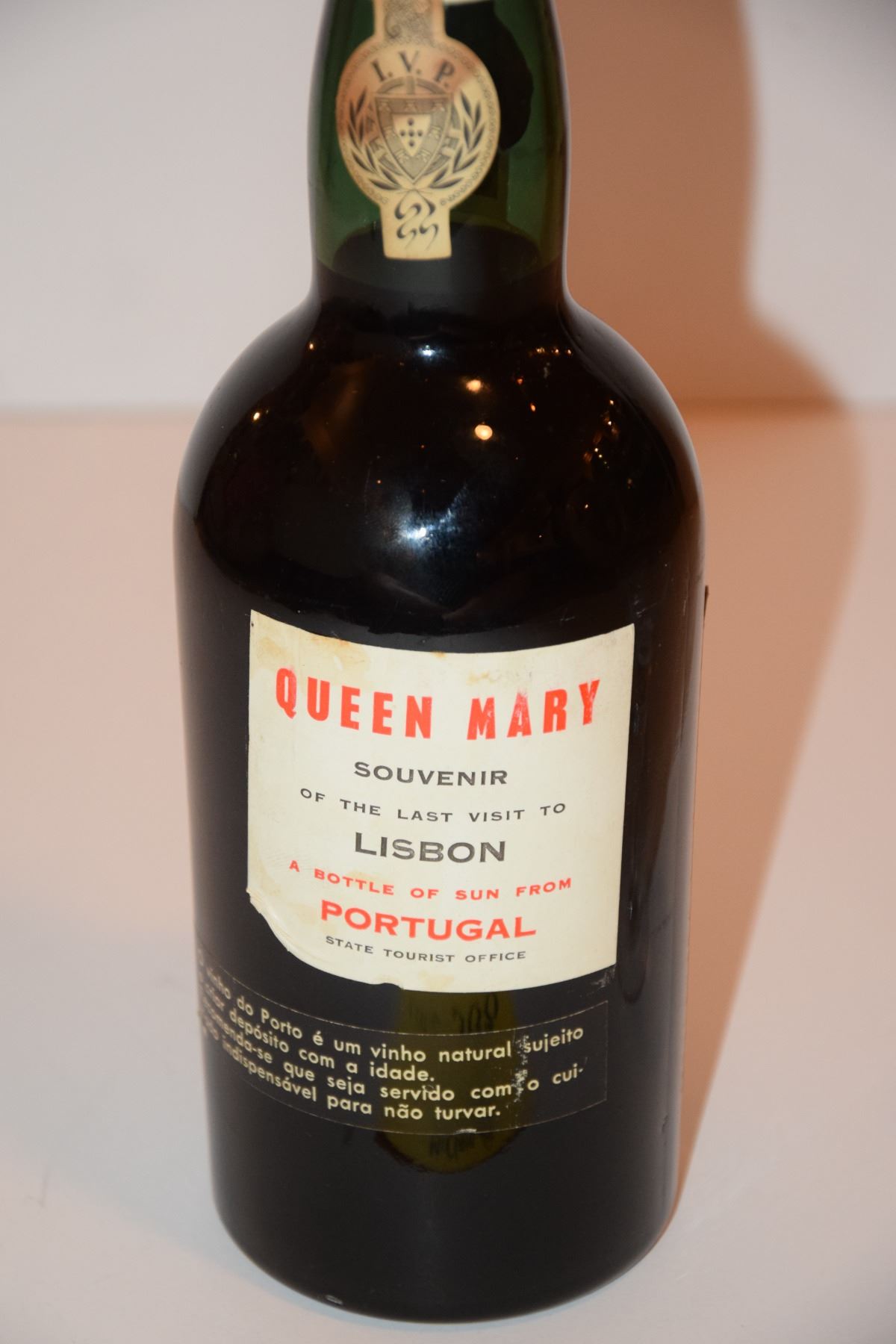CUNARD LINE: STUART CRYSTAL STEMWARE (2) & BOTTLE PORTO CINTRA FROM THE QUEEN MARY (3 PCS)