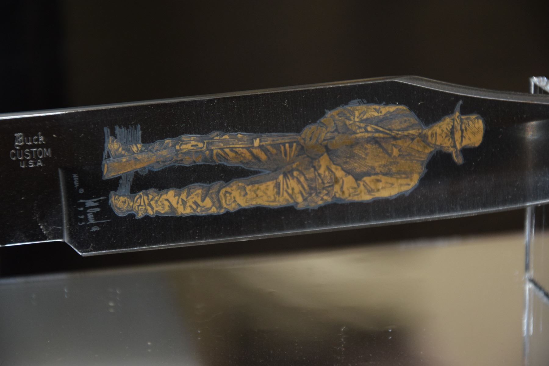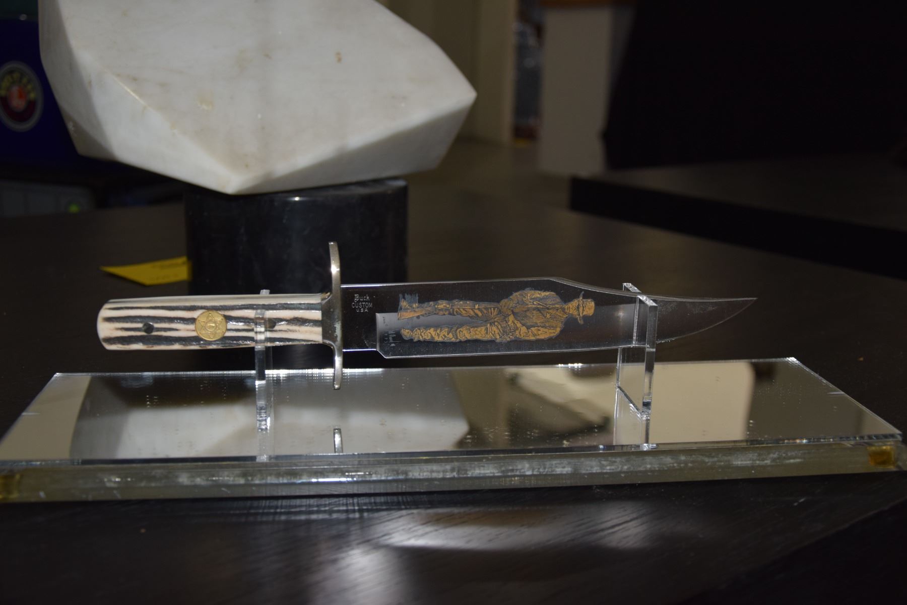 CUSTOM BUCK KNIFE IN PLEXIGLASS DISPLAY