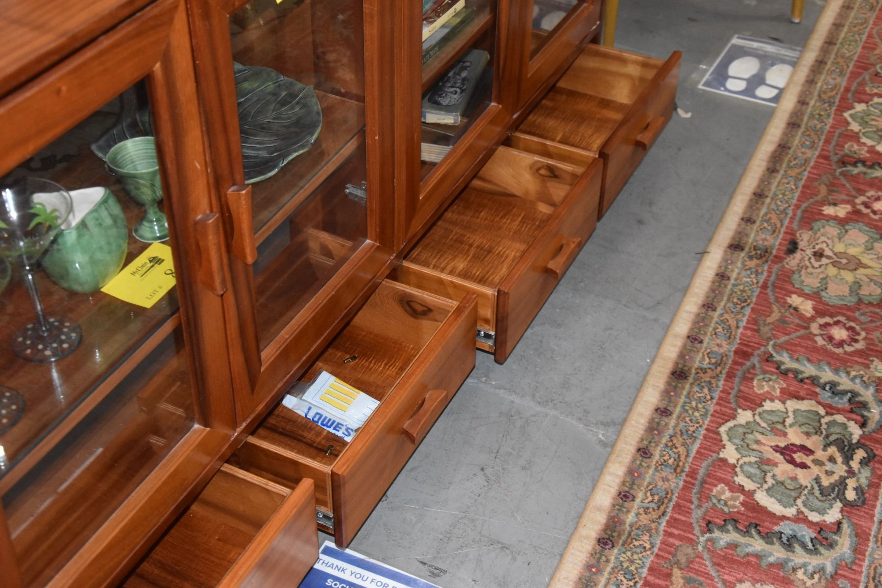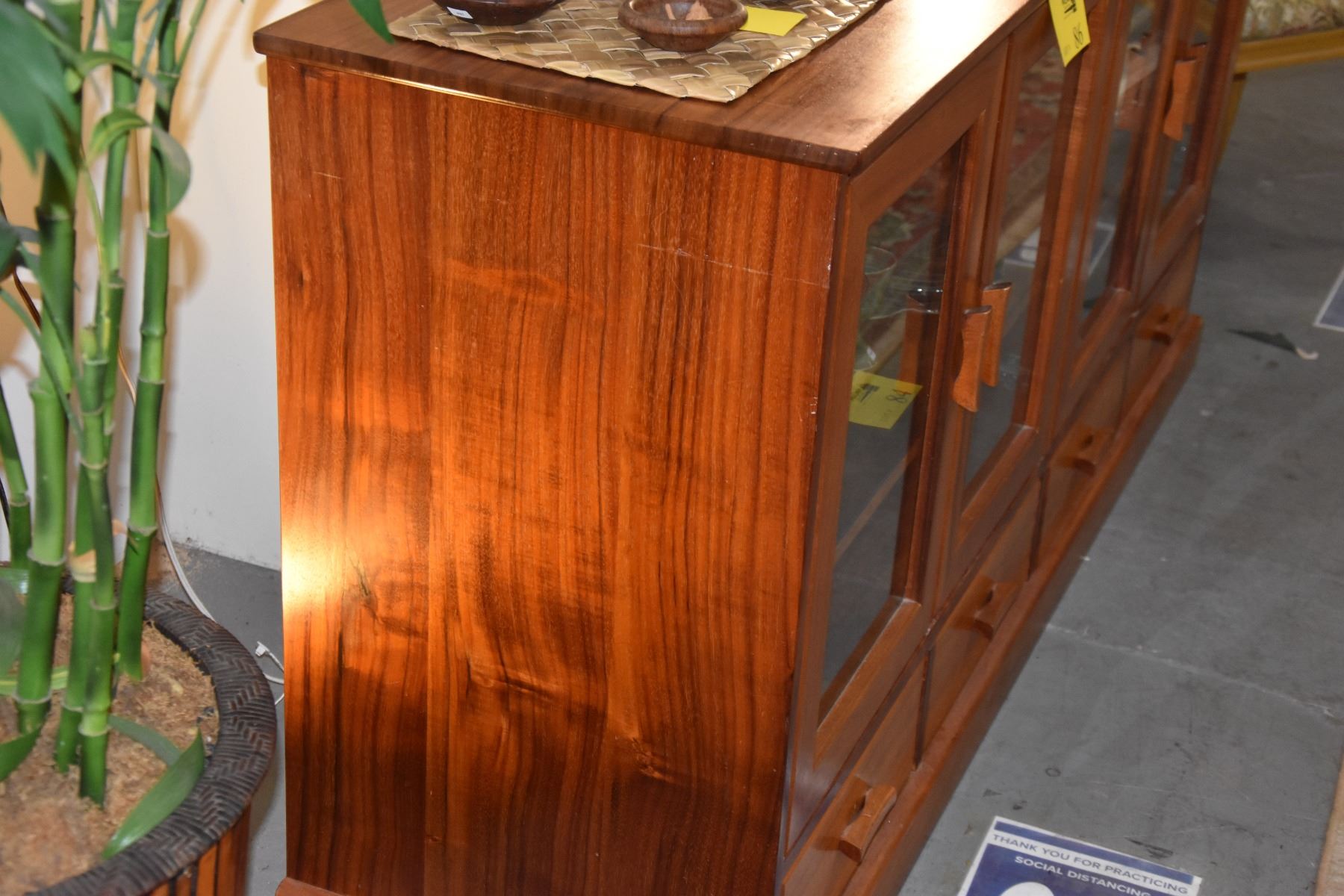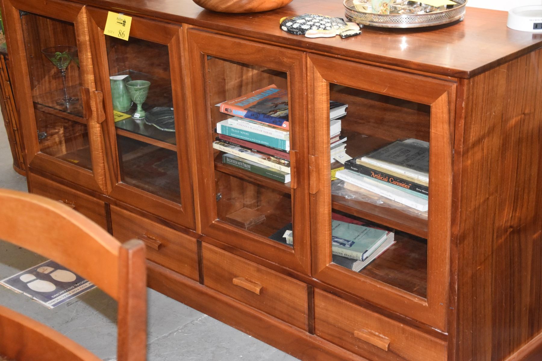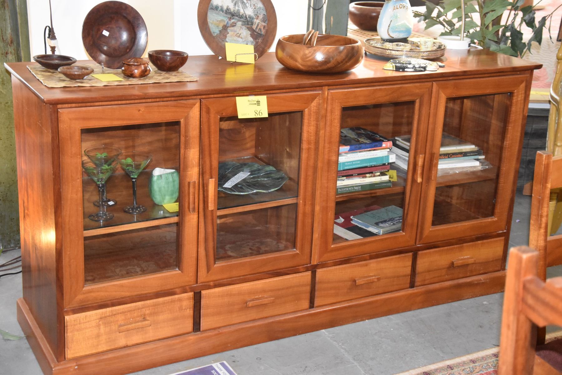 CUSTOM KOA CREDENZA W/4 GLASS DOORS & 4 DRAWERS BY TANG KOA FURNITURE (72" X 20" X 36")