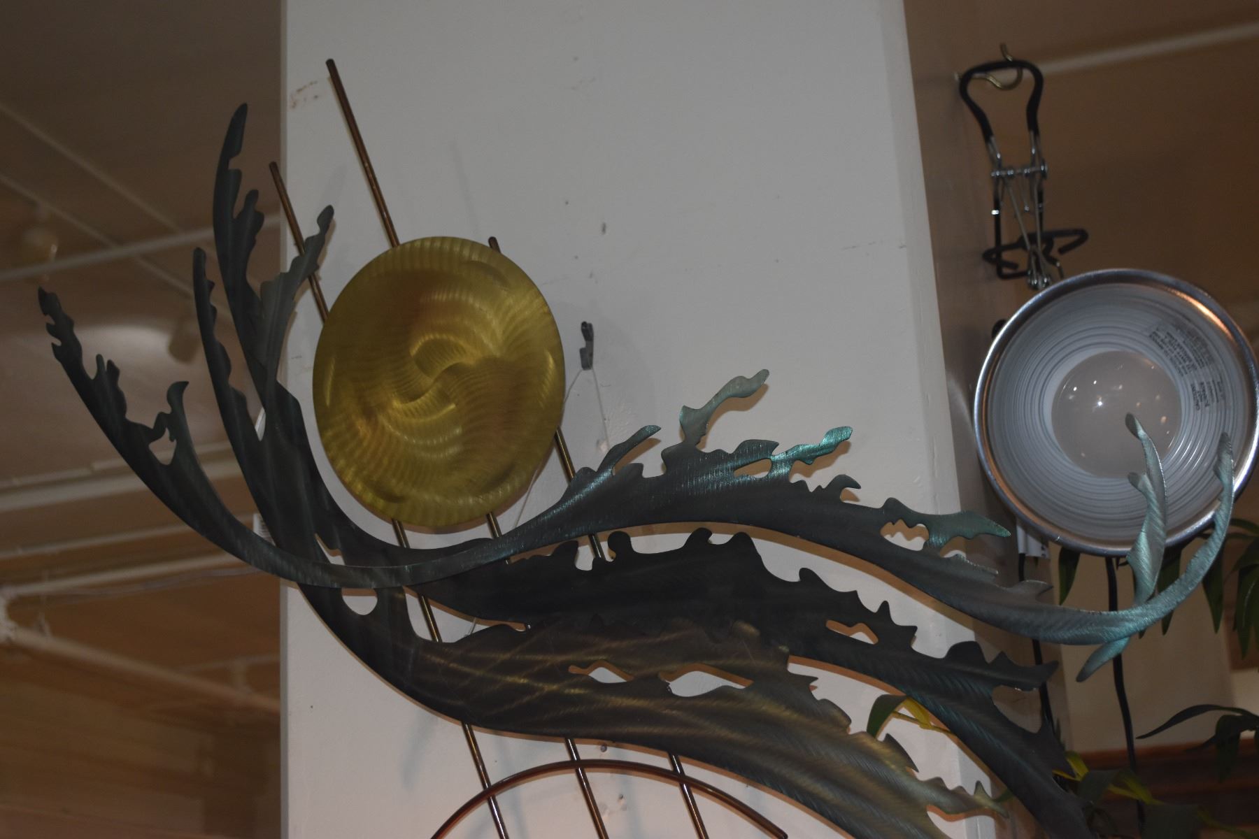 DECORATIVE COPPER WALL SCULPTURE, ABSTRACT WAVES & MOON