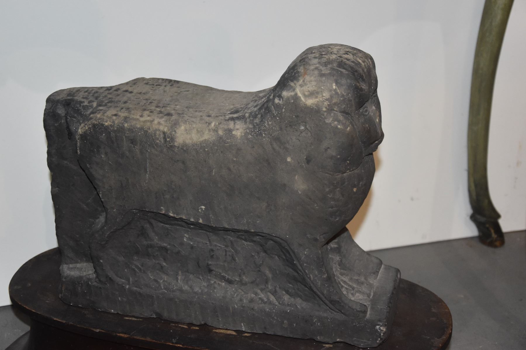 EGYPTIAN STONE CARVING ON WOODEN STAND