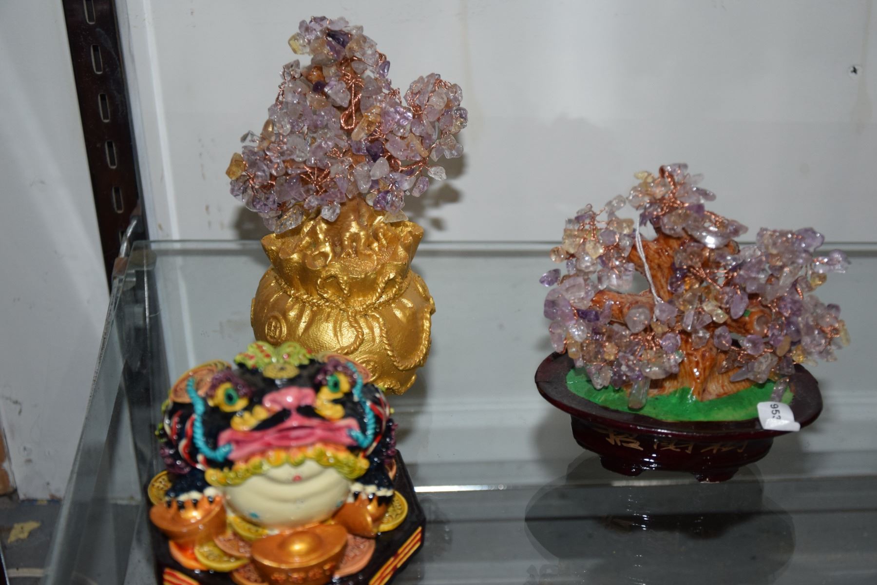 ELABORATE DECORATED FROG & 2 MONEY TREES W/SEMI-PRECIOUS STONE (3 PCS) (FROM REV. CLARENCE GUERREIRO/TERENCE KNAPP COLLECTION)