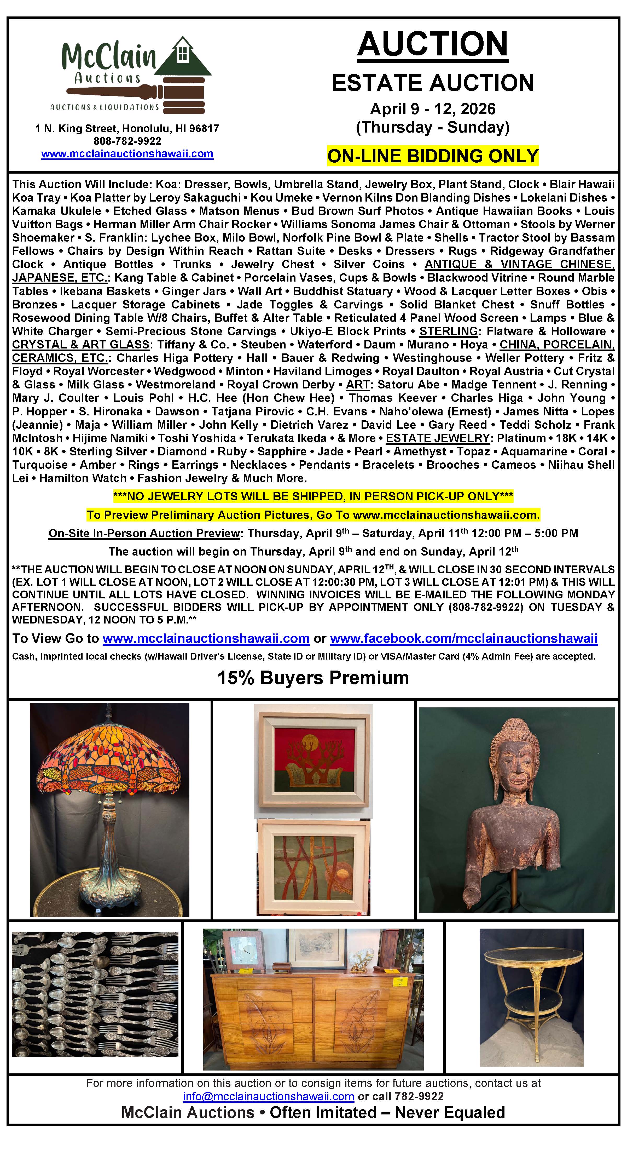 The online auction ends Sunday, June 1st at 12pm (HST)