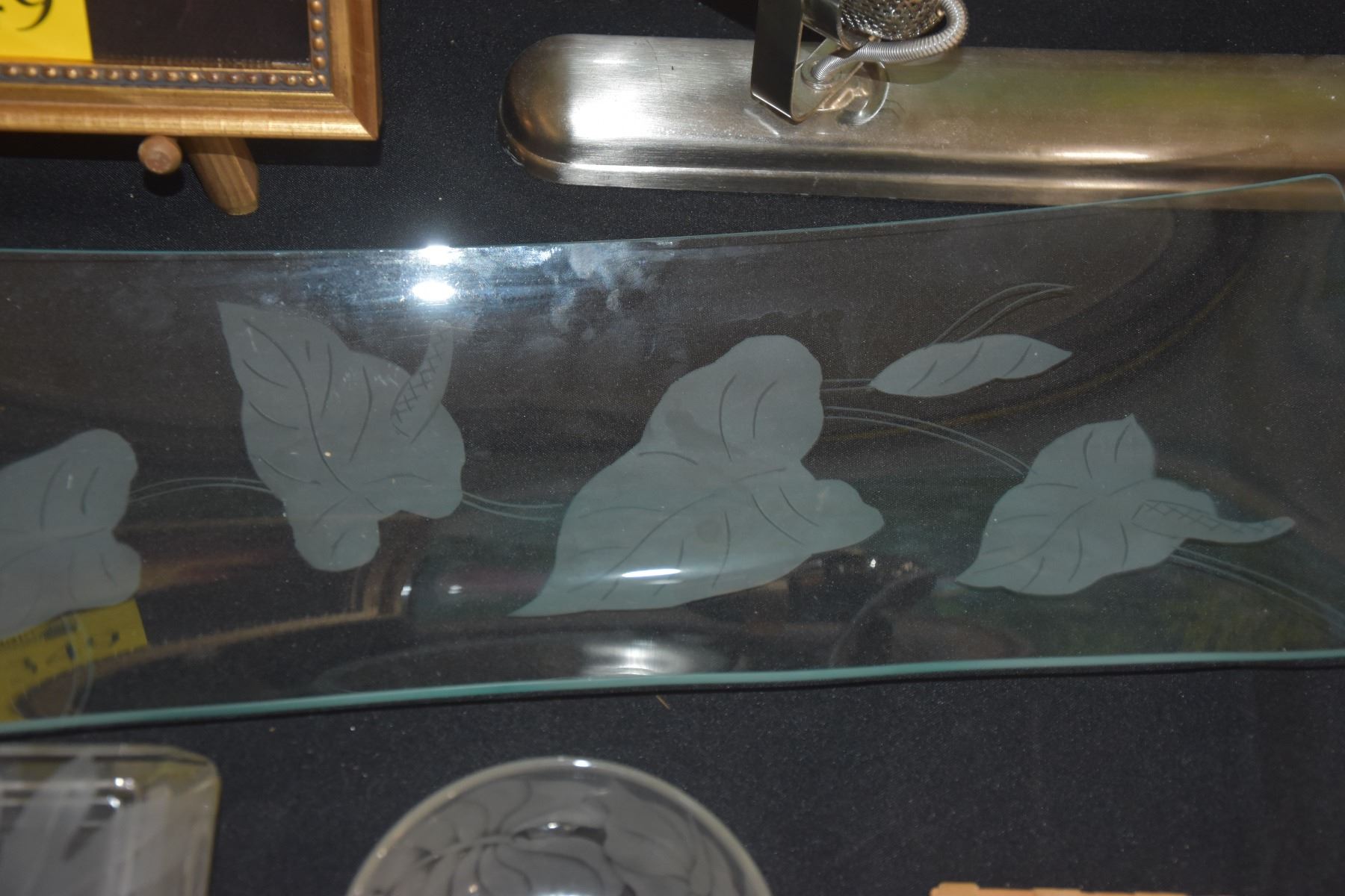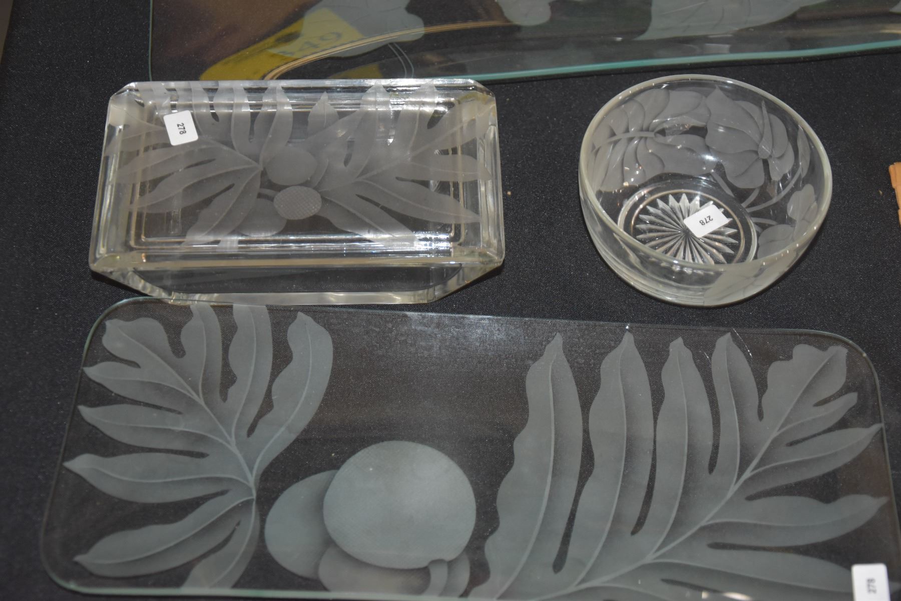 ETCHED GLASS TRAYS, COVERED BOX & BOWL (4 PCS)