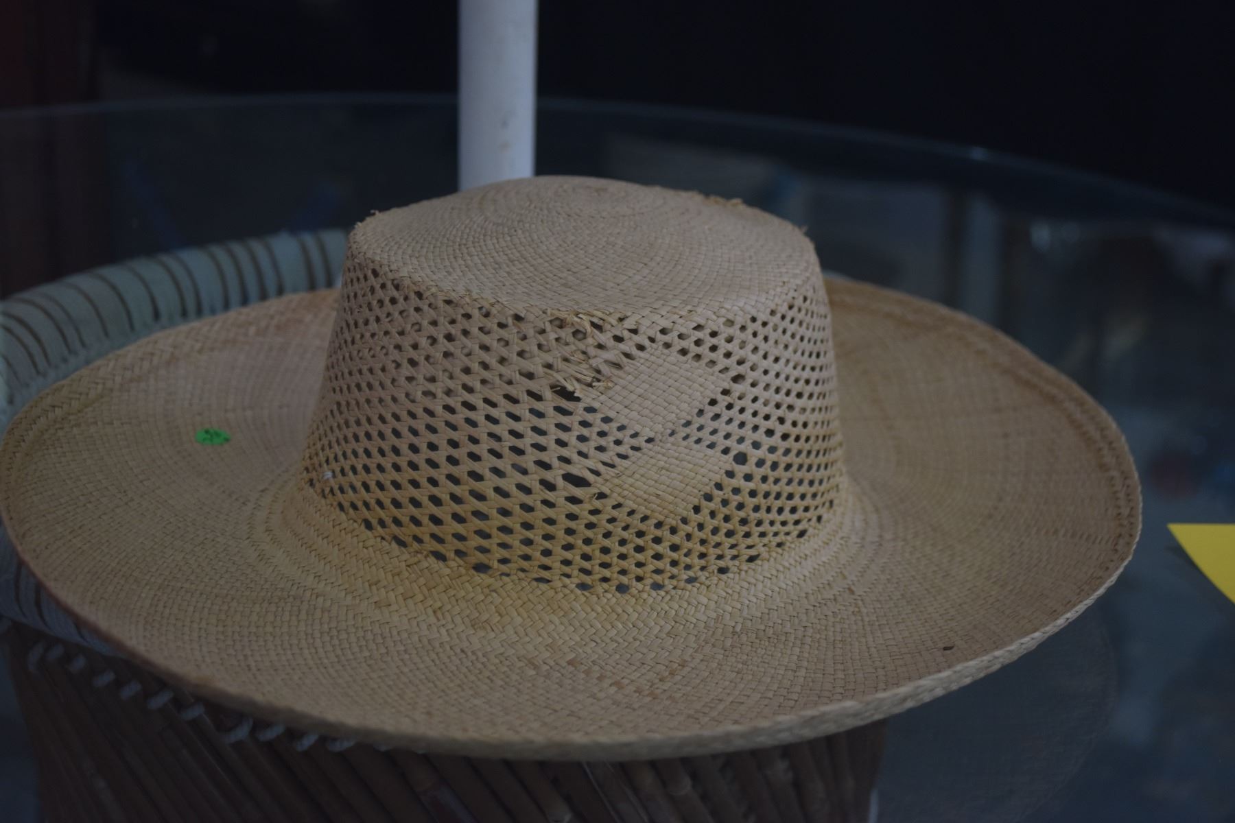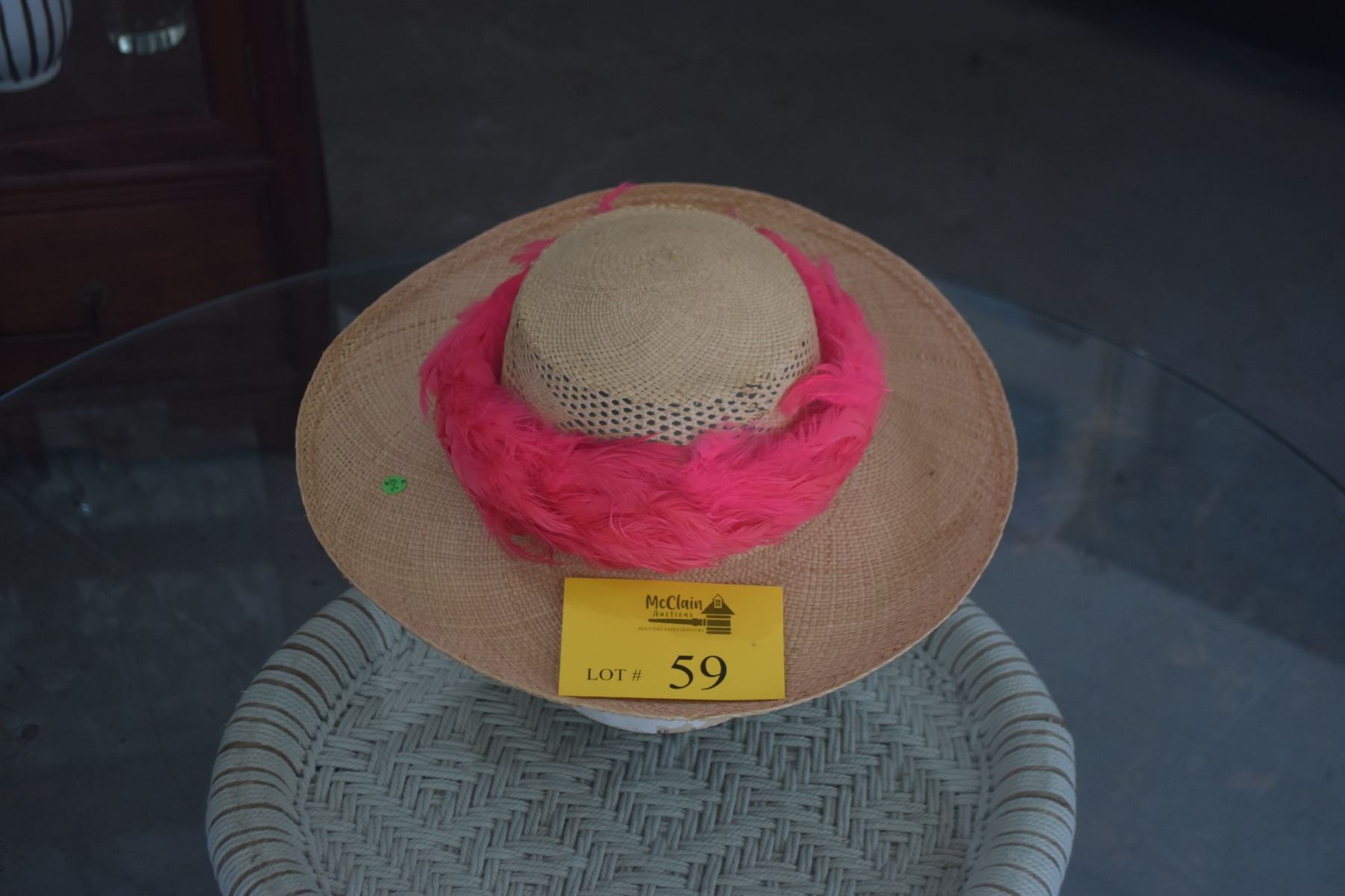 FINELY WOVEN HAT W/PINK FEATHER LEI