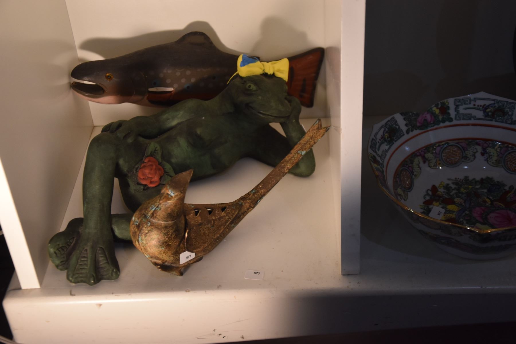 FISH, FROG & BIRD STATUARY (3 PCS)