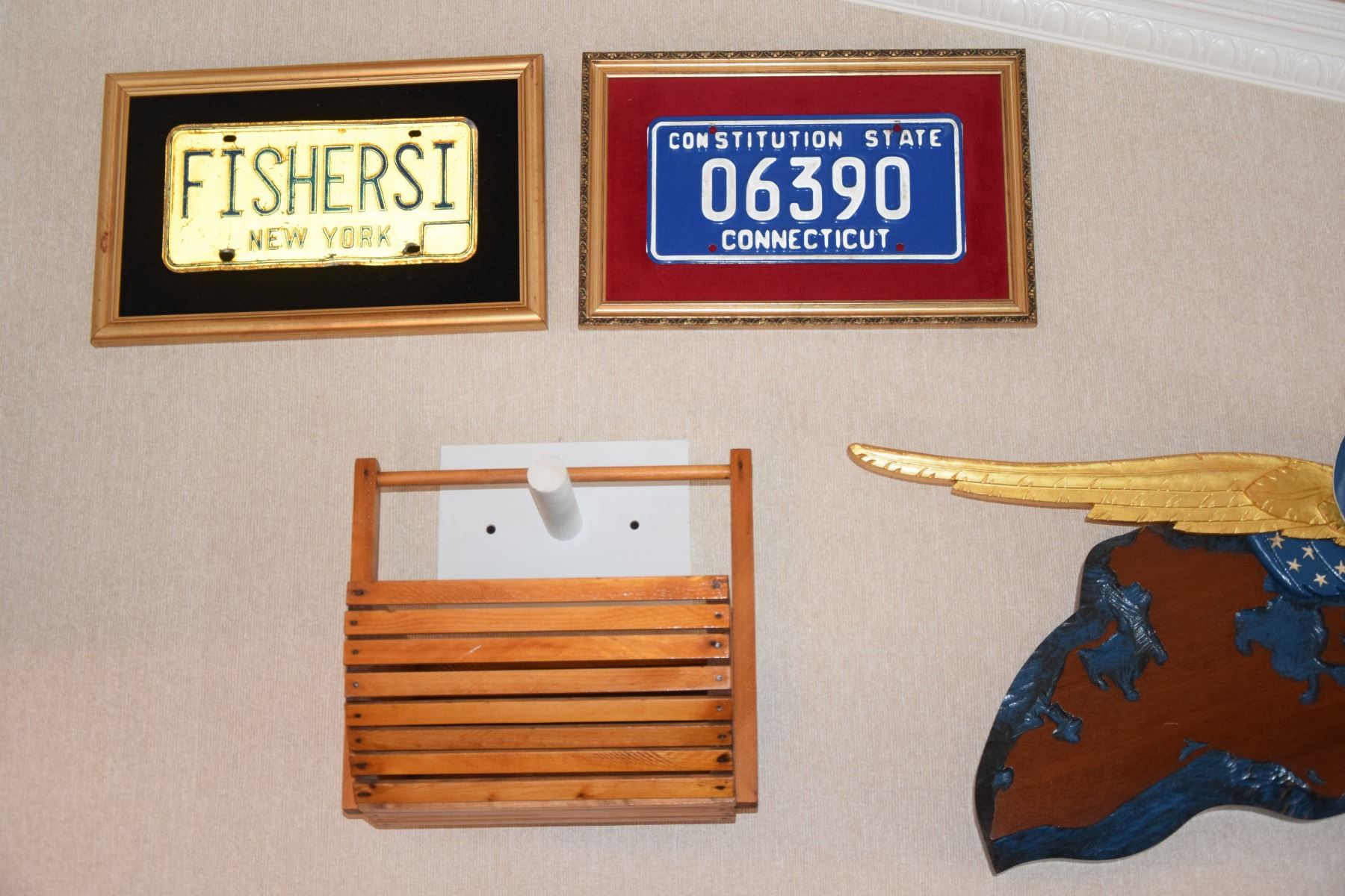 FISHER ISLAND MEMORABILIA: TRAY, HIGHBALL GLASSES, MUG, PAPERWEIGHT, TRIVETS, CLOCK, PLACEMATS, BOOK