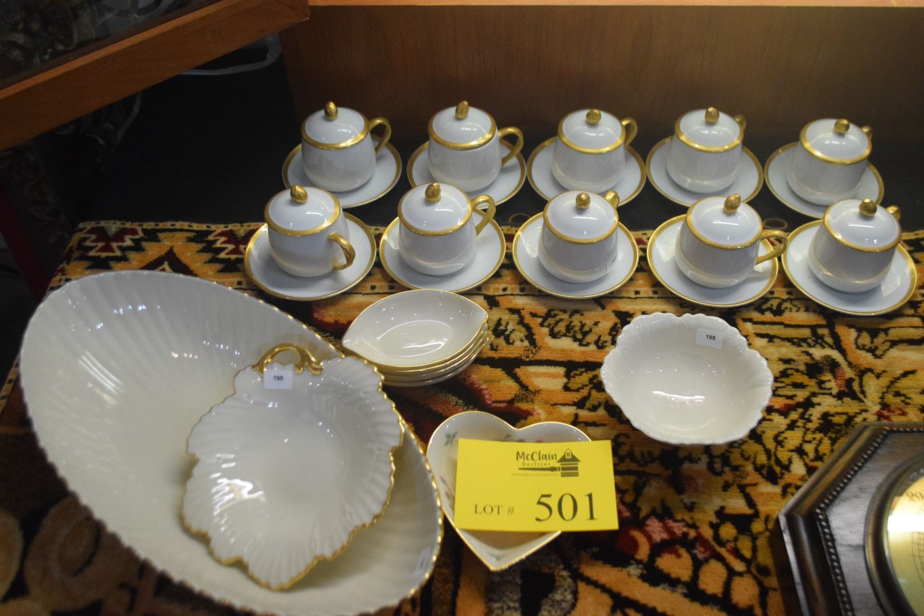 FITZ & FLOYD POTS DE CREME W/LID & SAUCER (GOLD RIM) W/ASSORTED LENOX BOWLS (28 PCS)