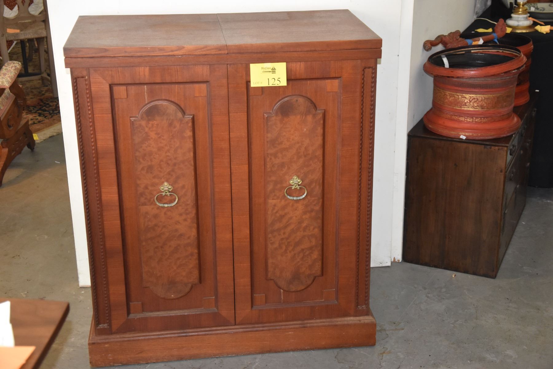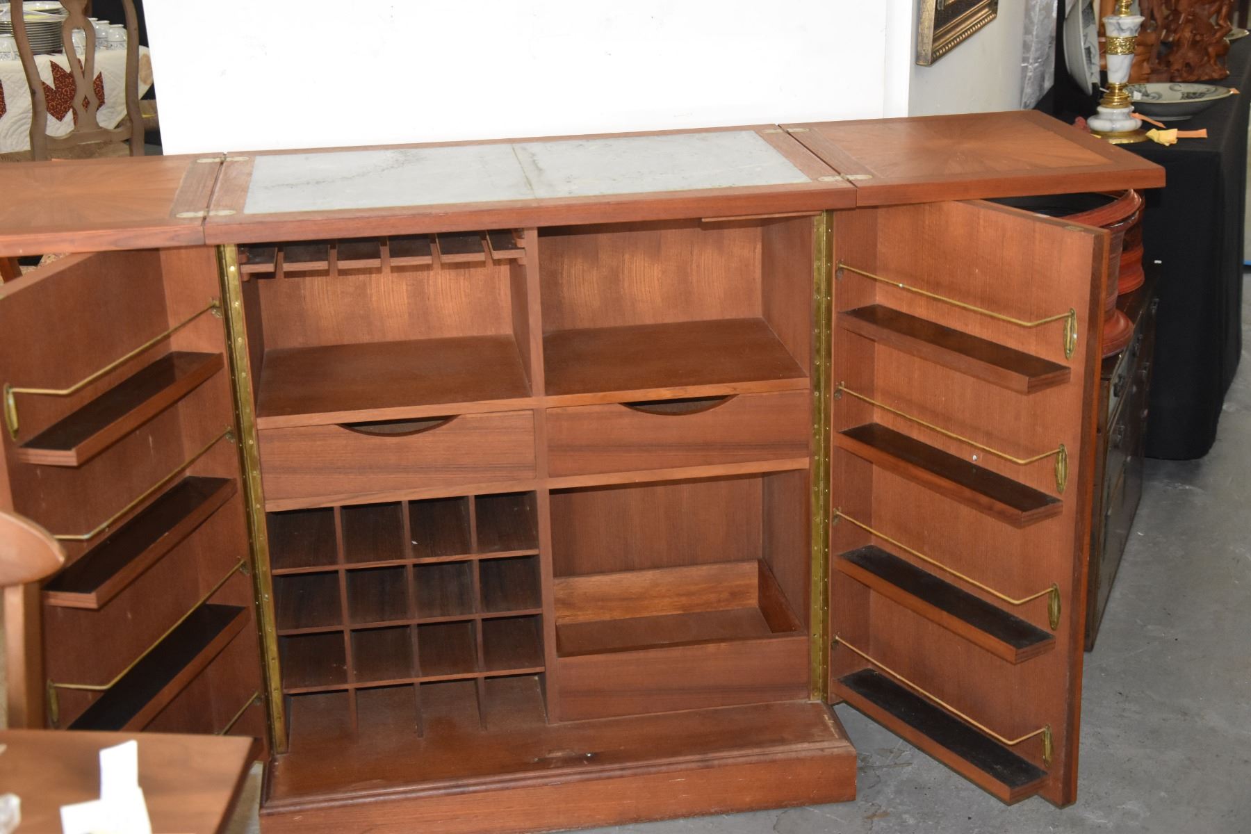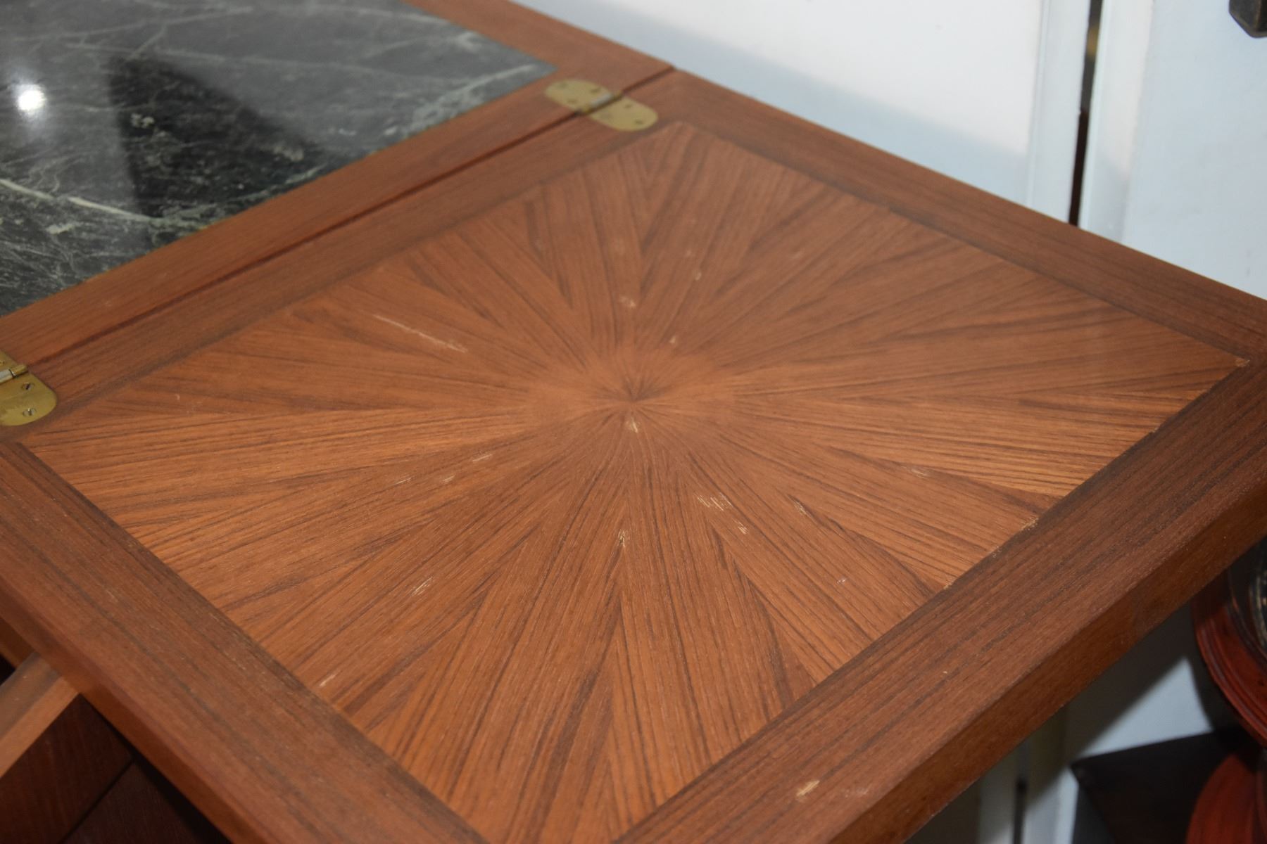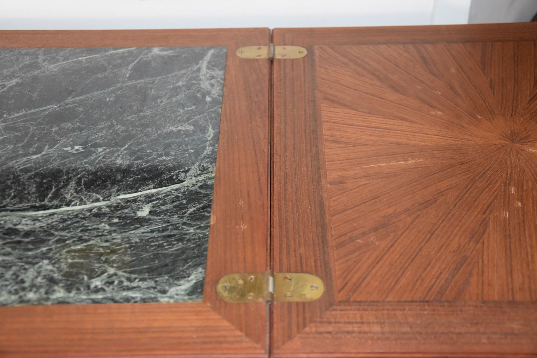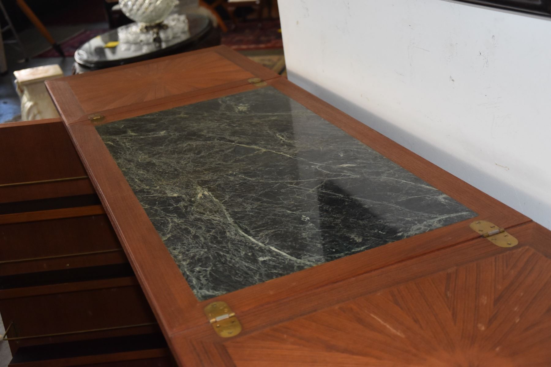 FOLDING BAR CABINET W/INLAID MARBLE TOP, 2 DOORS, 2 DRAWERS