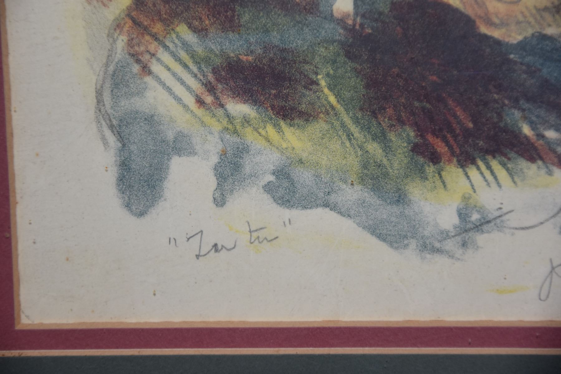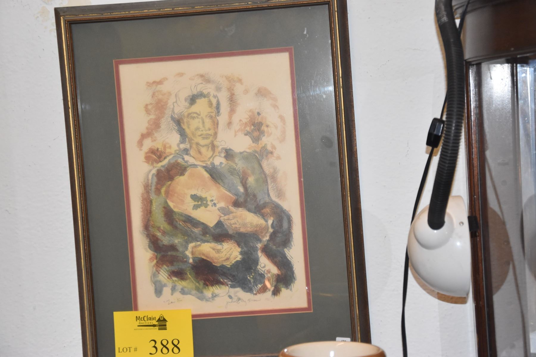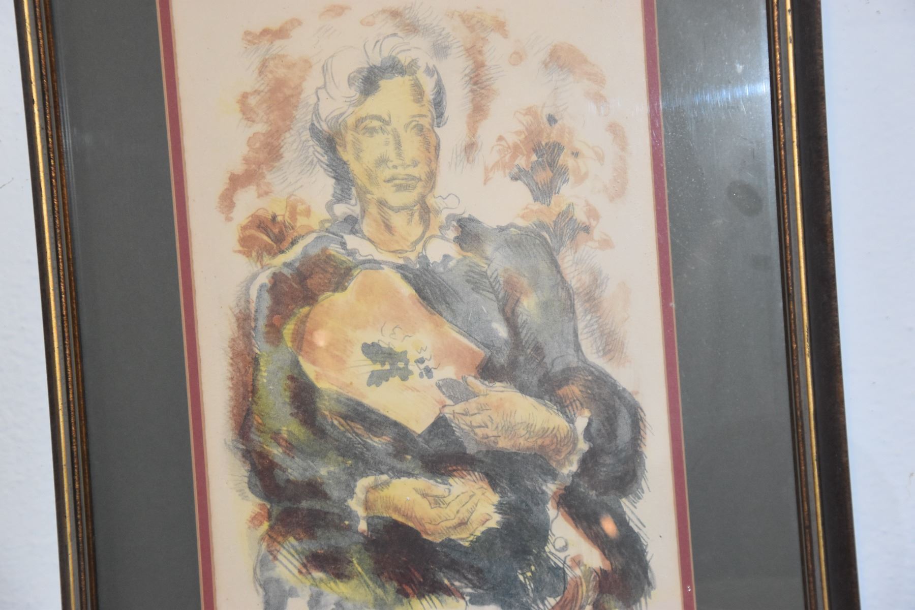 FRAMED 1970'S HAWAIIAN COLOR LITHOGRAPH PRINT, SUMMER WOMAN W/FAN BY JULIETTE MAY FRASER