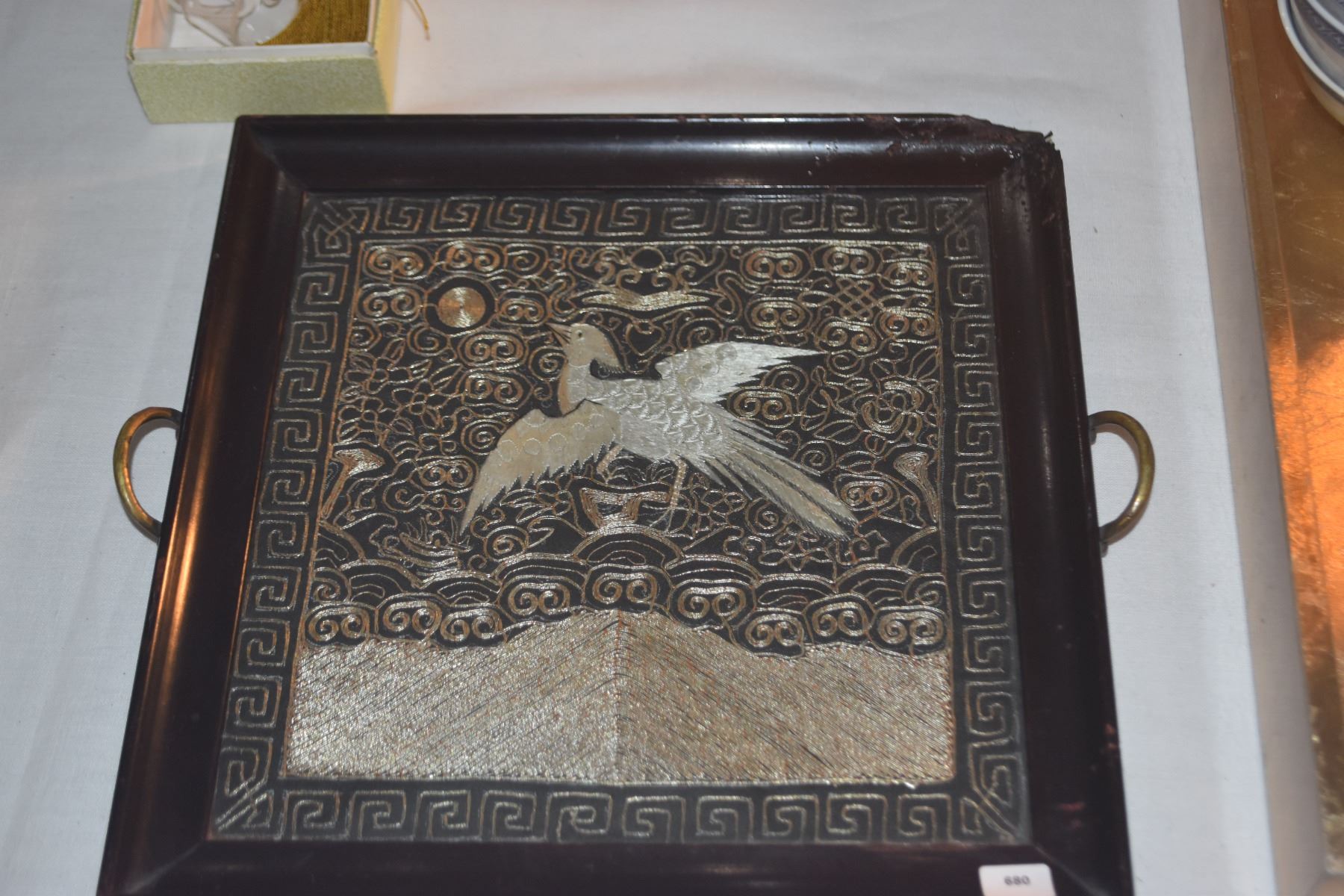 FRAMED 19TH CENTURY CHINESE SILK EMBROIDERED CHING RANK BADGE (11" X 11")