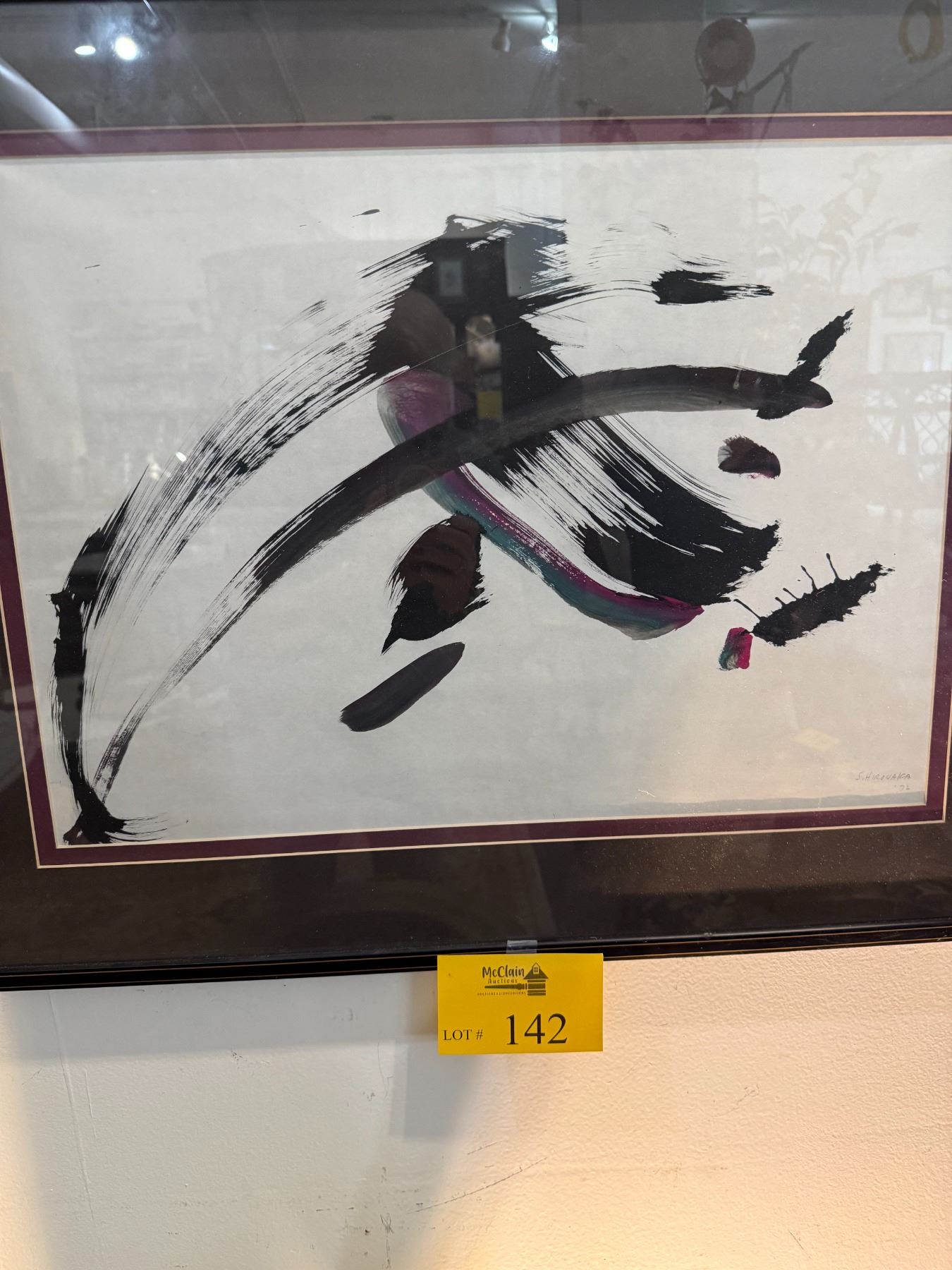 FRAMED ABSTRACT INK PAINTING; SIGNED S. HIRONAKA '72 (29  X 23 )