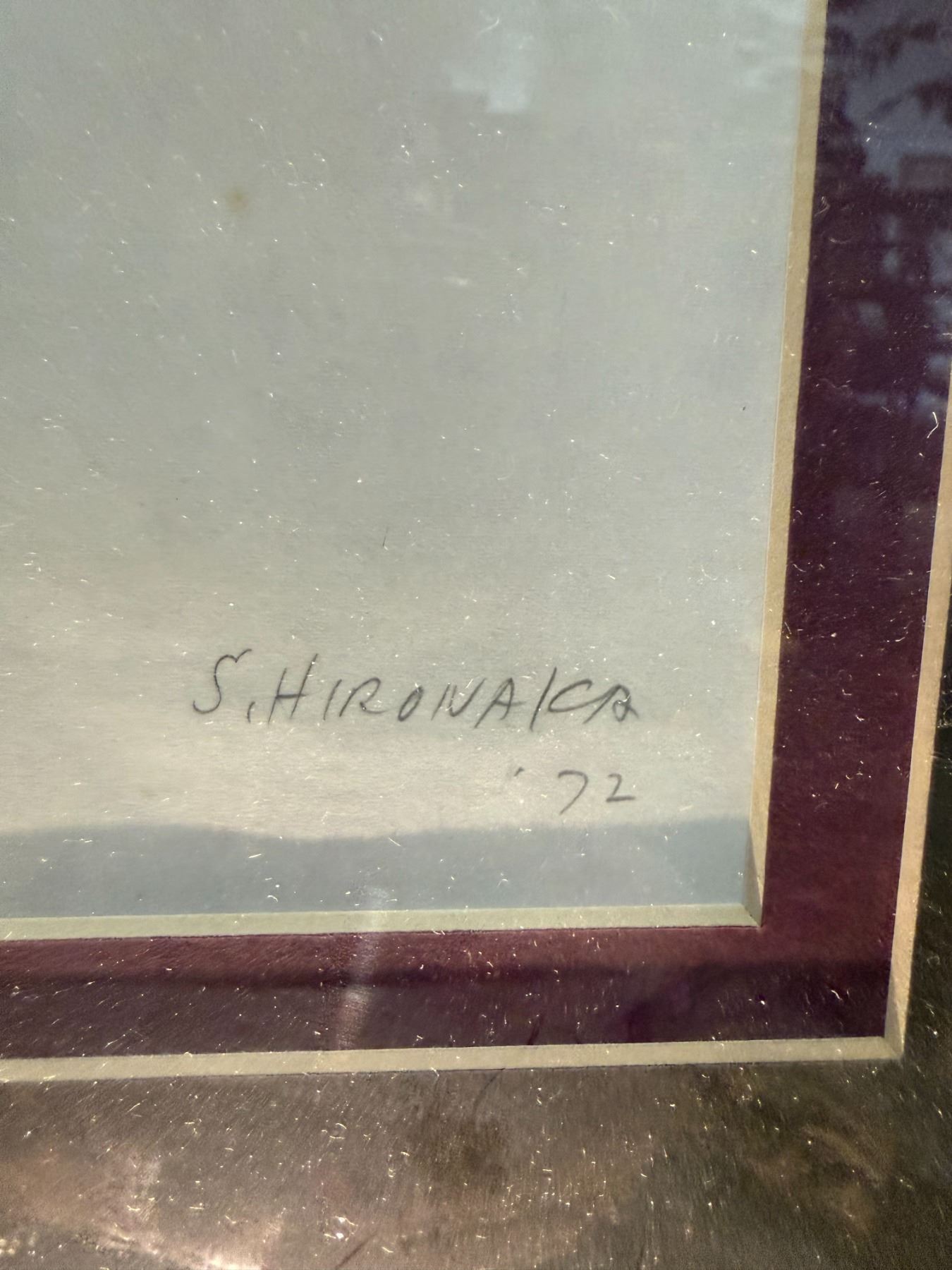 FRAMED ABSTRACT INK PAINTING; SIGNED S. HIRONAKA '72 (29" X 23")