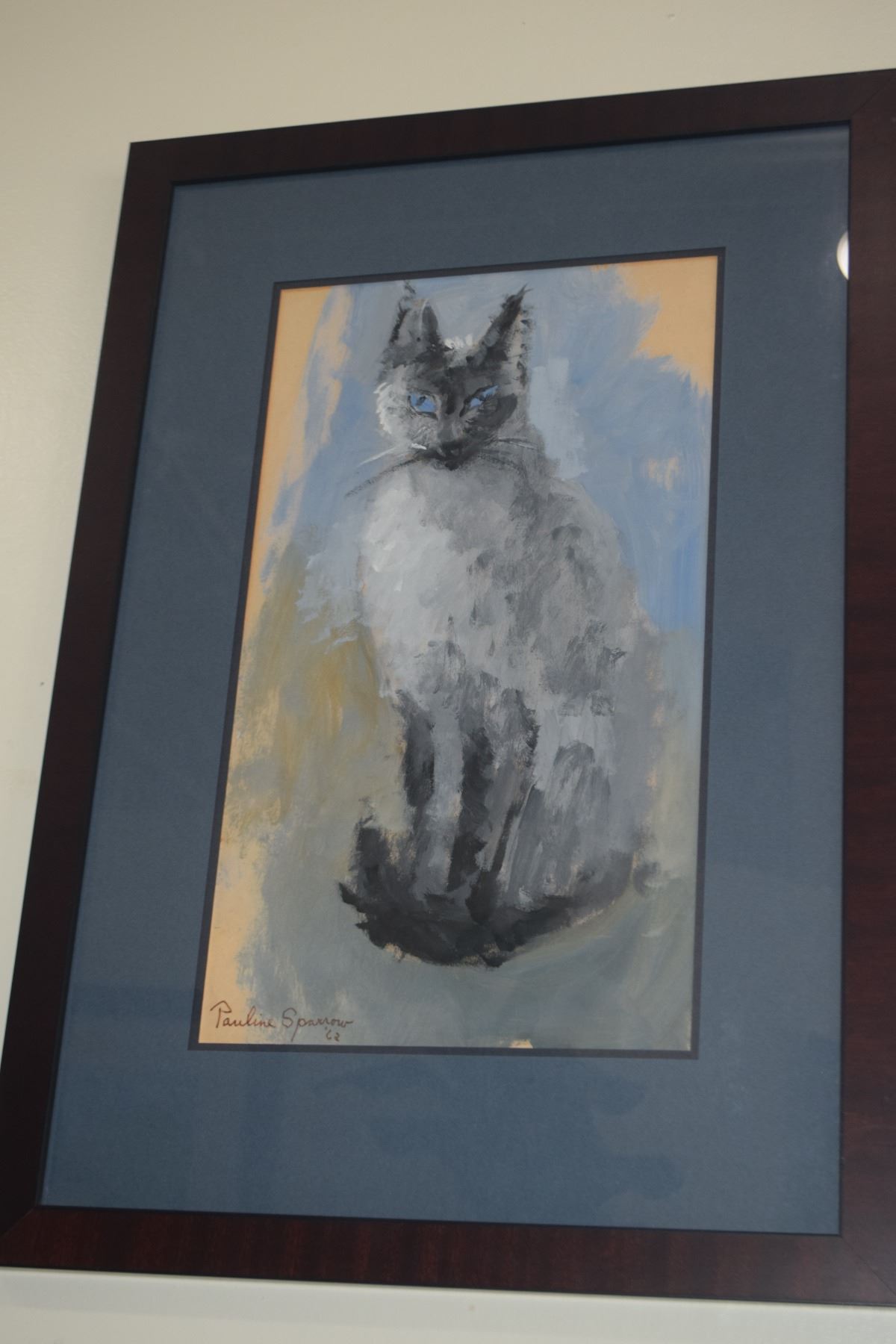 FRAMED ACRYLIC, CAT; SIGNED PAULINE SPARROW '62 (18" X 25 1/4")