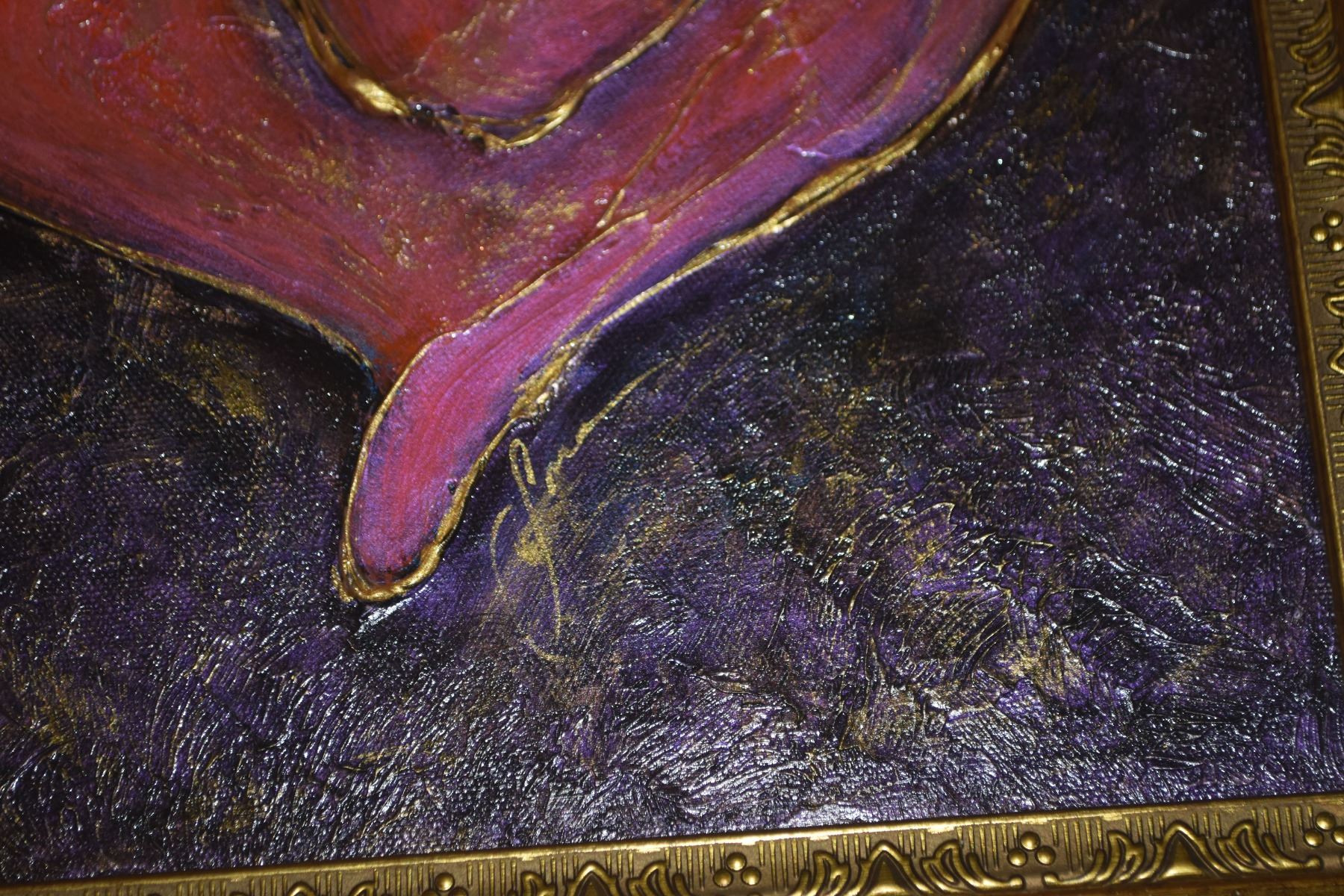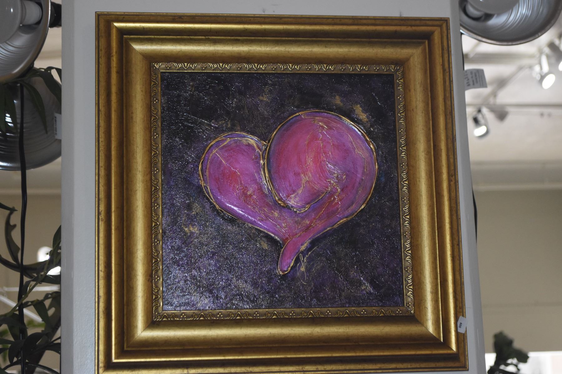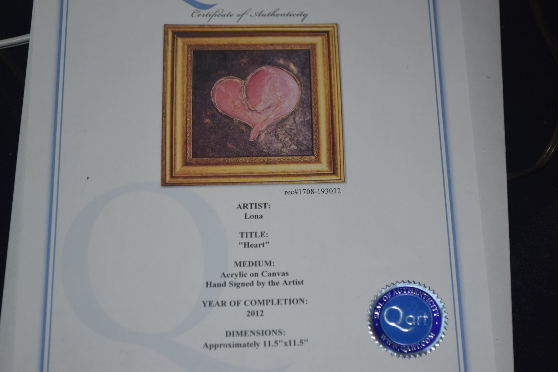 FRAMED ACRYLIC ON CANVAS, "HEART"; SIGNED LONA (17 1/2" X 17 1/2")