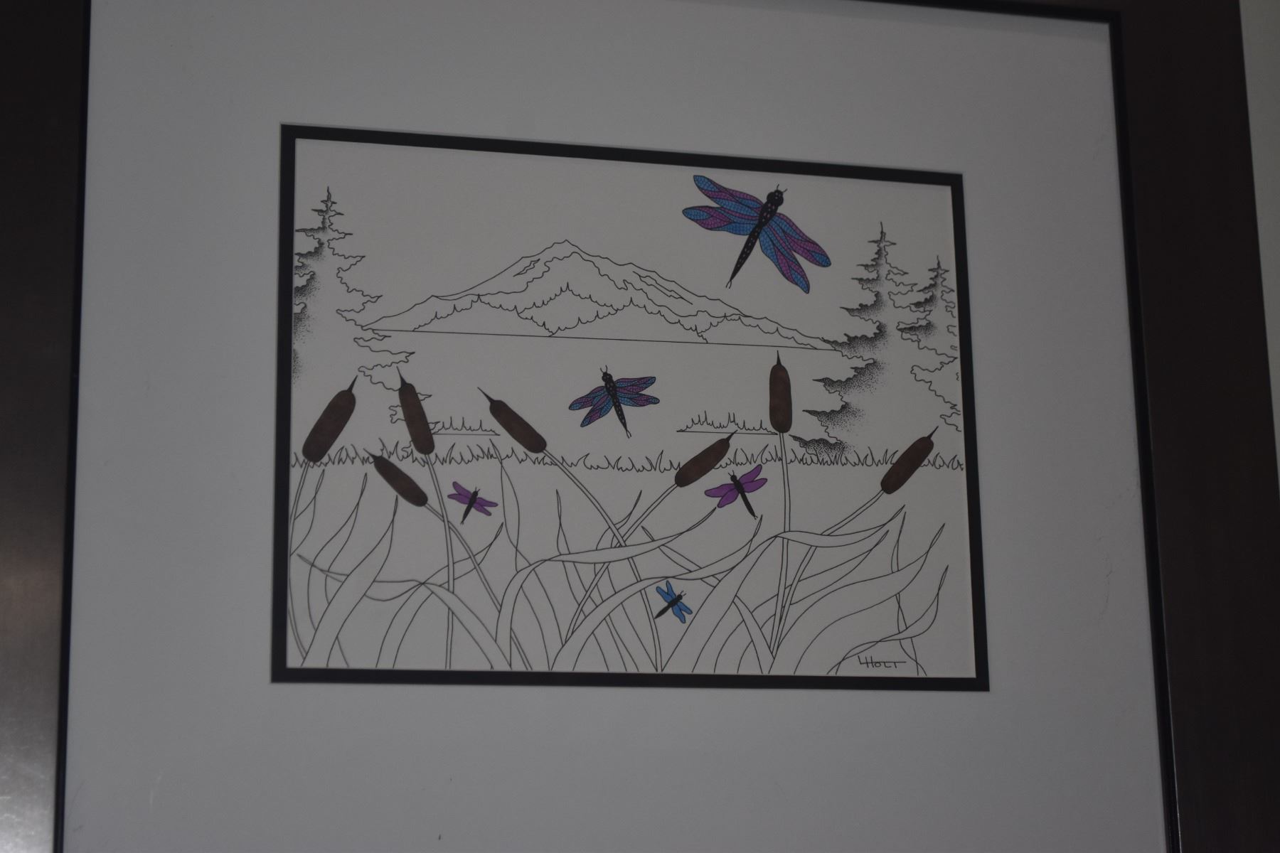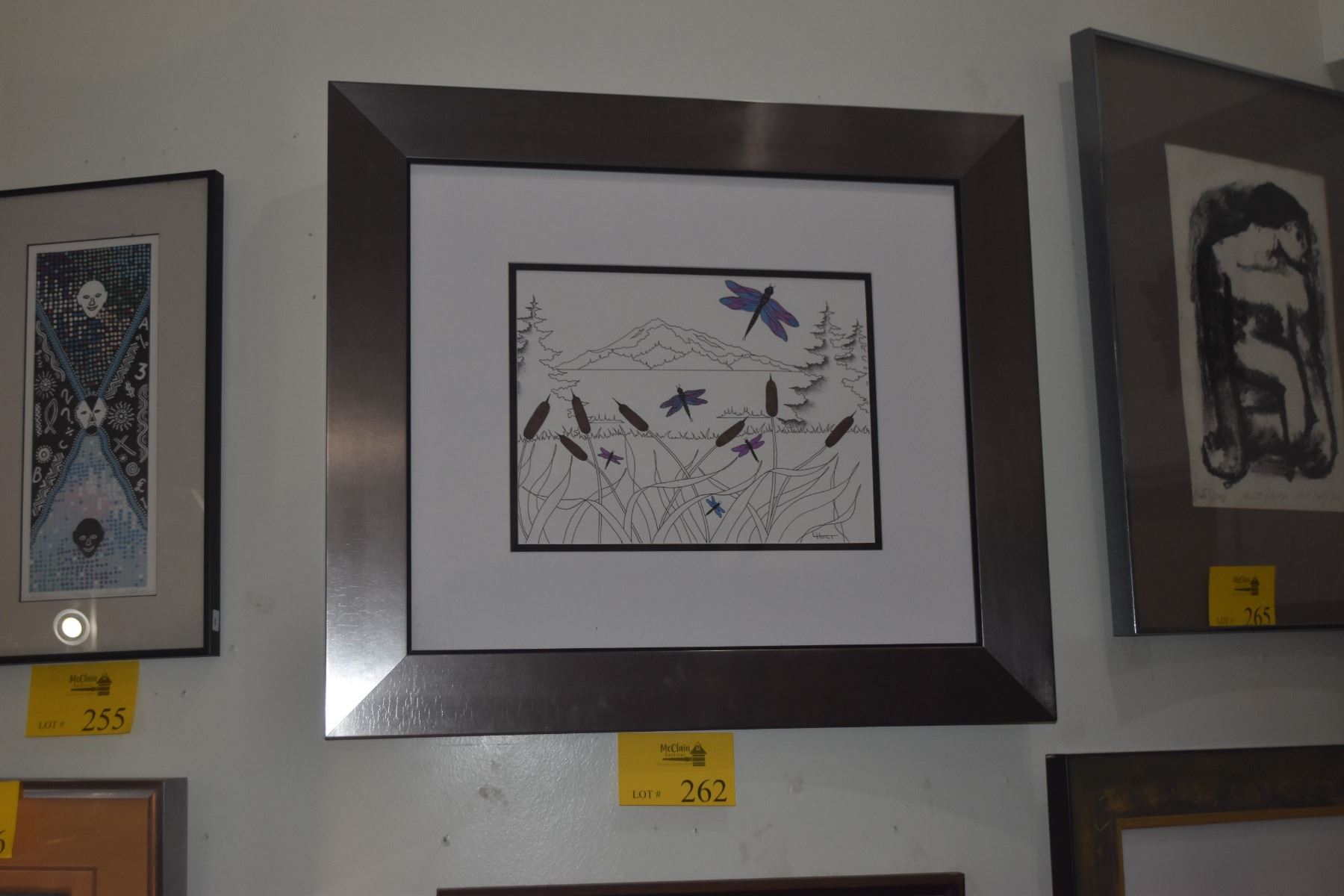 FRAMED ART, DRAGONFLIES & CATTAILS BY LARISSA HOLT (27" X 24")