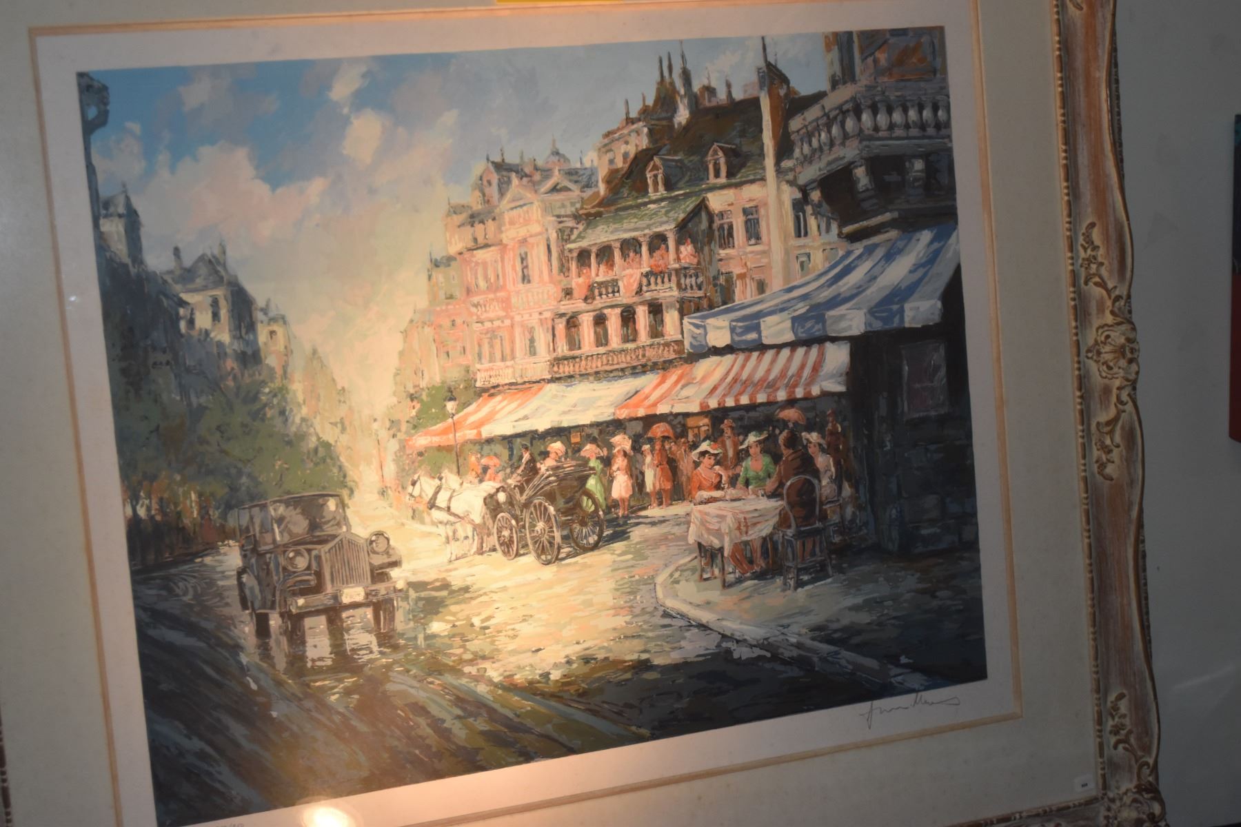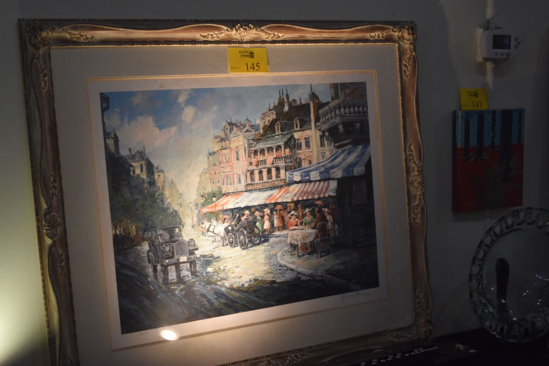 FRAMED ART PRINT, PARISIAN STREET SCENE BY AMERICA MAKK 252/350 (43 3/4" X 38 1/4")