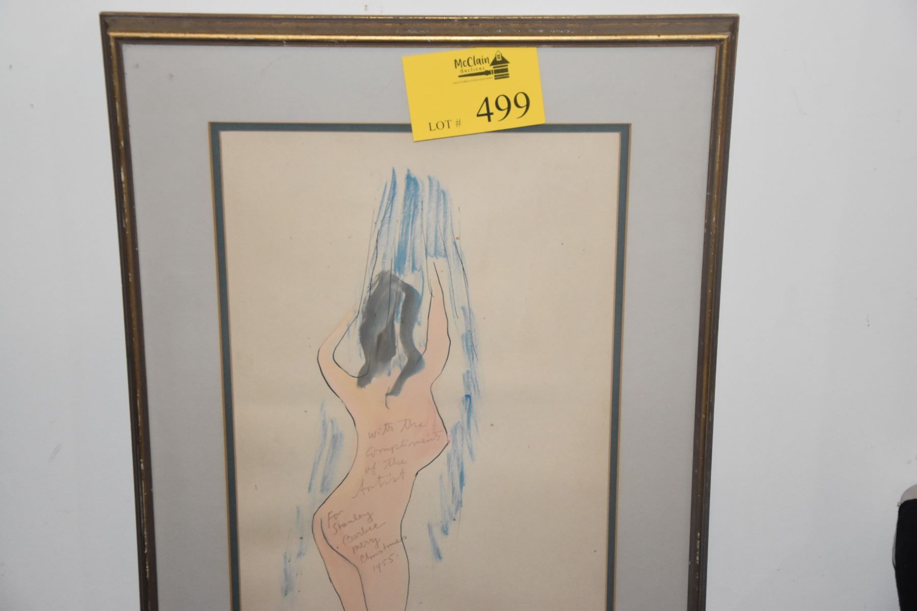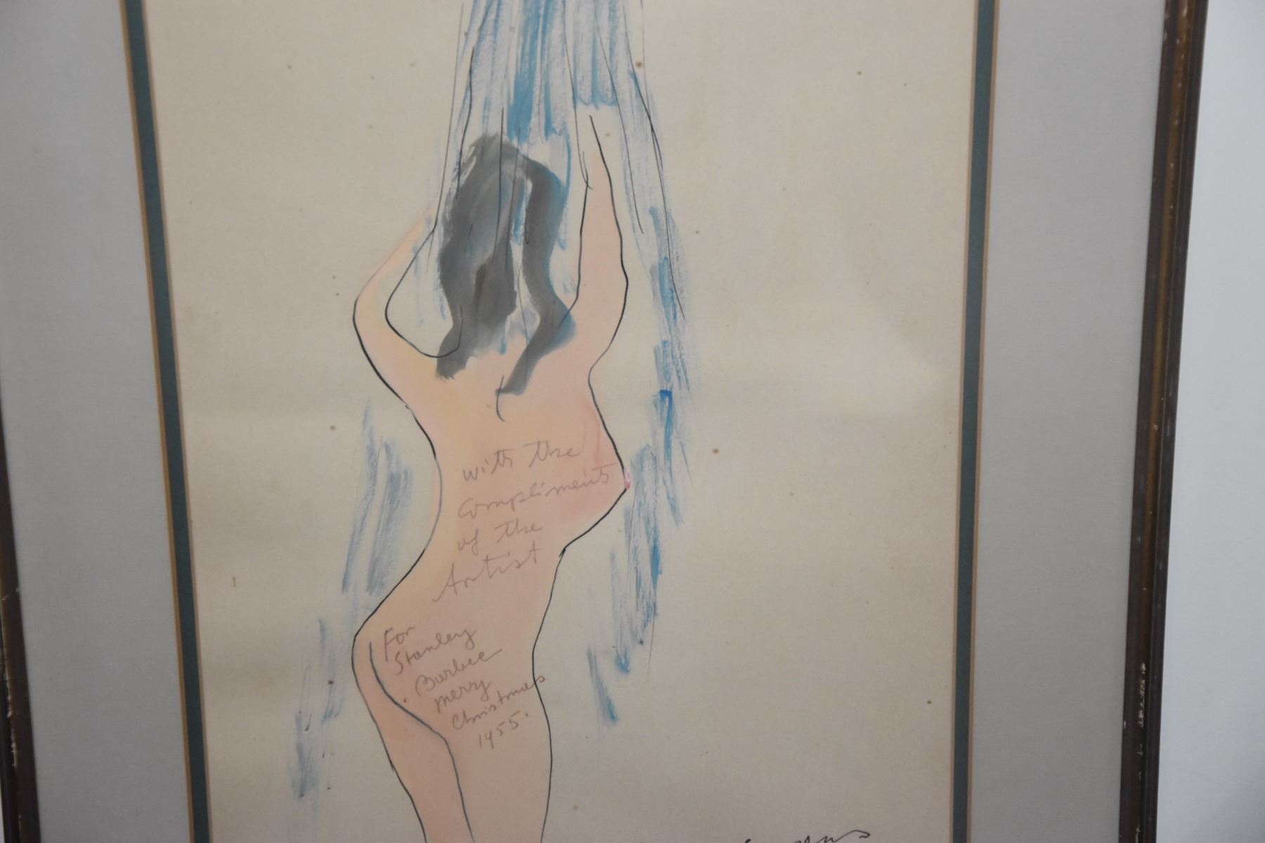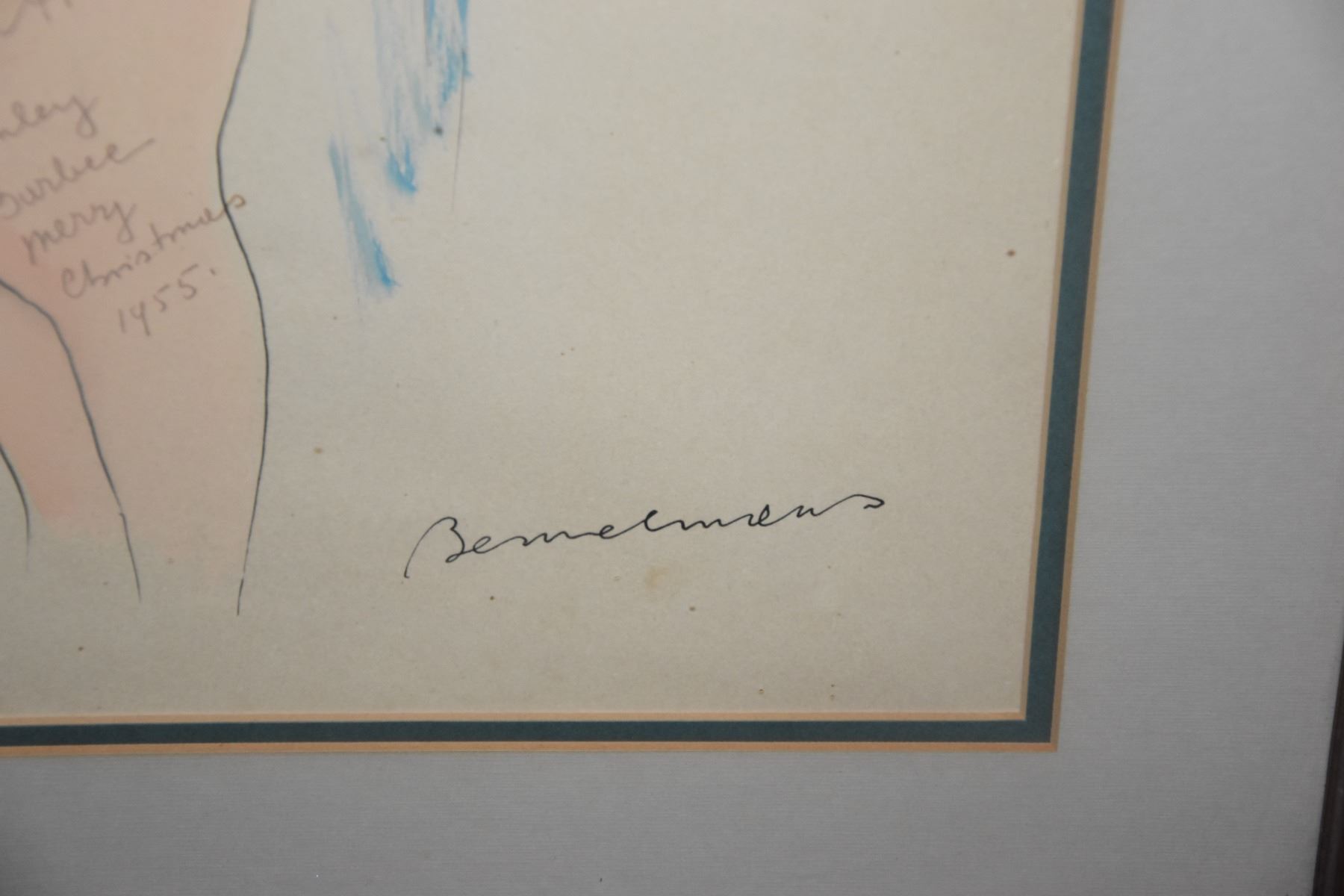 FRAMED BEMELMANS DRAWING; NUDE FEMALE (19 3/4" X 27 1/2")