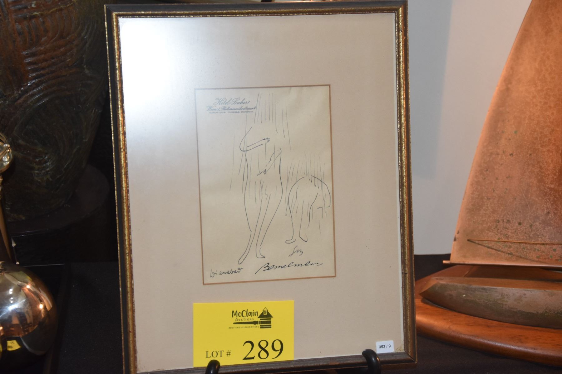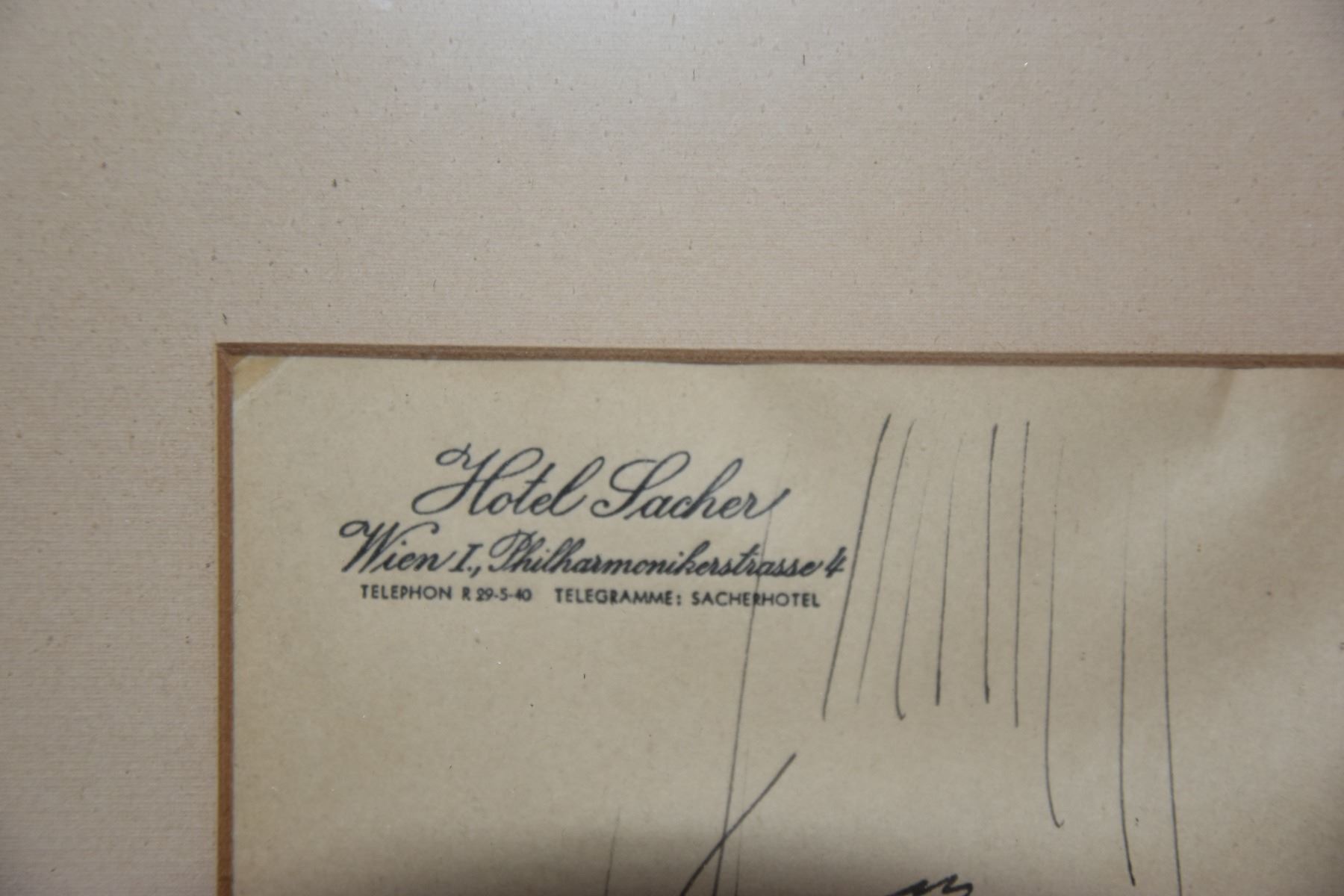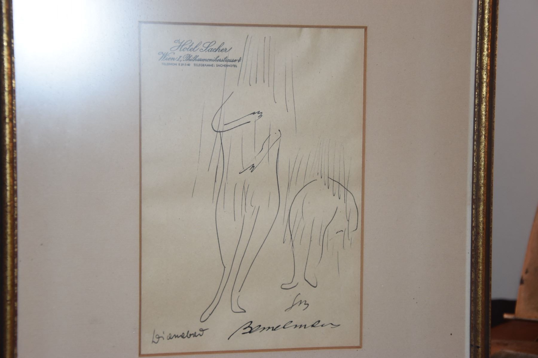 FRAMED BEMELMANS SKETCH ON HOTEL STATIONARY (12 1/4" X 15 1/4")