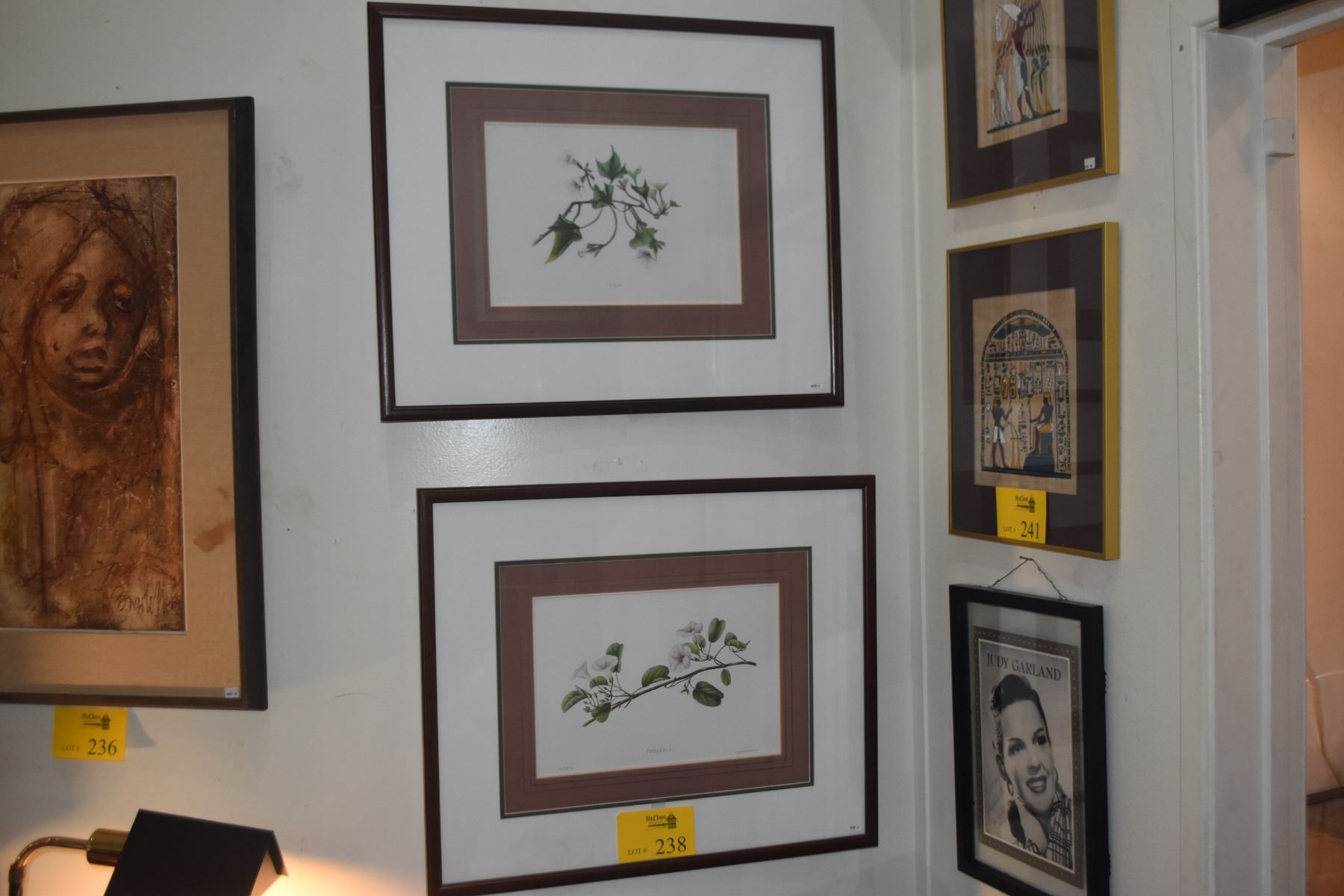 FRAMED BOTANICAL PRINTS, "UALA" & "POHUEHUE" (2 PCS)