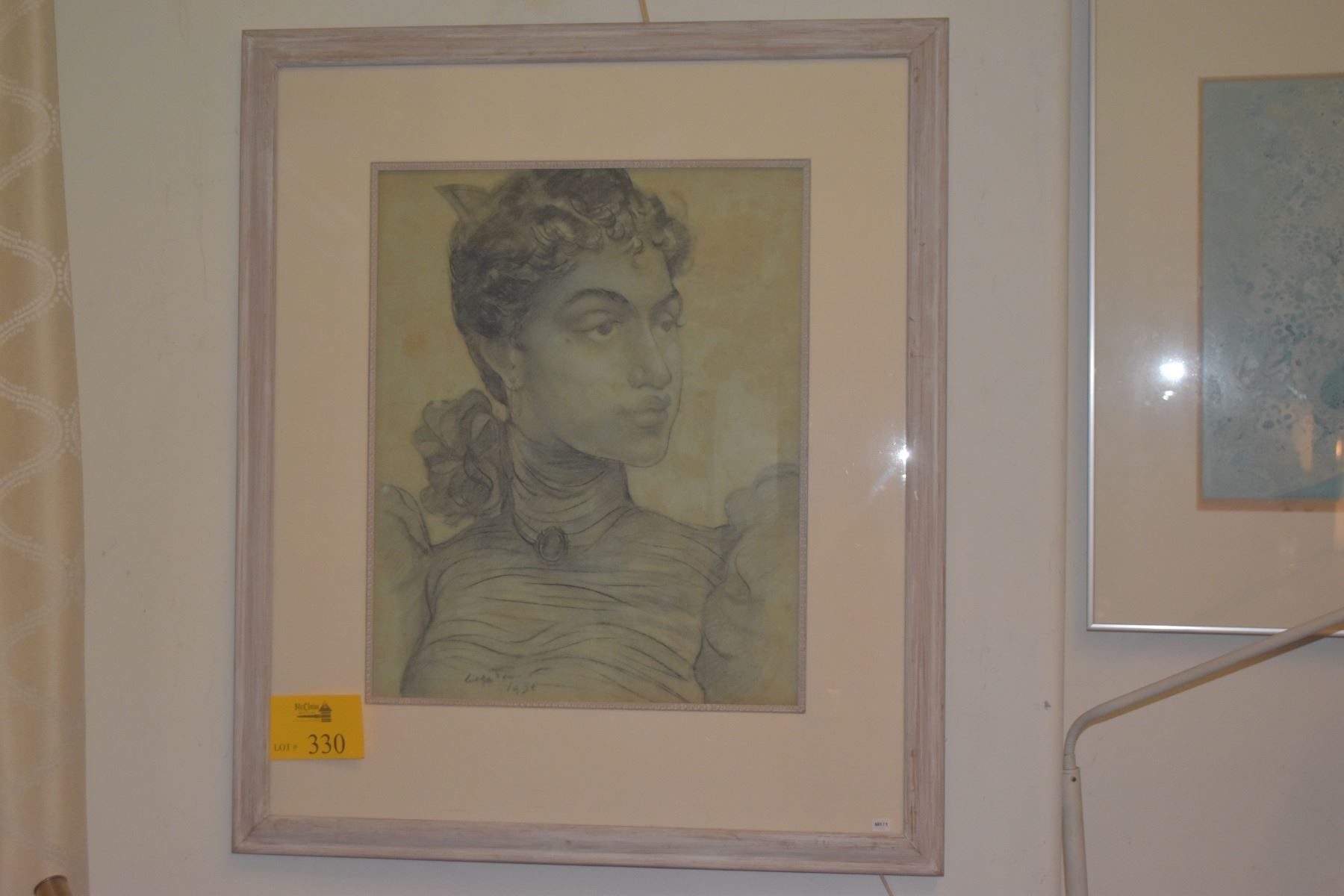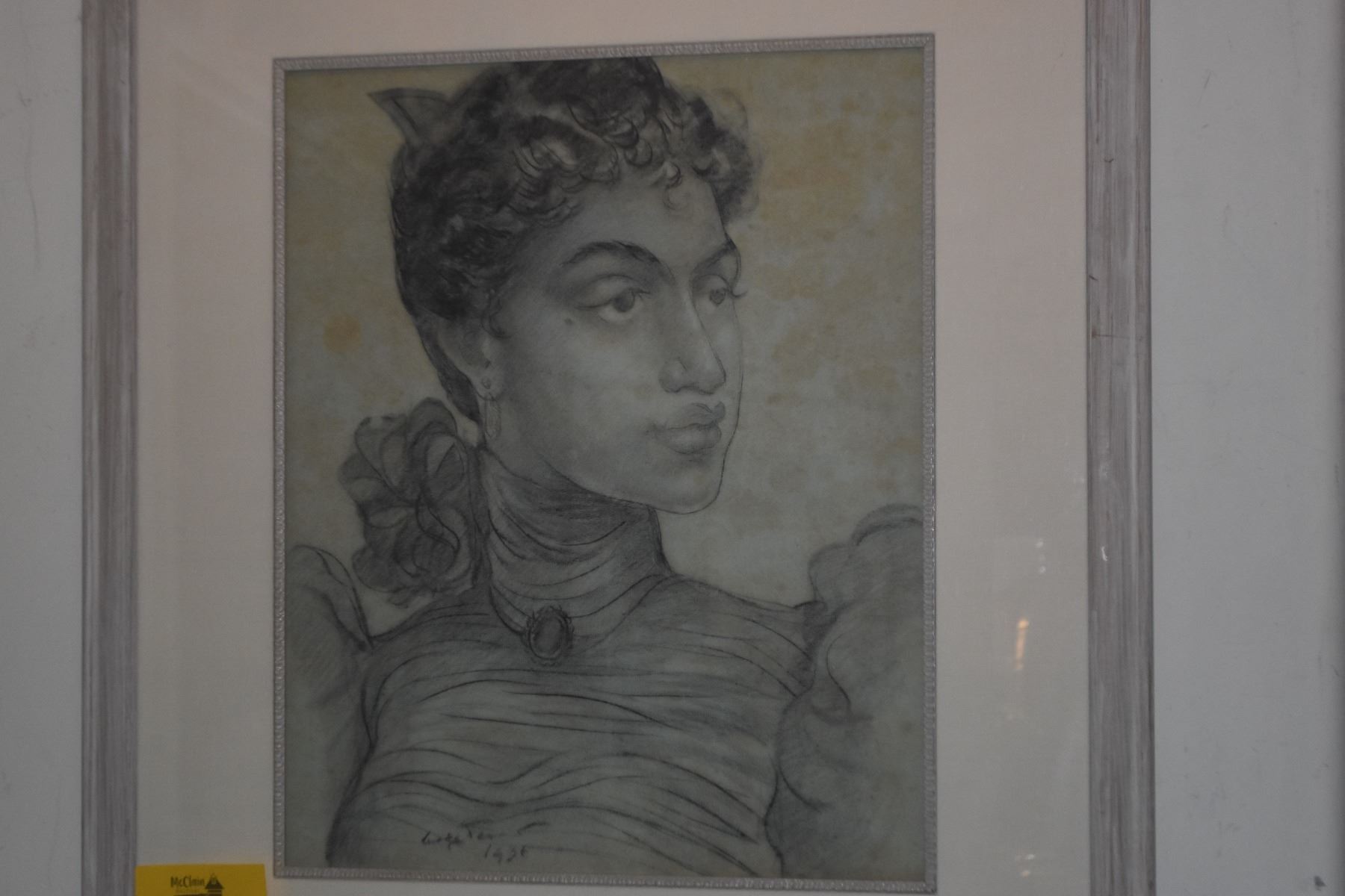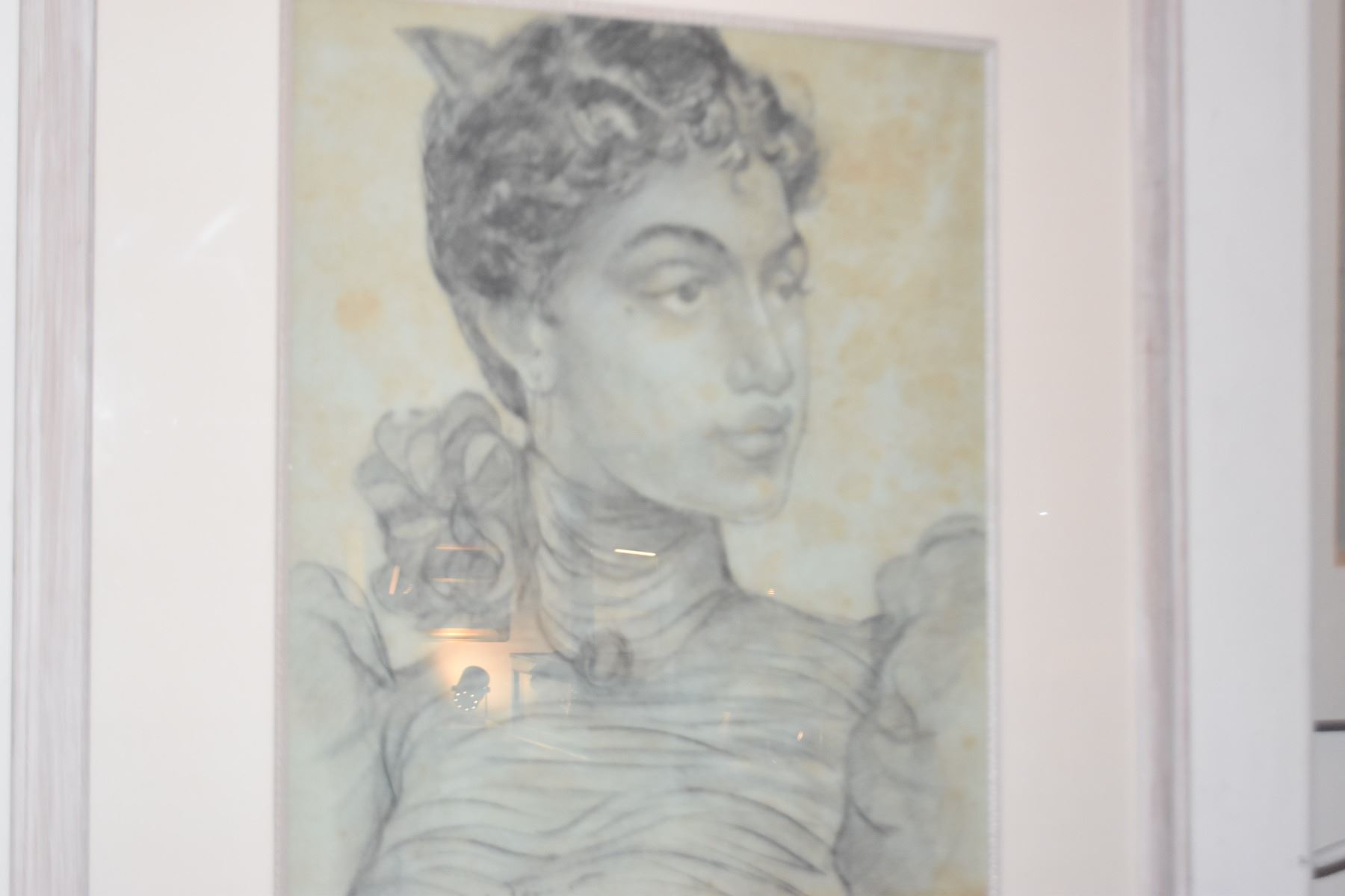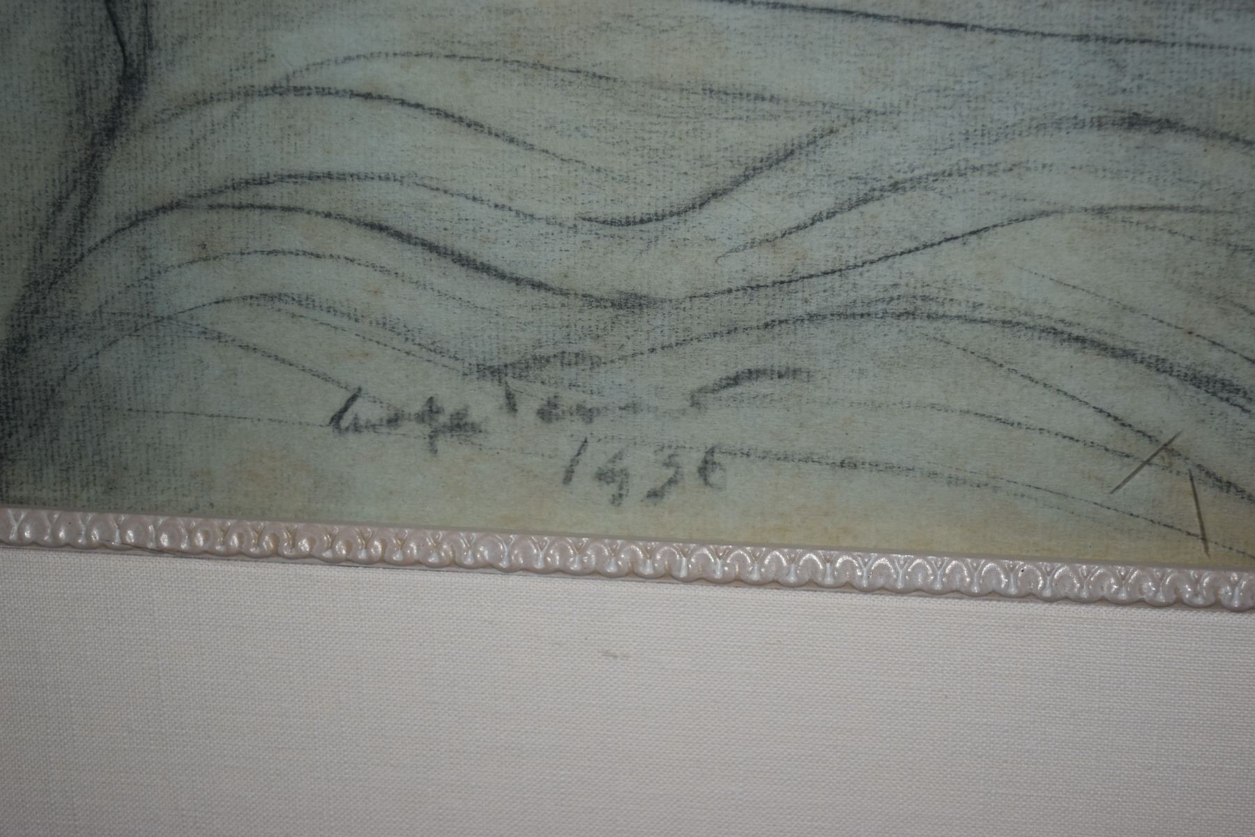FRAMED CHARCOAL PORTRAIT DRAWING; SIGNED MADGE TENNENT 1936 (29 1/2" x 34 1/2")