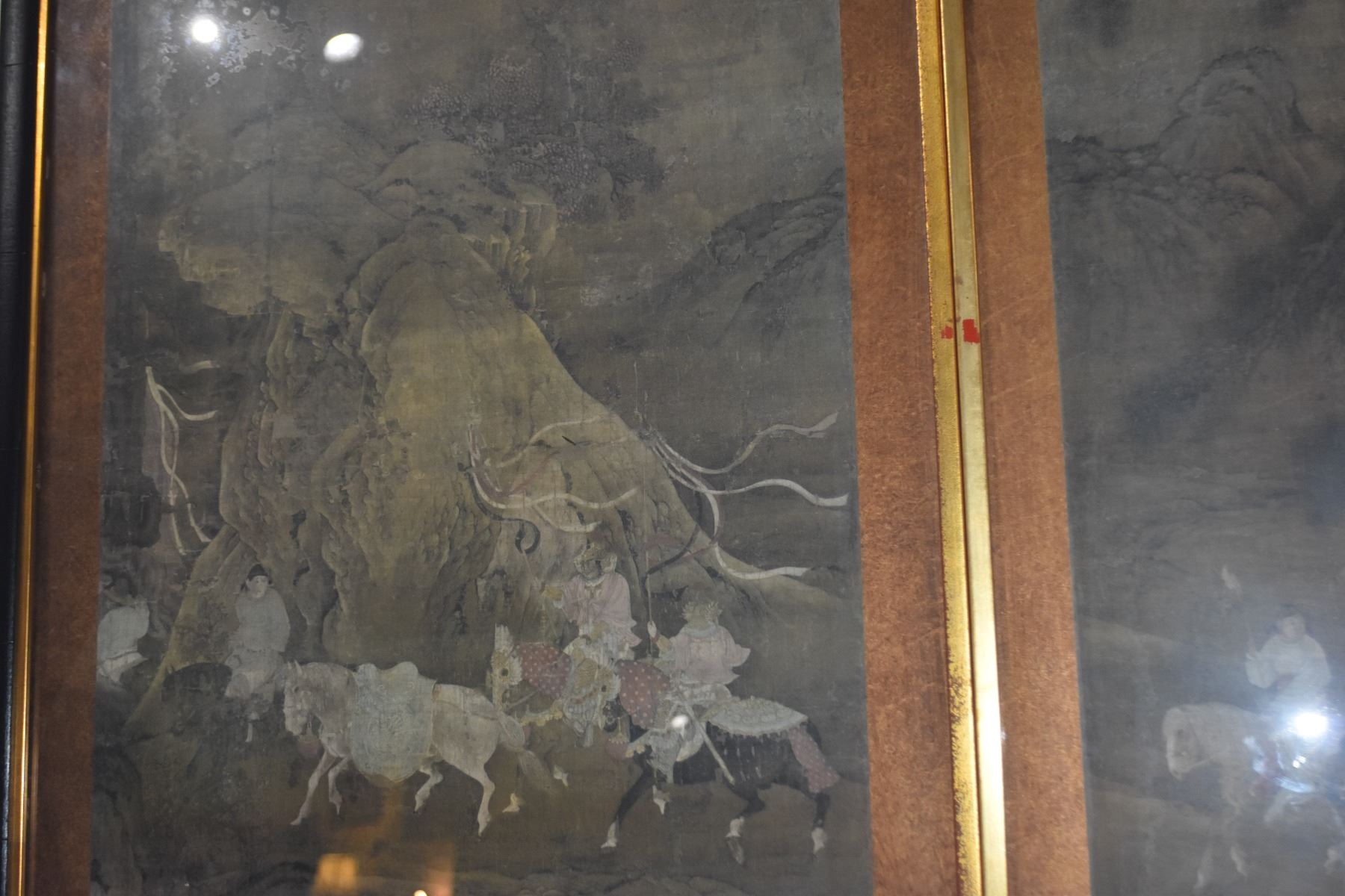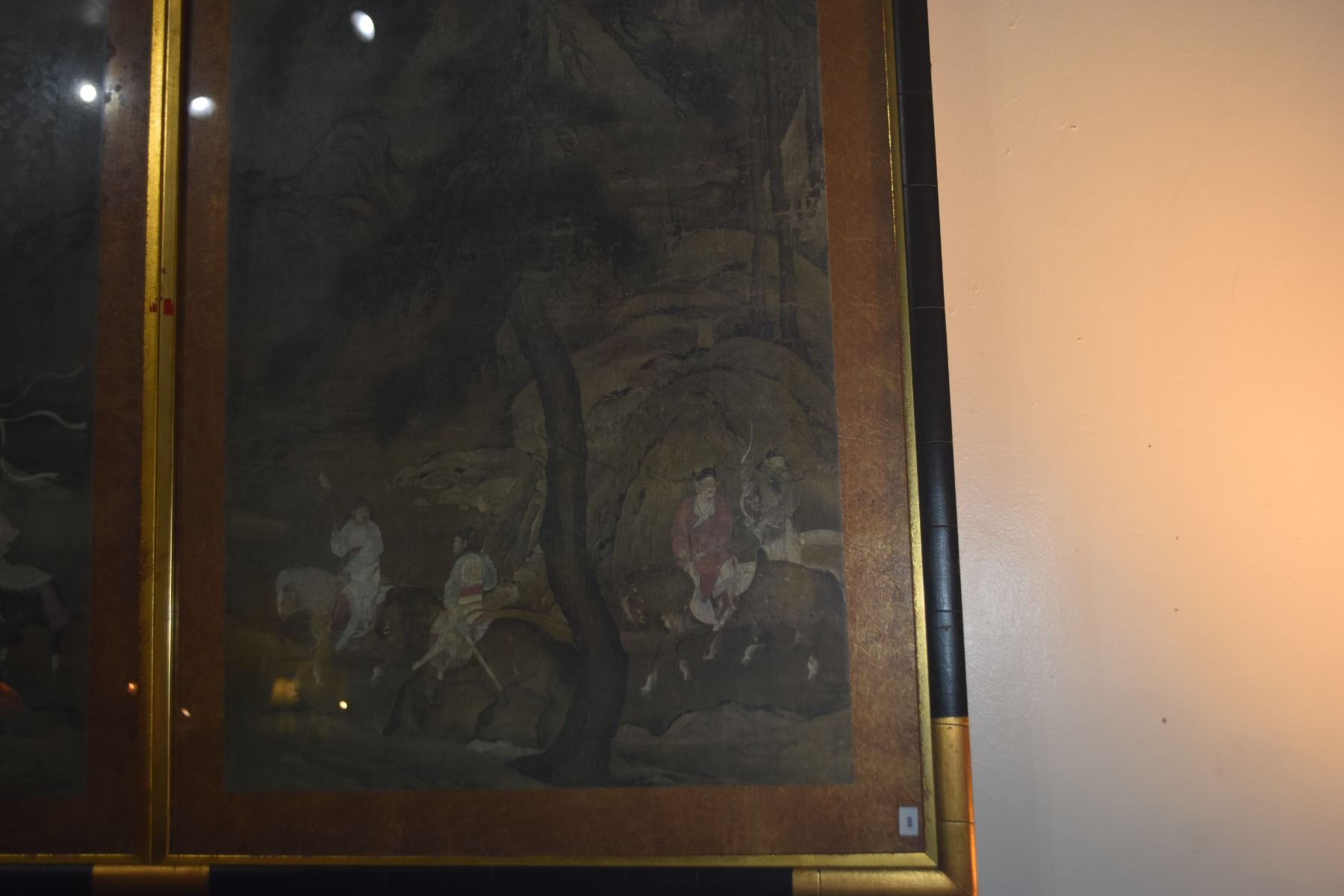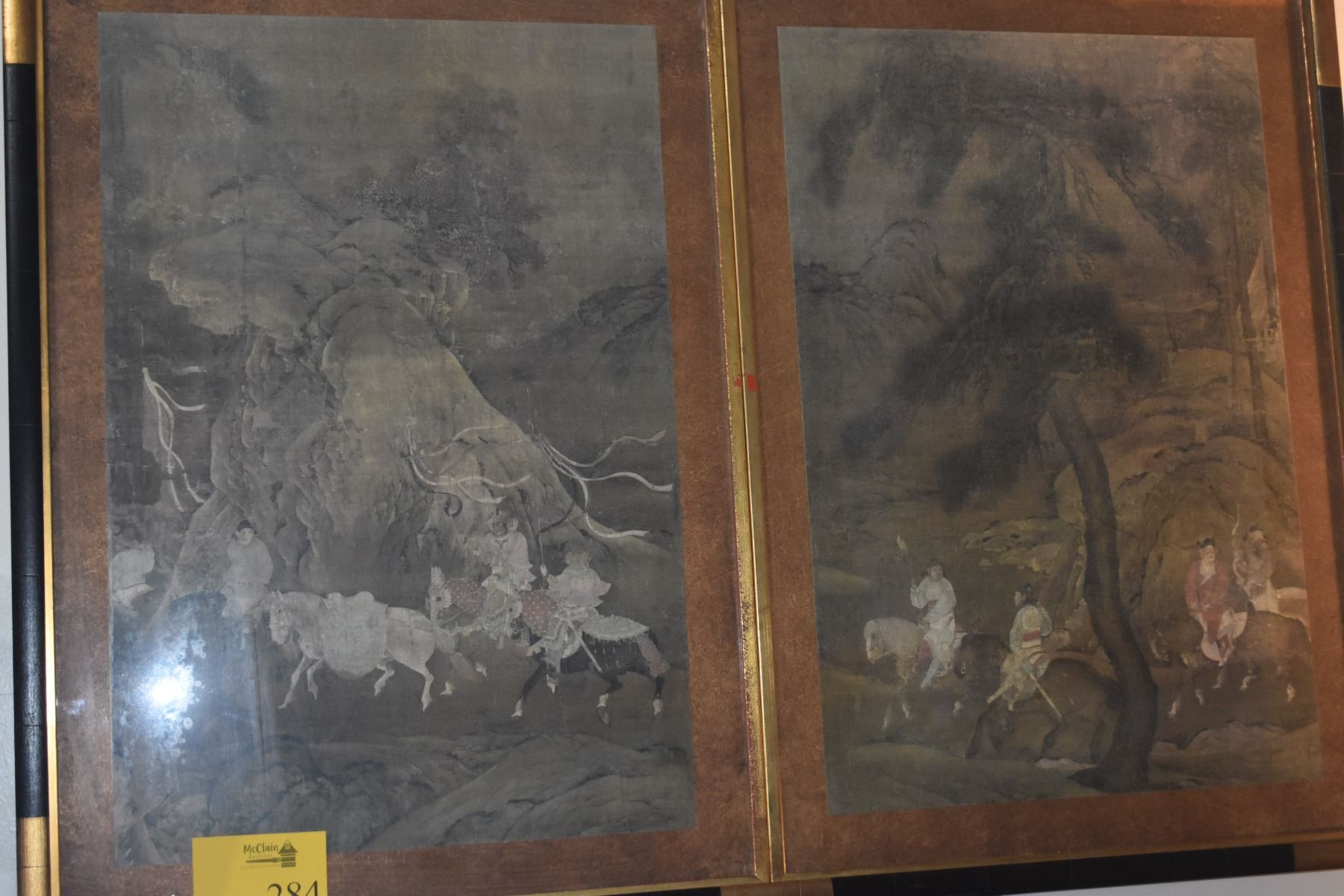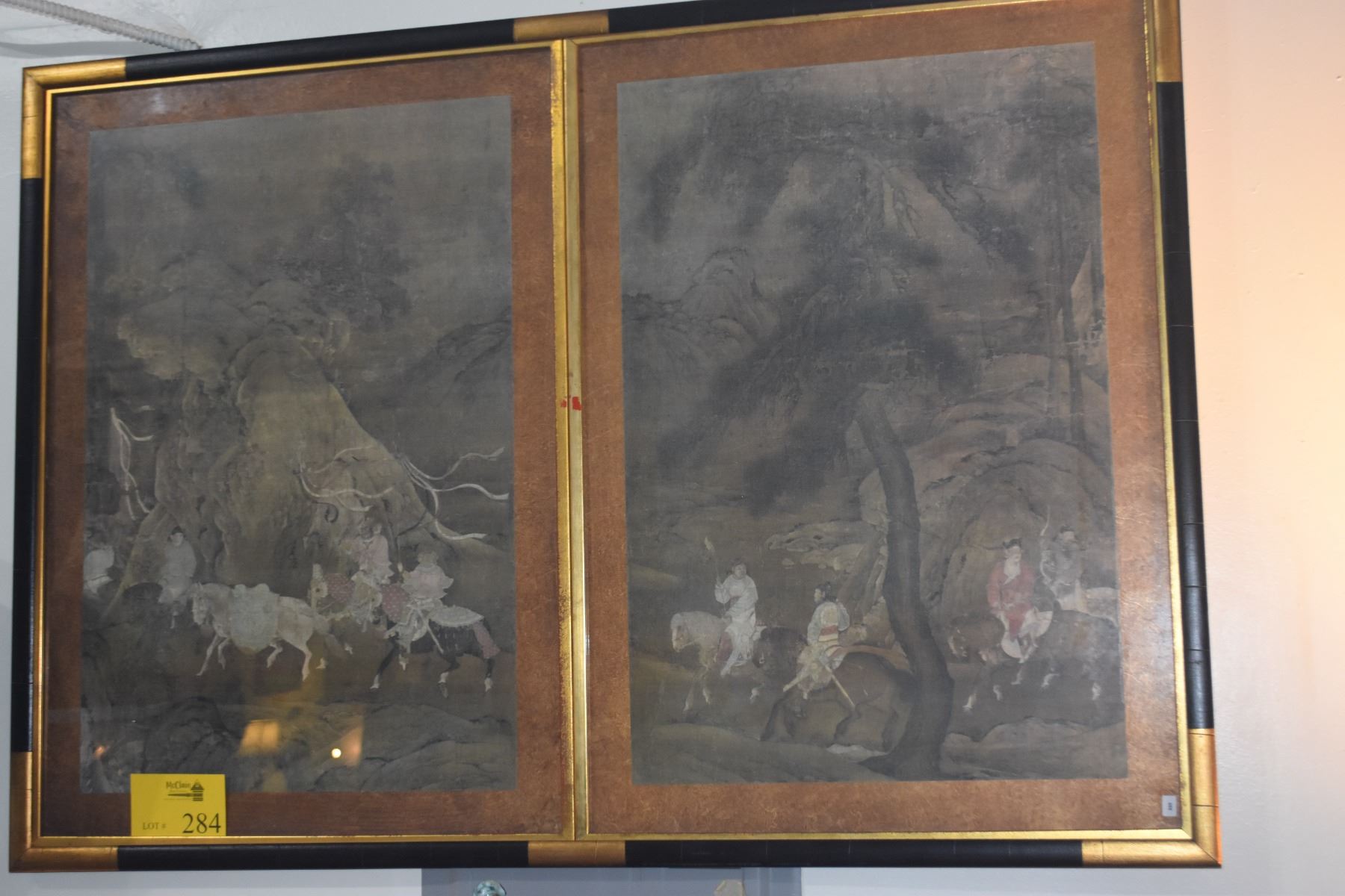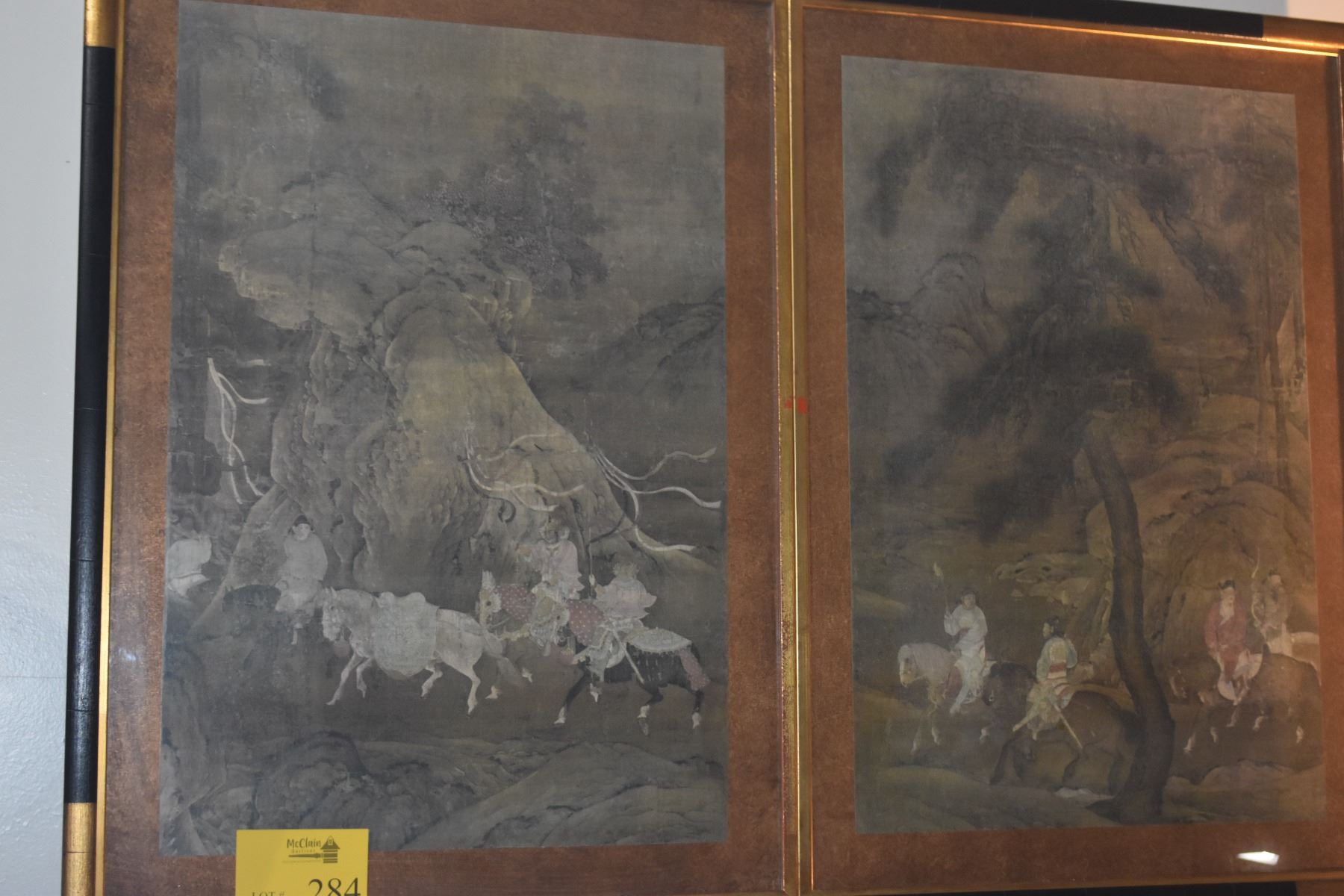 FRAMED CHINESE DIPTYCH PRINT OF SUNG HORSES (49" X 34")