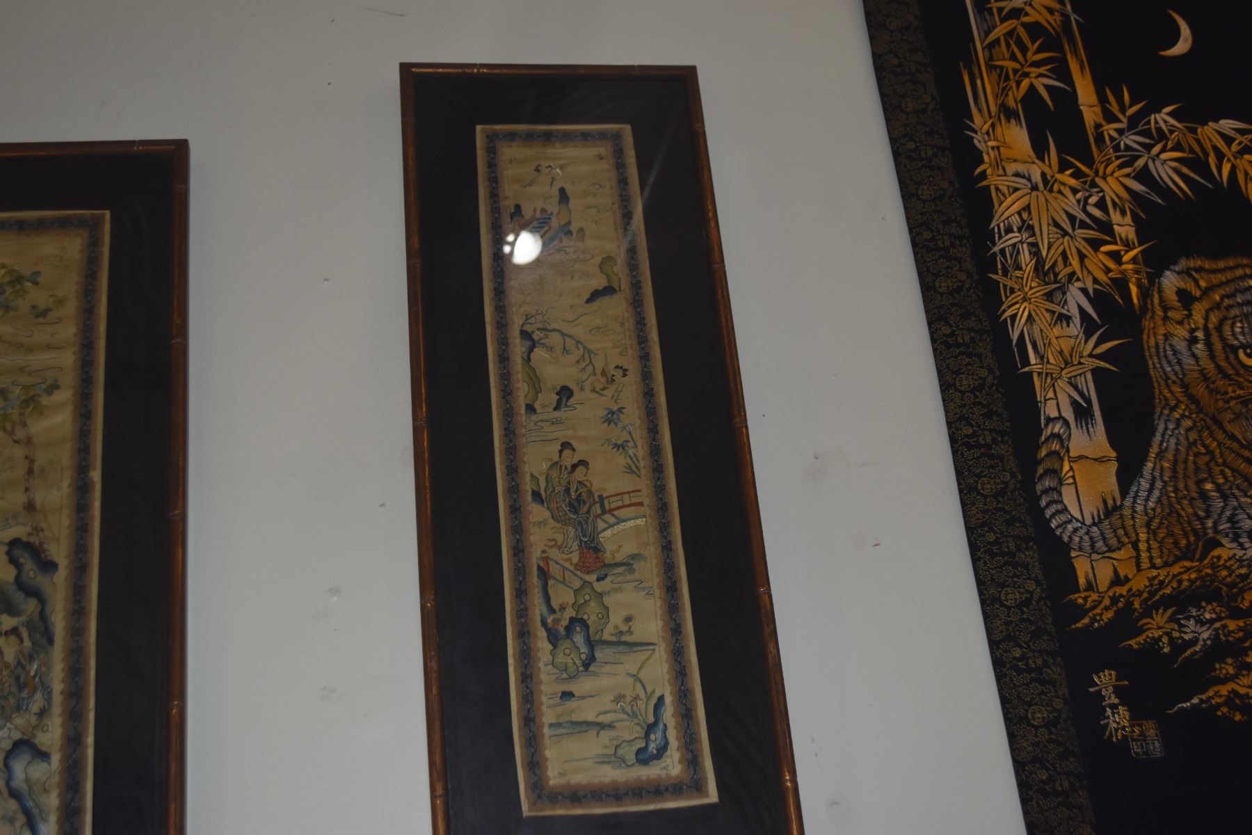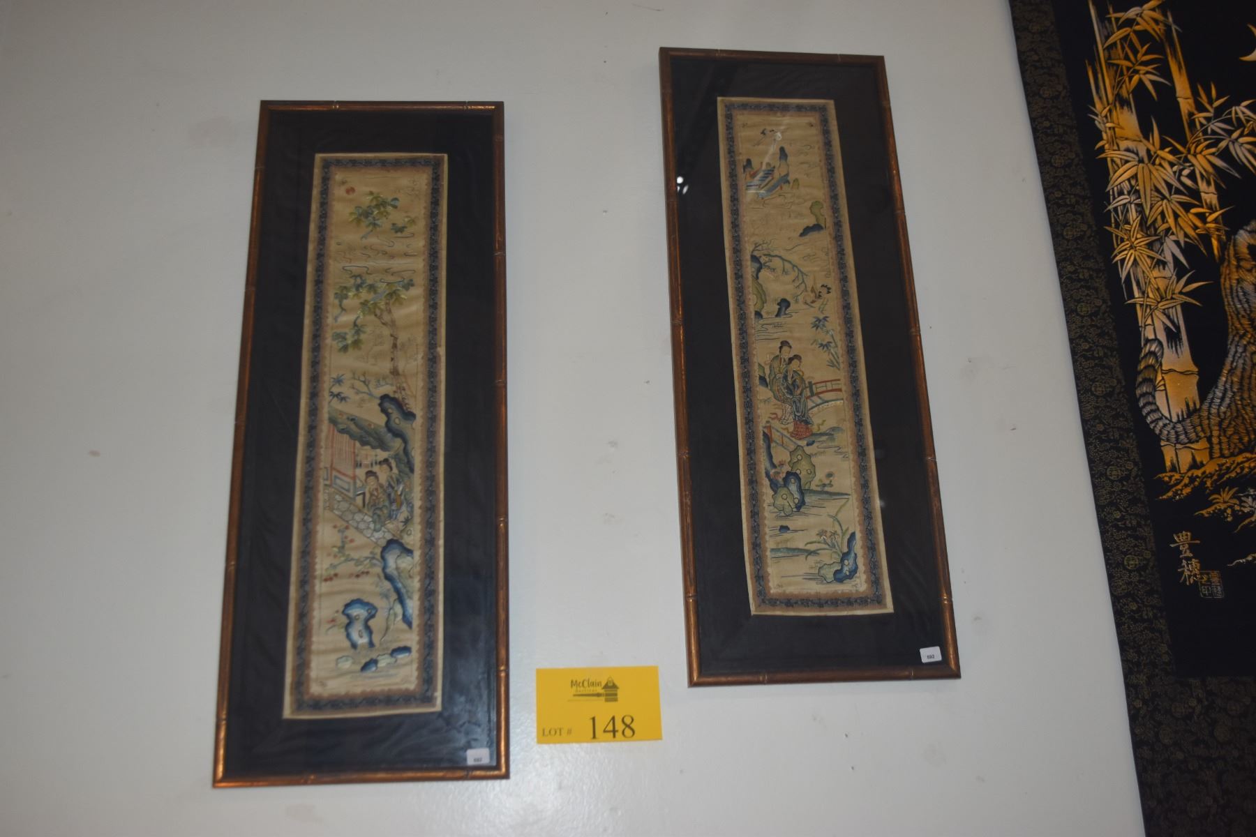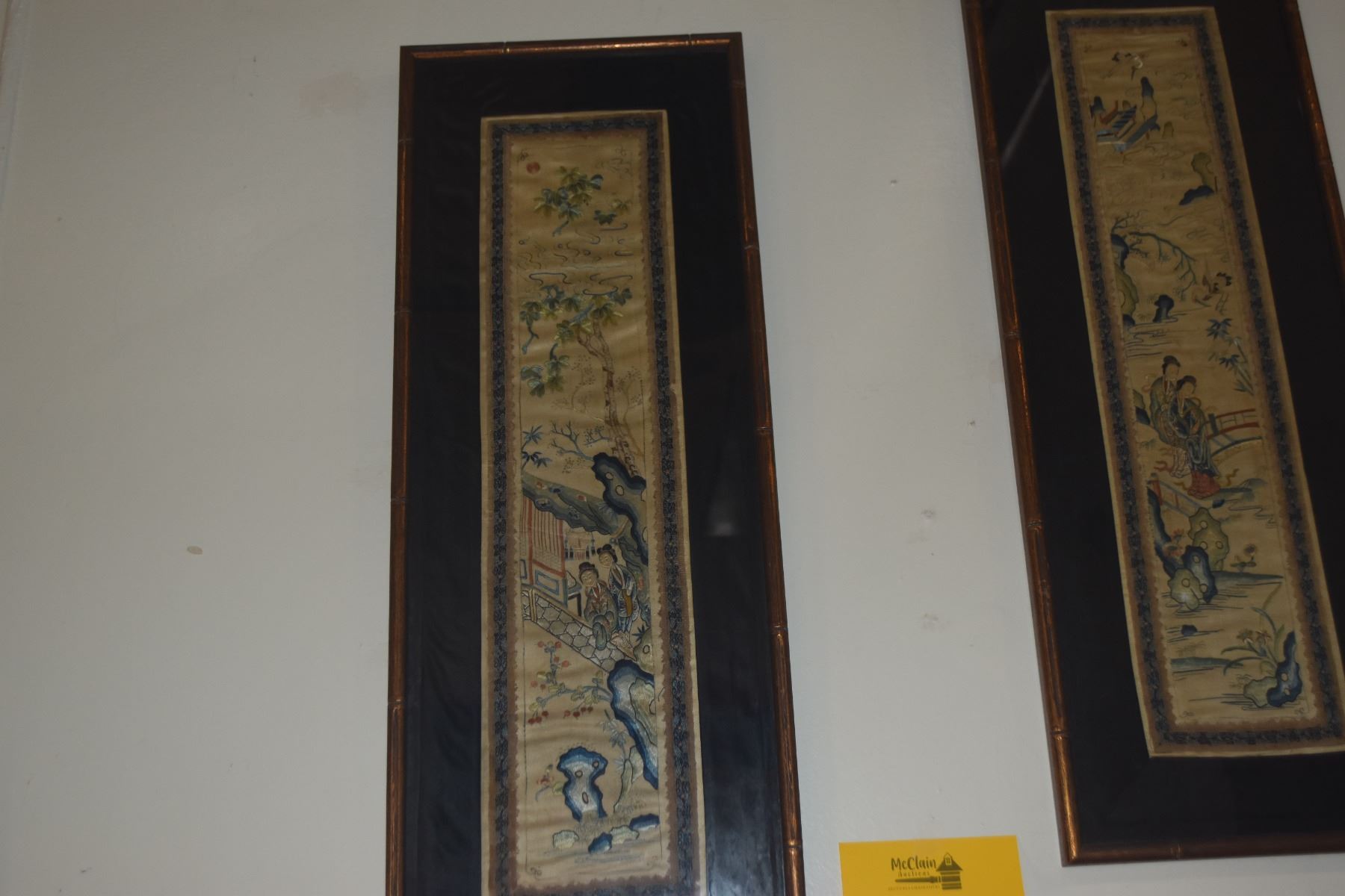 FRAMED CHINESE SILK EMBROIDERIES (10" X 26 3/4") (2 PCS)