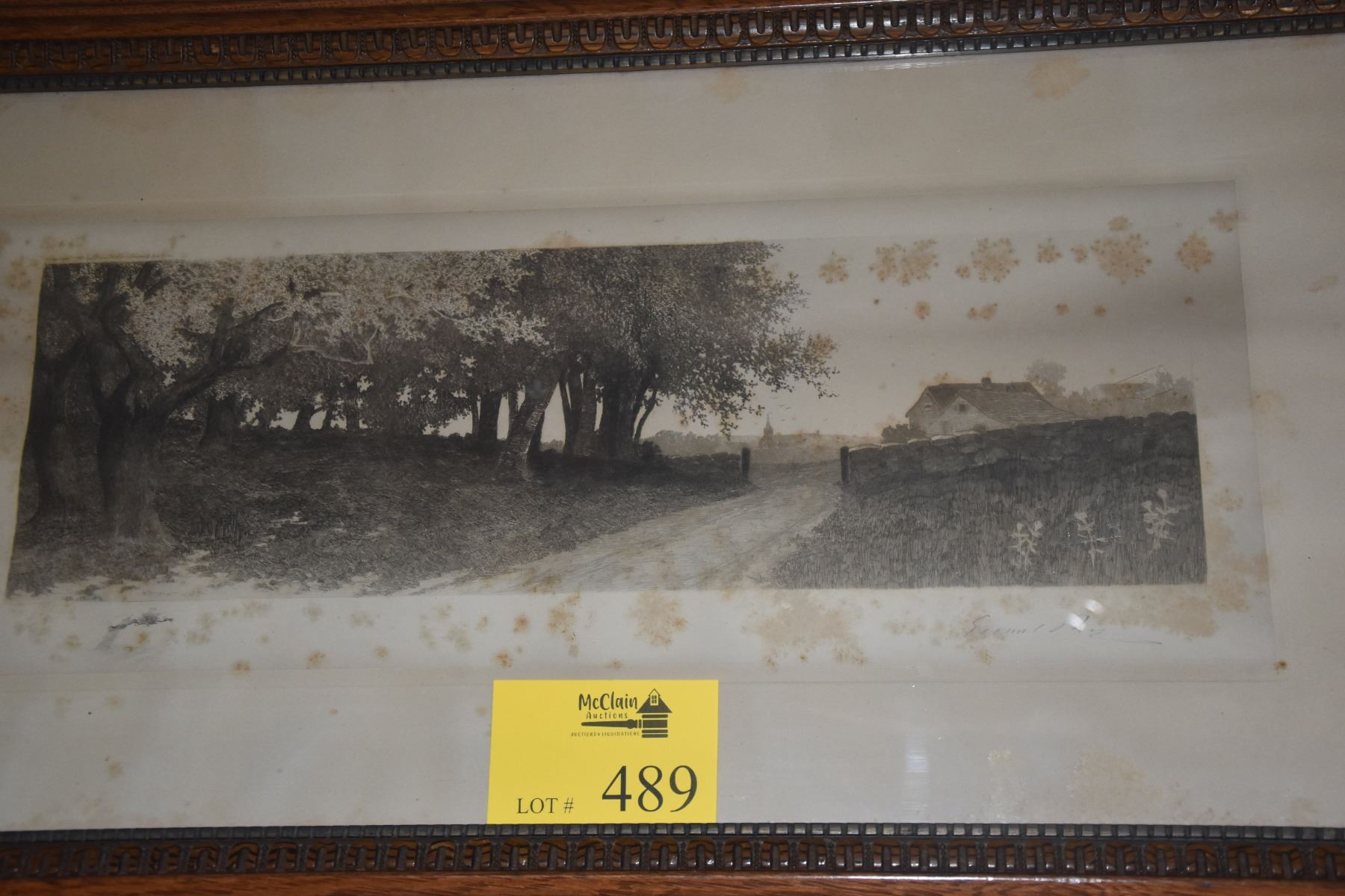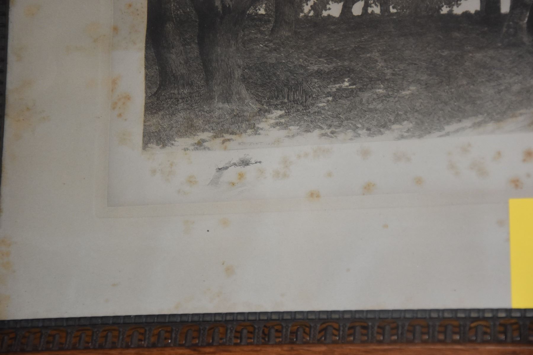 FRAMED ENGRAVING, LANDSCAPE; SIGNED (ERNEST CHRISTIAN ROST 1867-1940) (35 1/2" X 20")