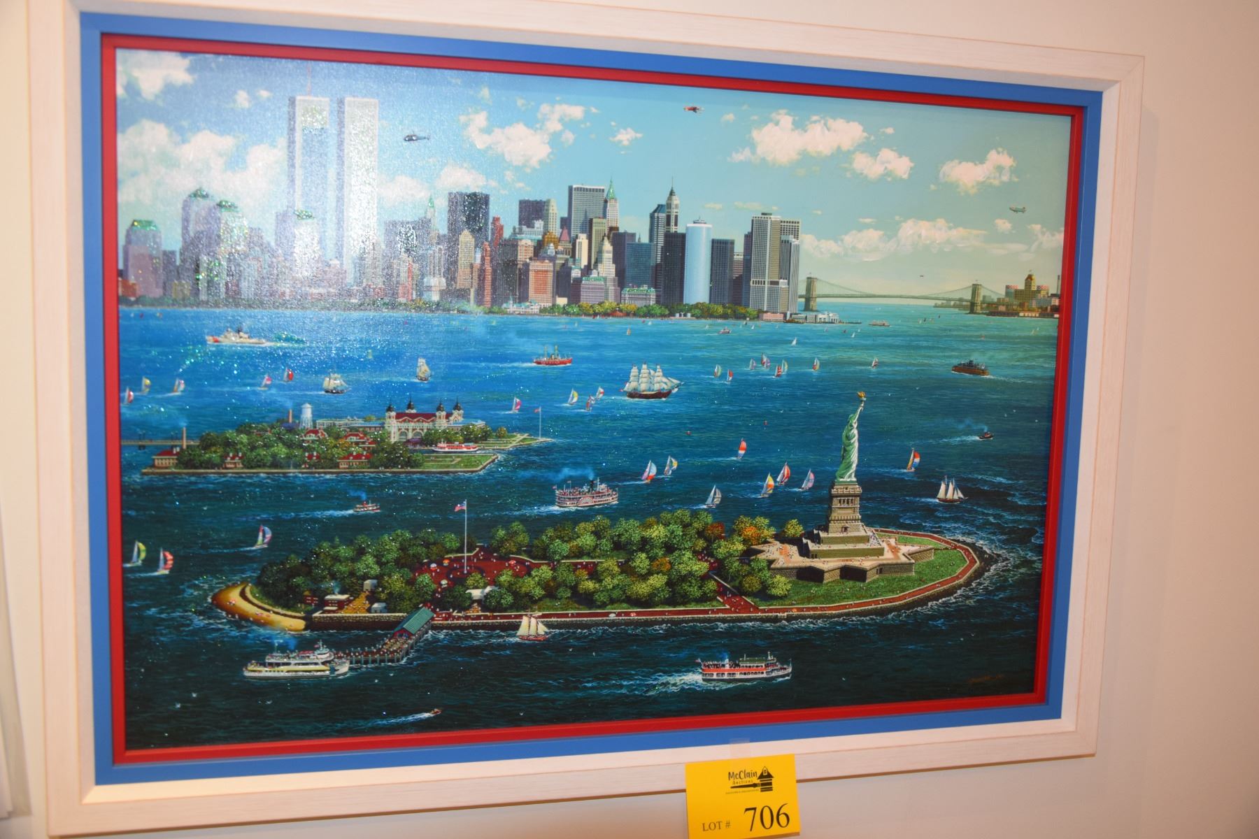 FRAMED GICLEE W/HAND EMBELLISHMENT ON CANVAS; SIGNED (38" X 27")