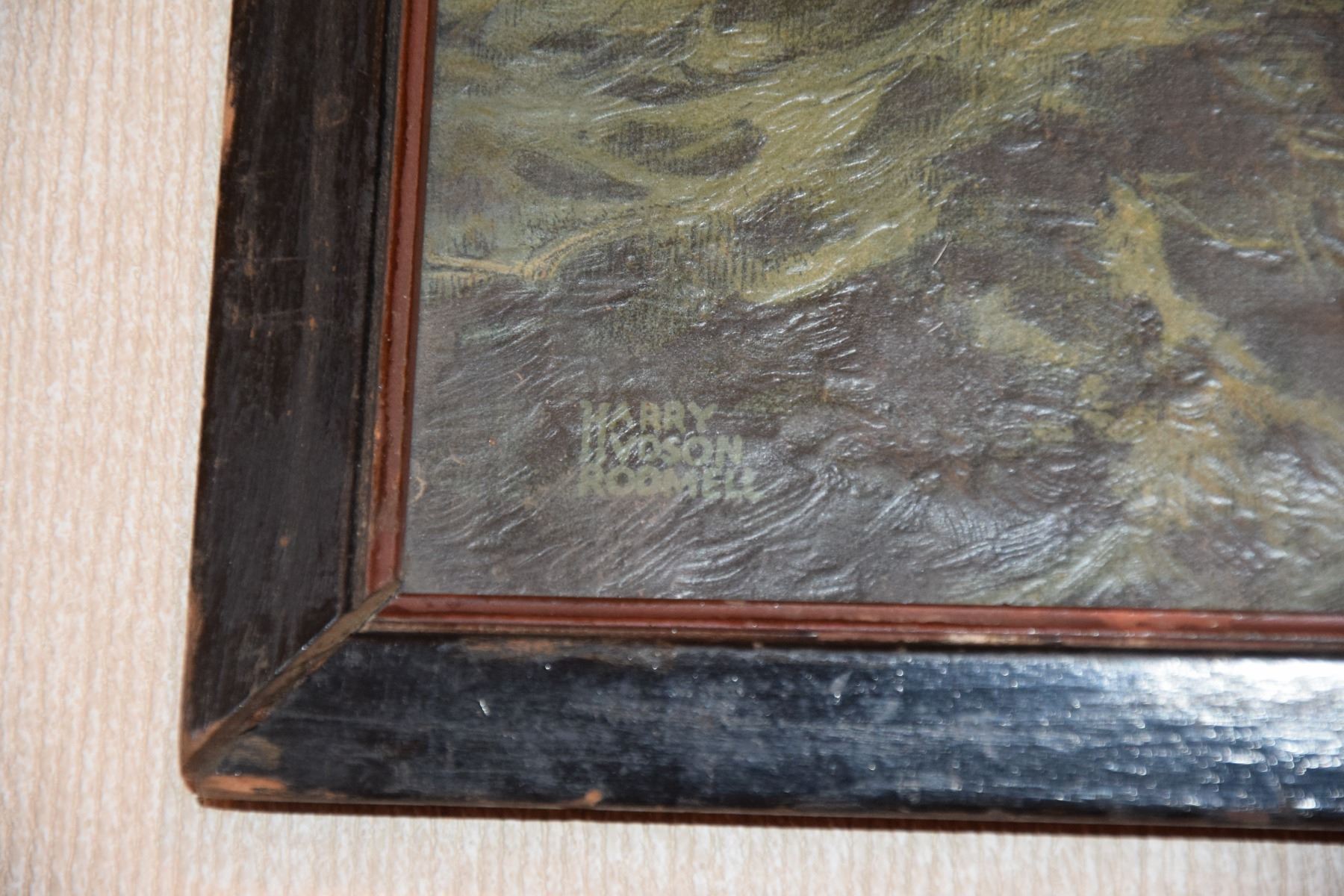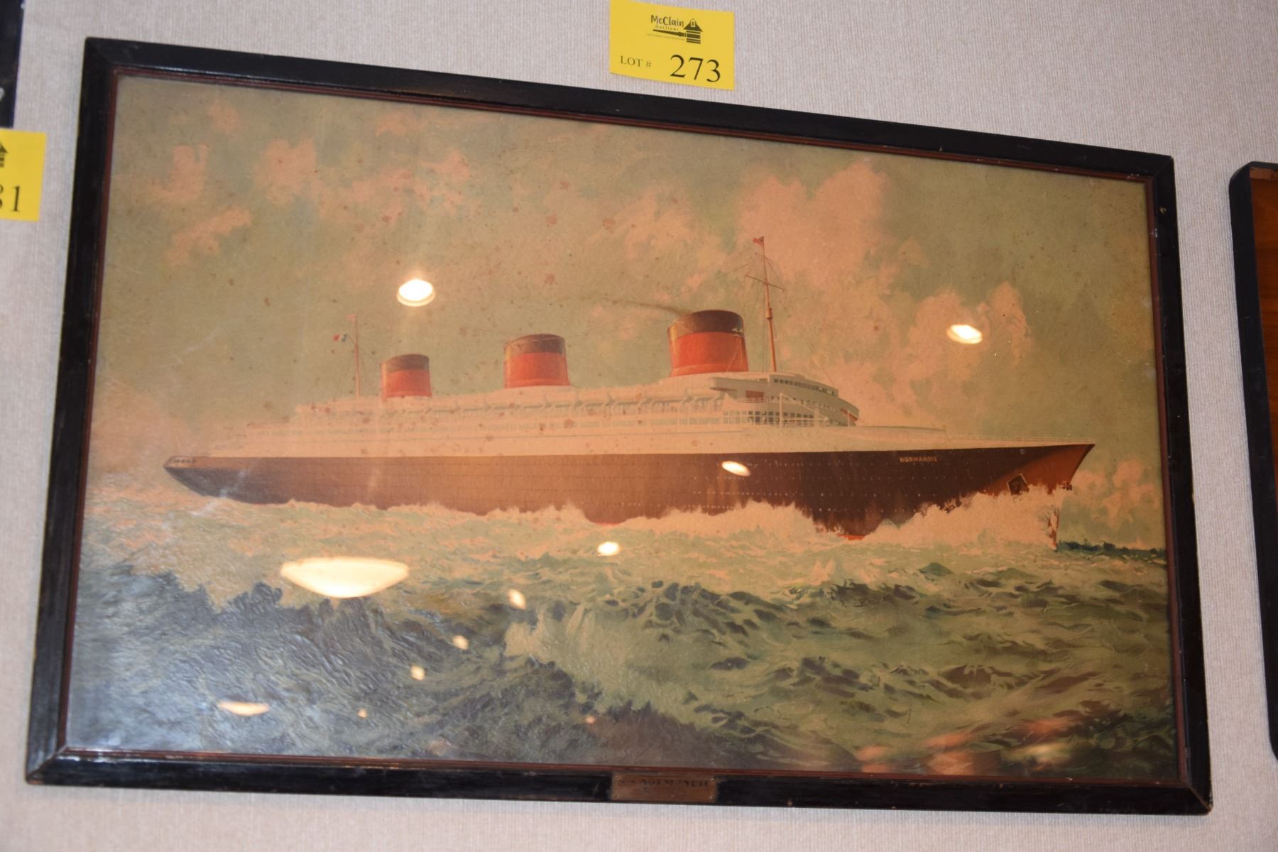 FRAMED GUACHE PAINTING, "SS NORMANDIE-FRENCH LINE"; SIGNED HARRY HUDSON RODNELL (21" X 25")