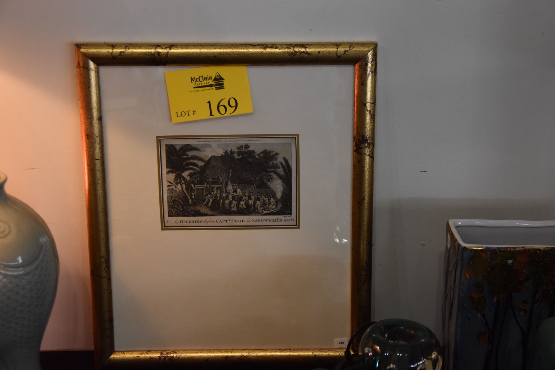 FRAMED HAND COLORED ENGRAVING, "AN OFFERING BEFORE CAPT. COOK IN THE SANDWICH ISLANDS"
