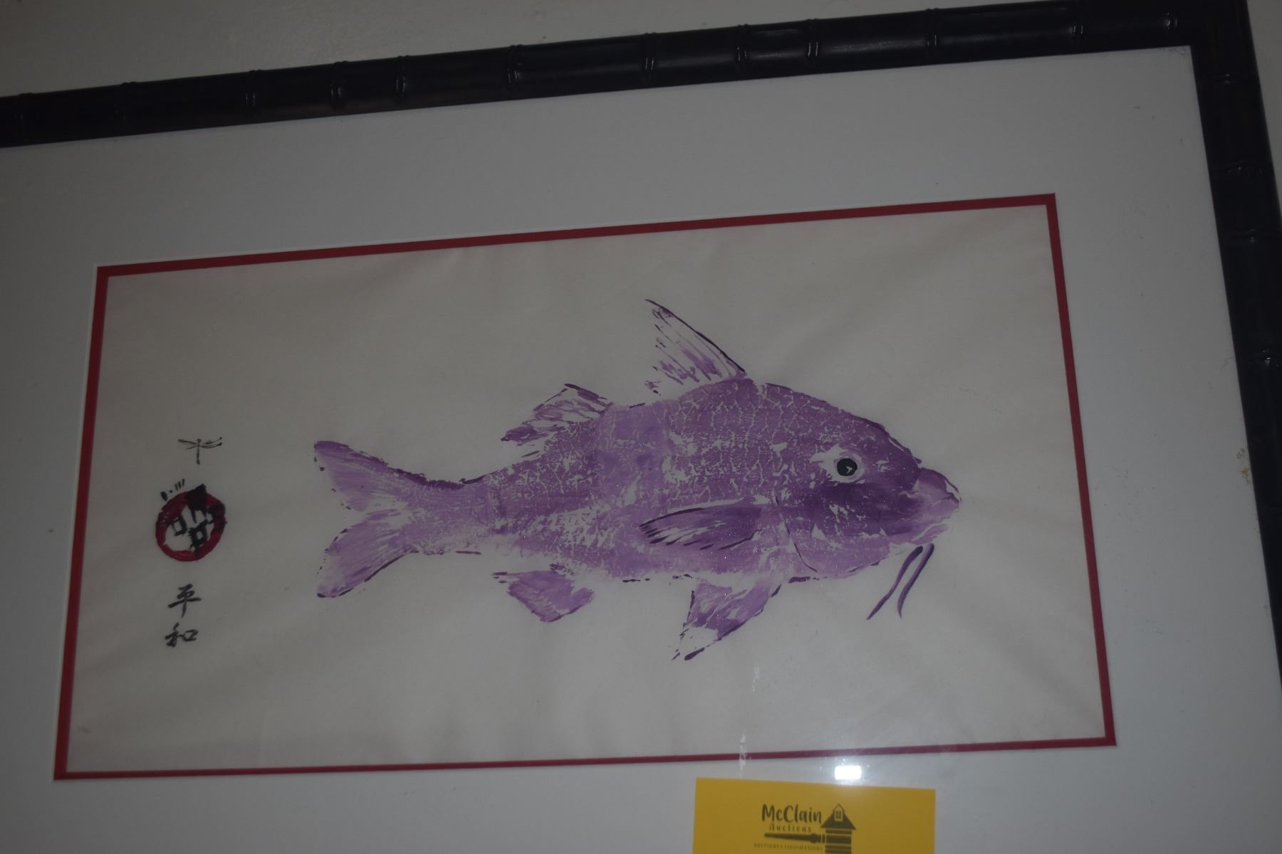 FRAMED JAPANESE GYOTAKU PRINT, FISH; SIGNED (29" X 19 1/2")