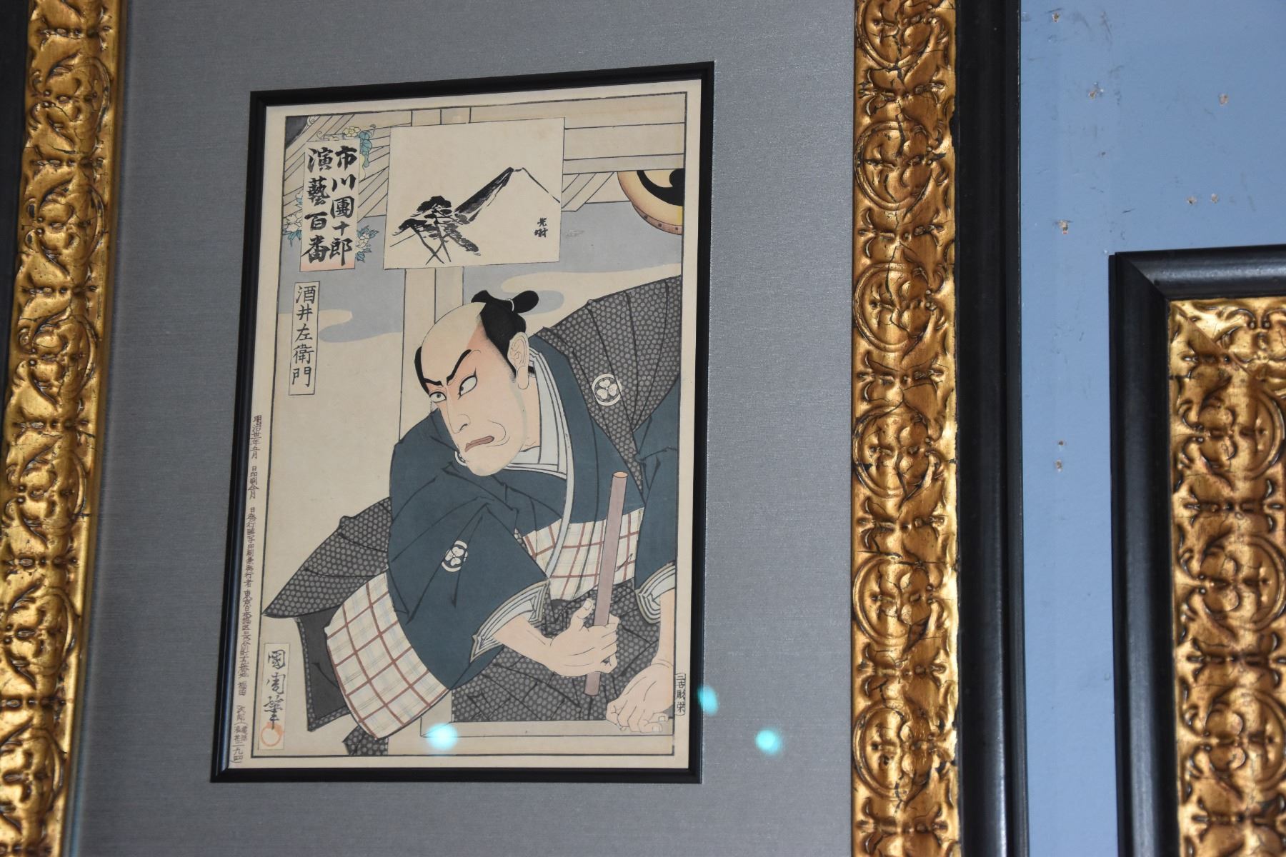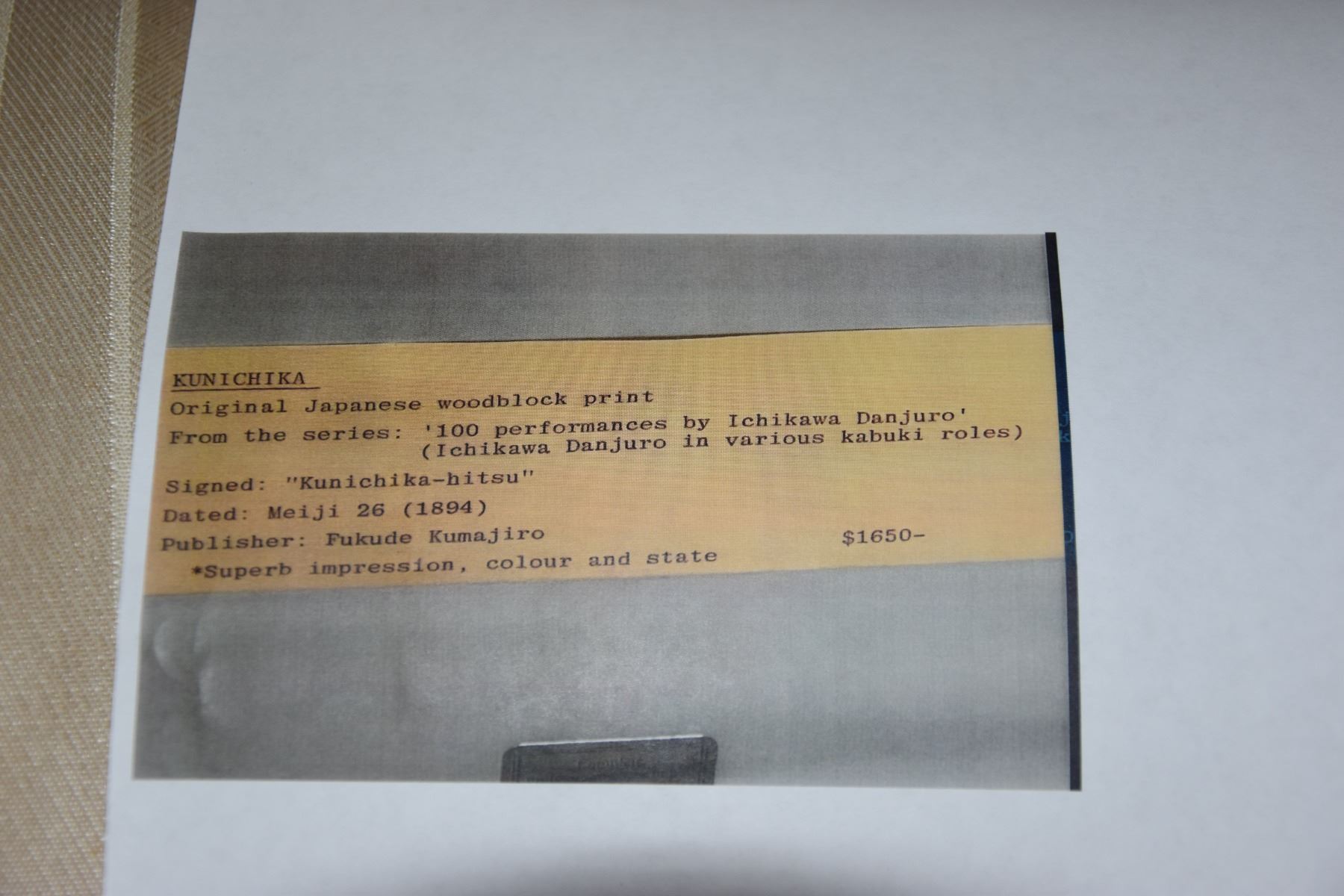 FRAMED KUNICHIKA ORIGINAL JAPANESE WOODBLOCK PRINT; SIGNED "KUNICHIKO-HITSU", DATED: MEIJI 26 (1894) (31 1/4" X 25 1/2")