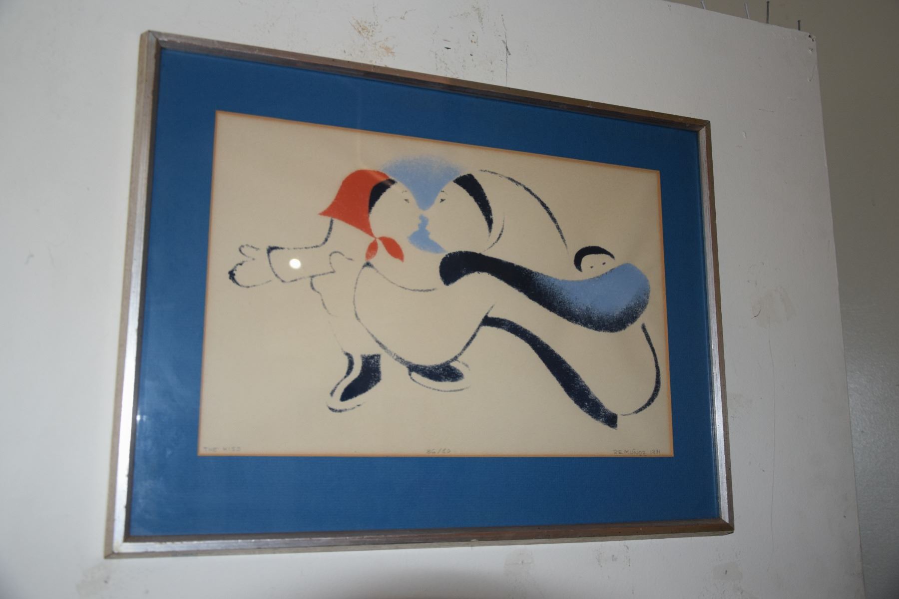 FRAMED LITHOGRAPH, "THE KISS, ESKIMO BABY & MOTHER"; SIGNED RIE MUNOZ, 1971, 36/80