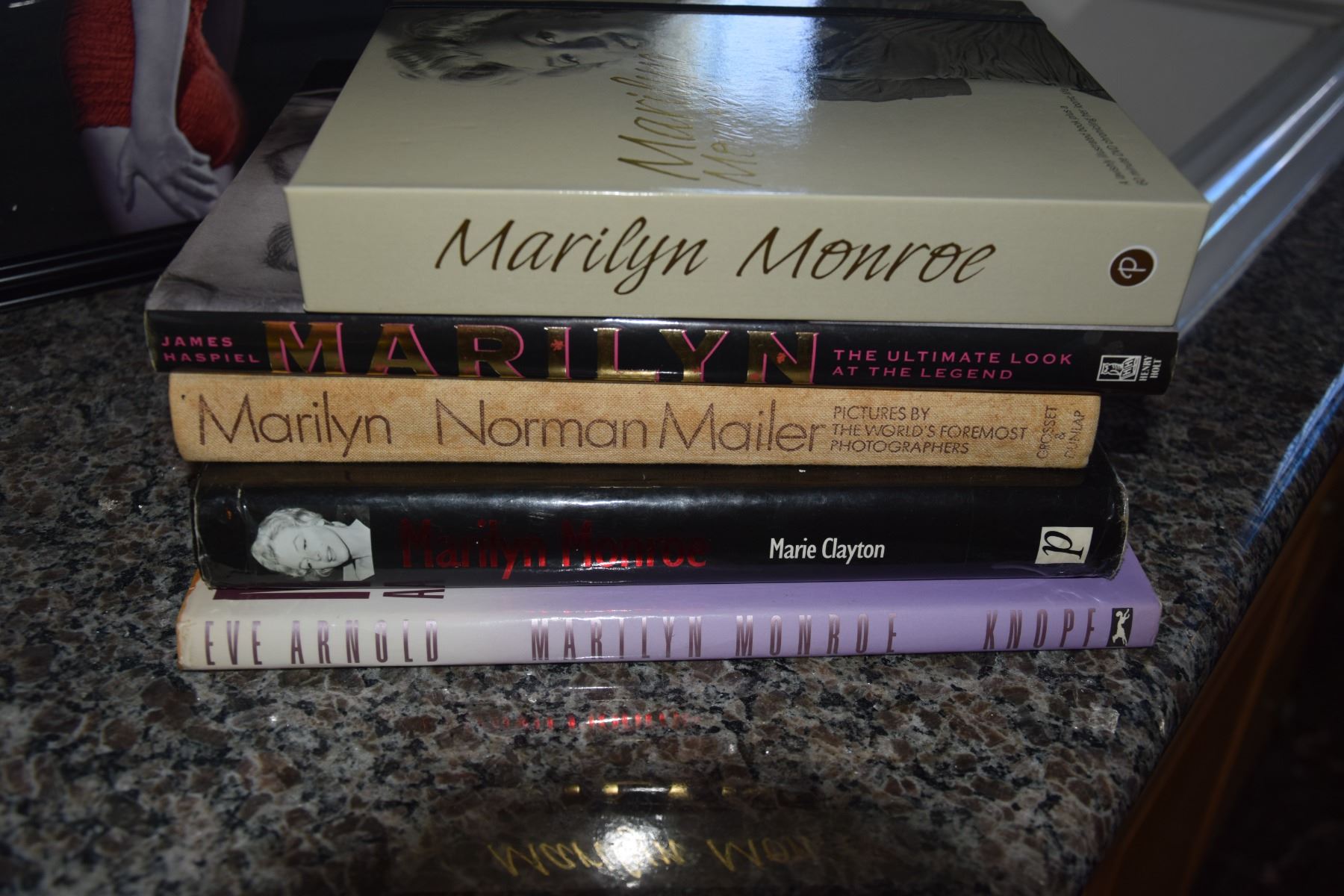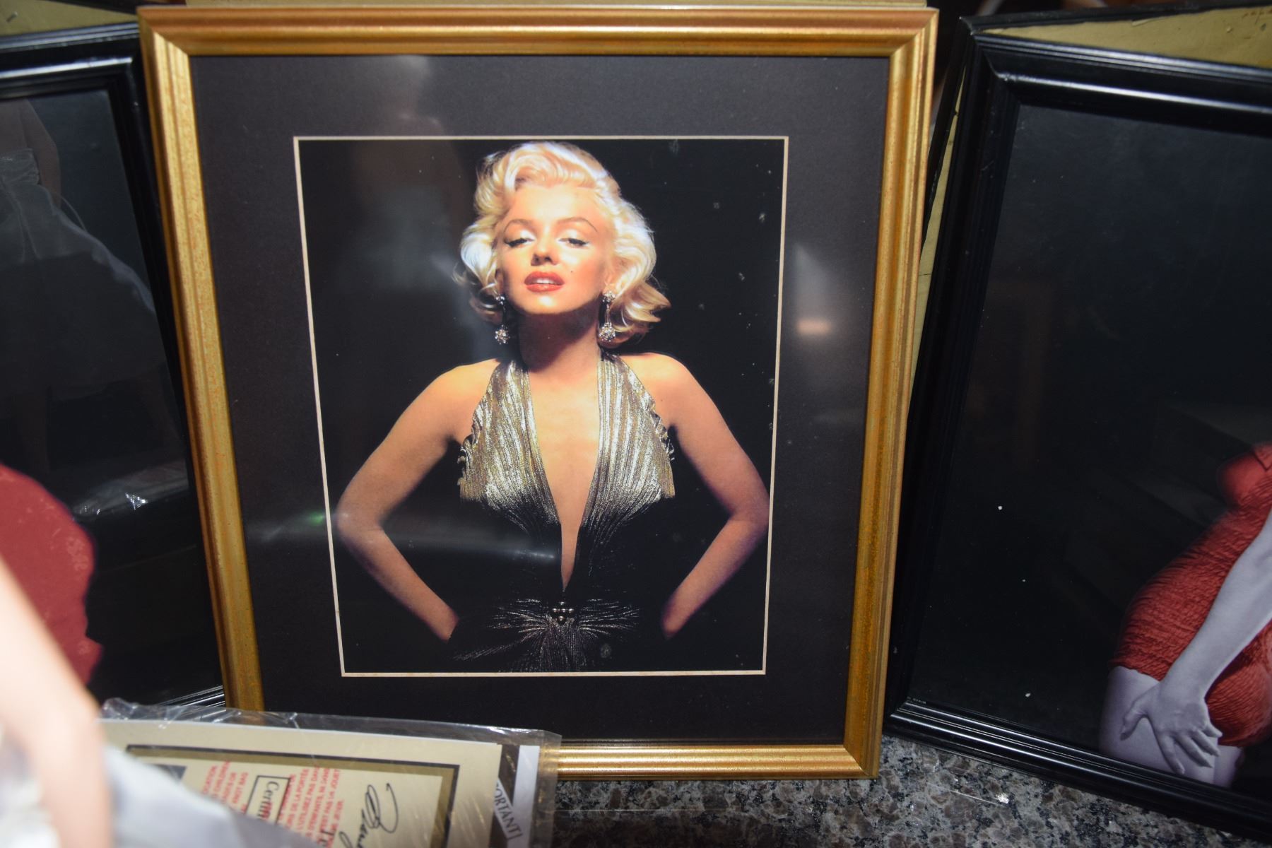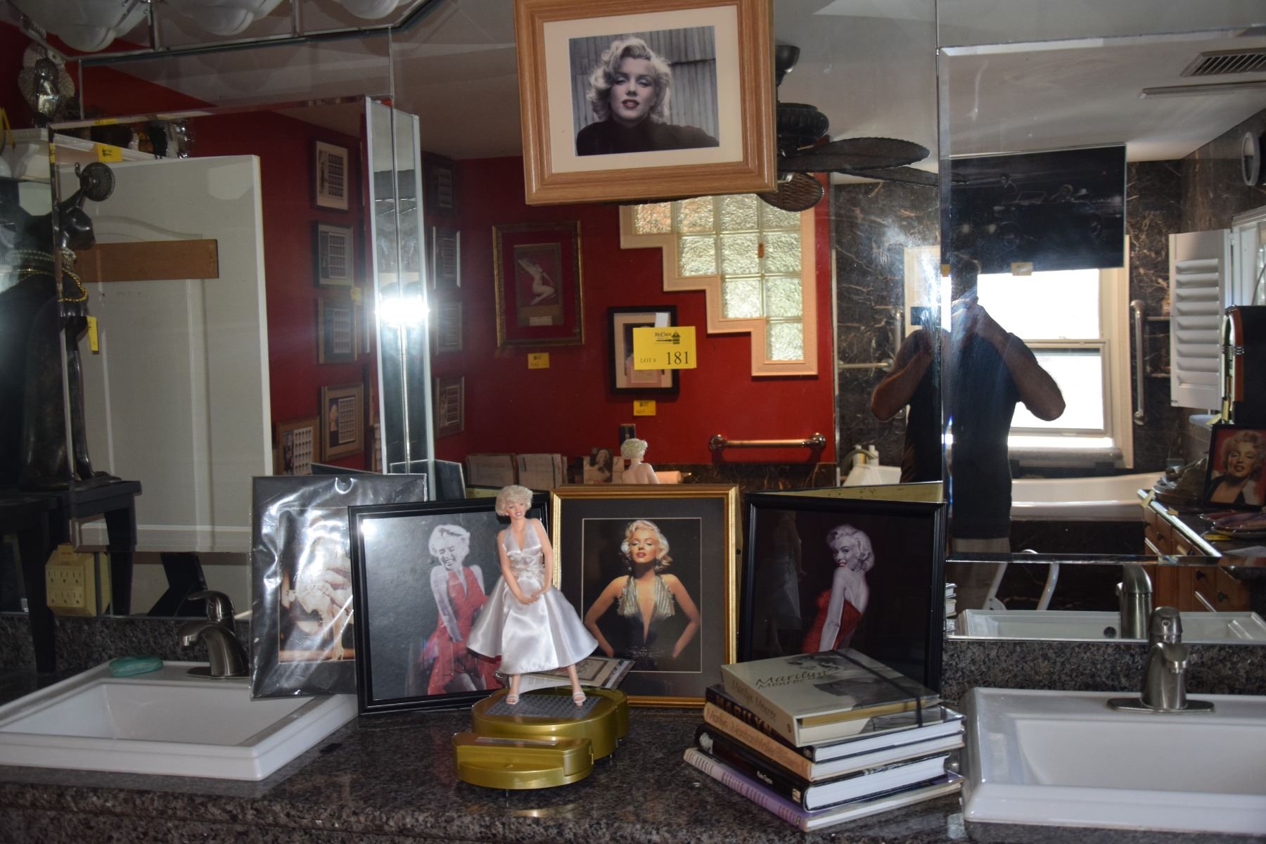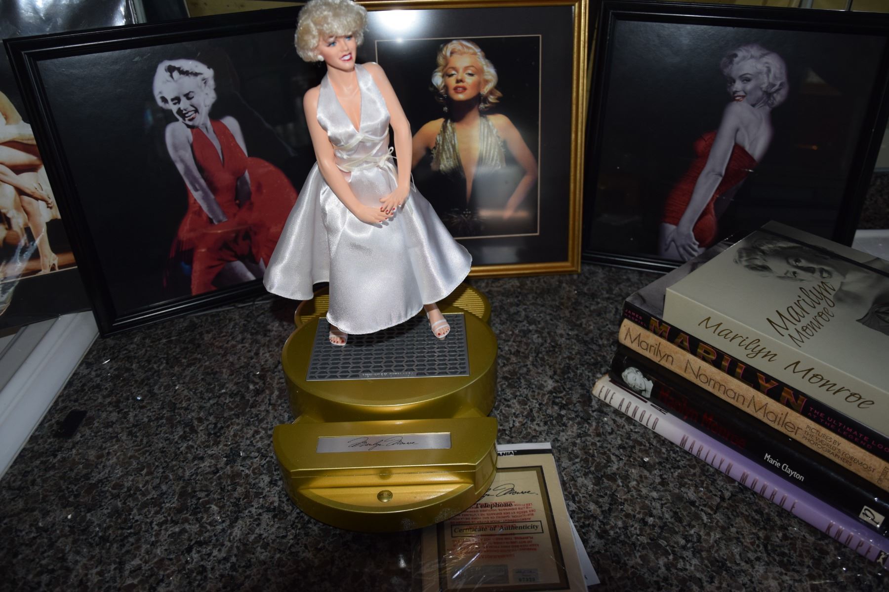 FRAMED MARILYN MONROE PHOTOGRAPHS (13 1/2" X 13 1/2", 12 1/4" X 14", 16 1/2" X 13 1/2", MATTED PHOTOGRAPH (11" X 14"), BOOKS, TELEPHONE (8 1/2" X 17" H) (11 PCS)