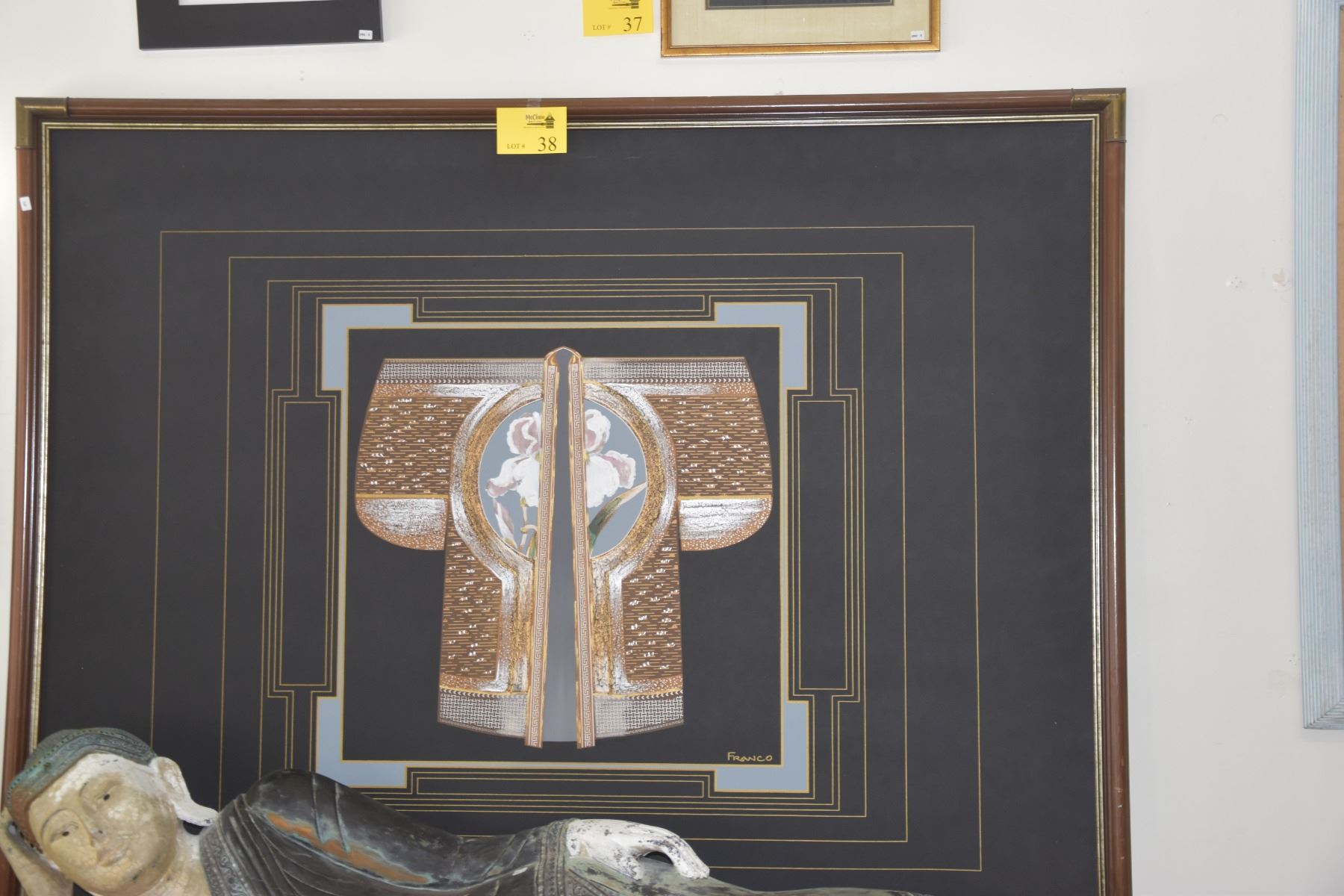 FRAMED MIXED MEDIA, KIMONO; SIGNED FRANCO (63" X 50")