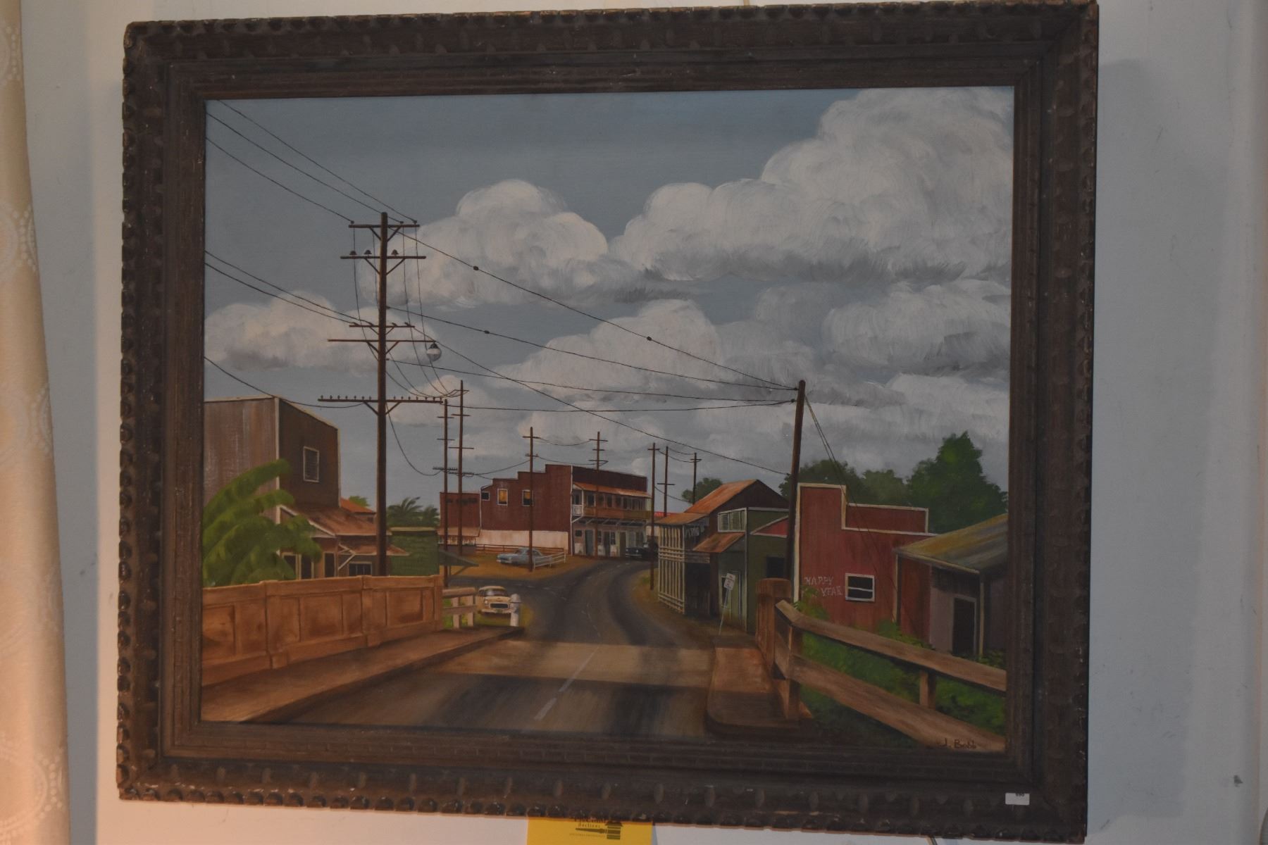 FRAMED OIL ON ART BOARD, HALEIWA; SIGNED J. BEBB (32 1/2" X 26 1/2")