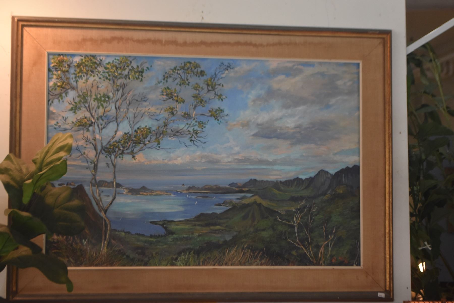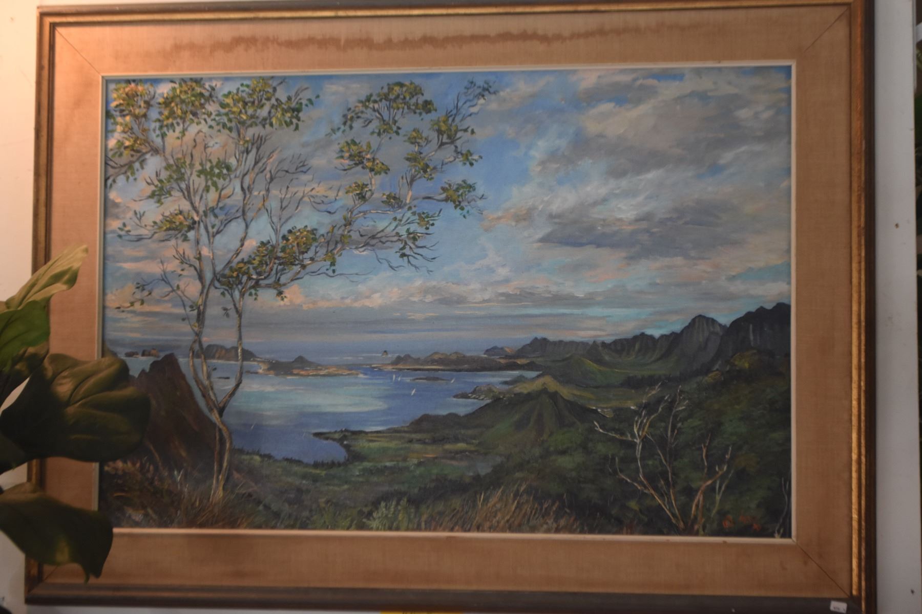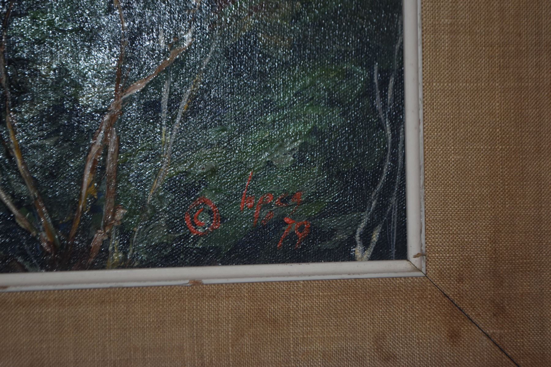 FRAMED OIL ON CANVAS, COSTAL LANDSCAPE; SIGNED LOPES (JEANNE) (43" X 31 1/2")